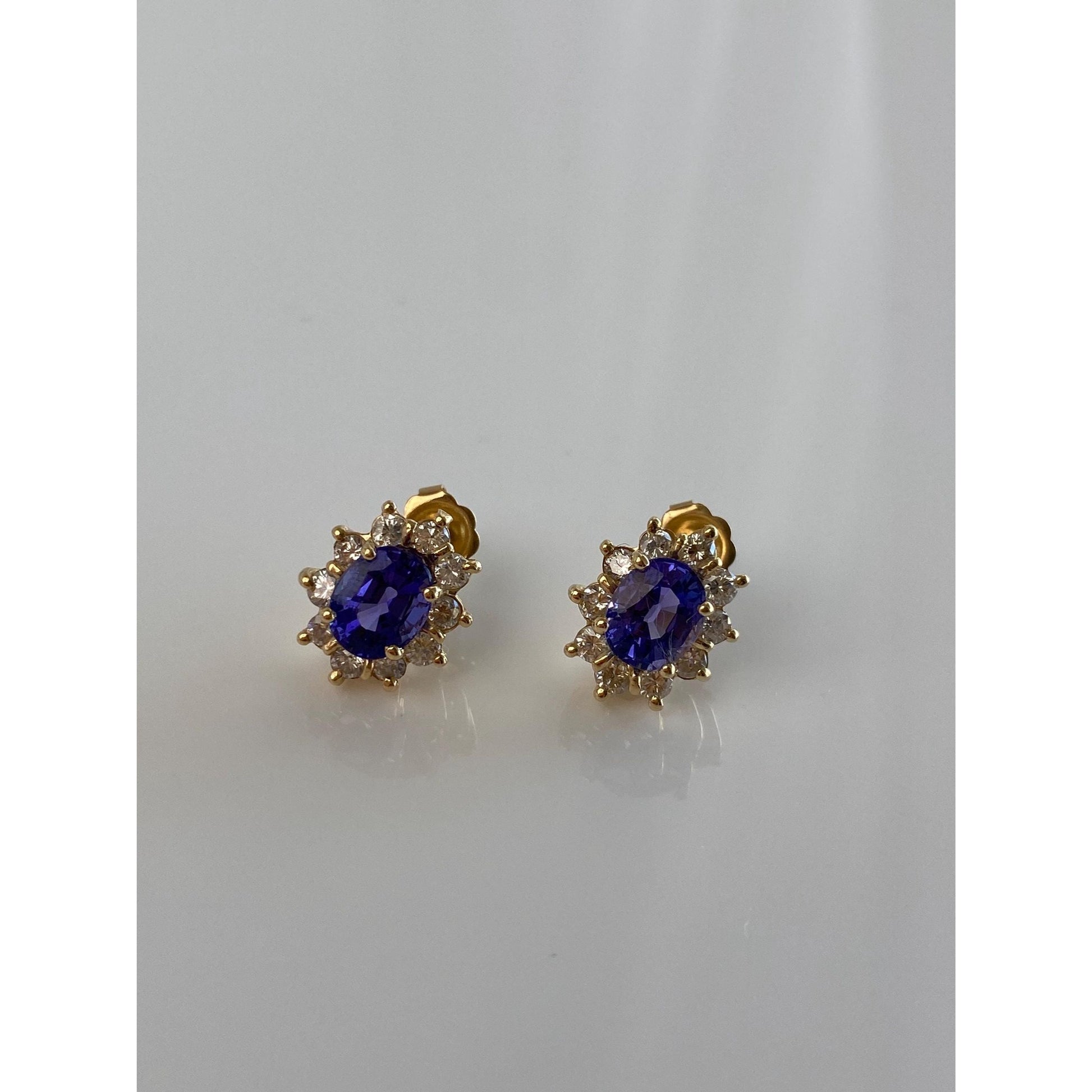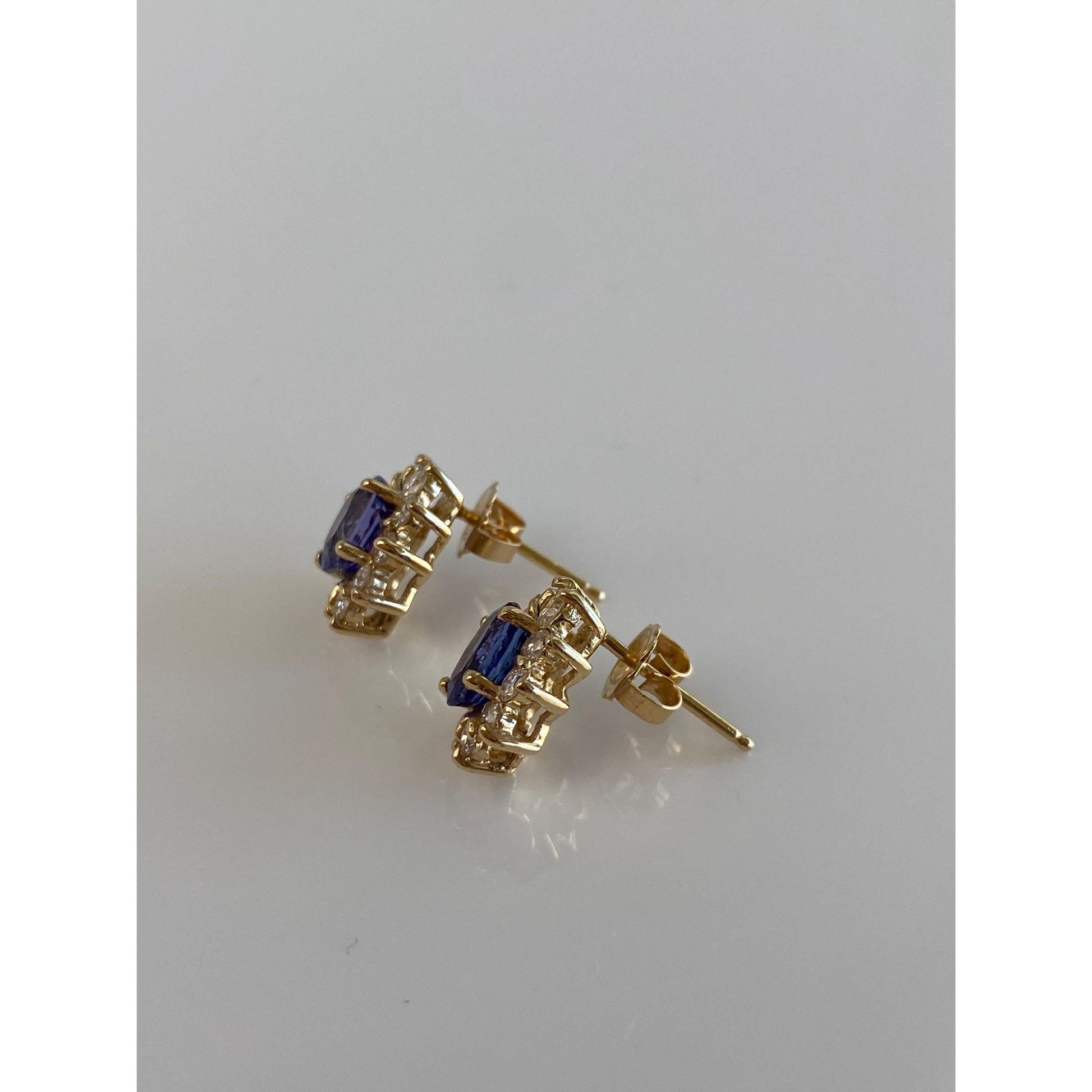 Vintage Solid 14k Yellow Gold Diamond Halo Tanzanite Stud Earrings
