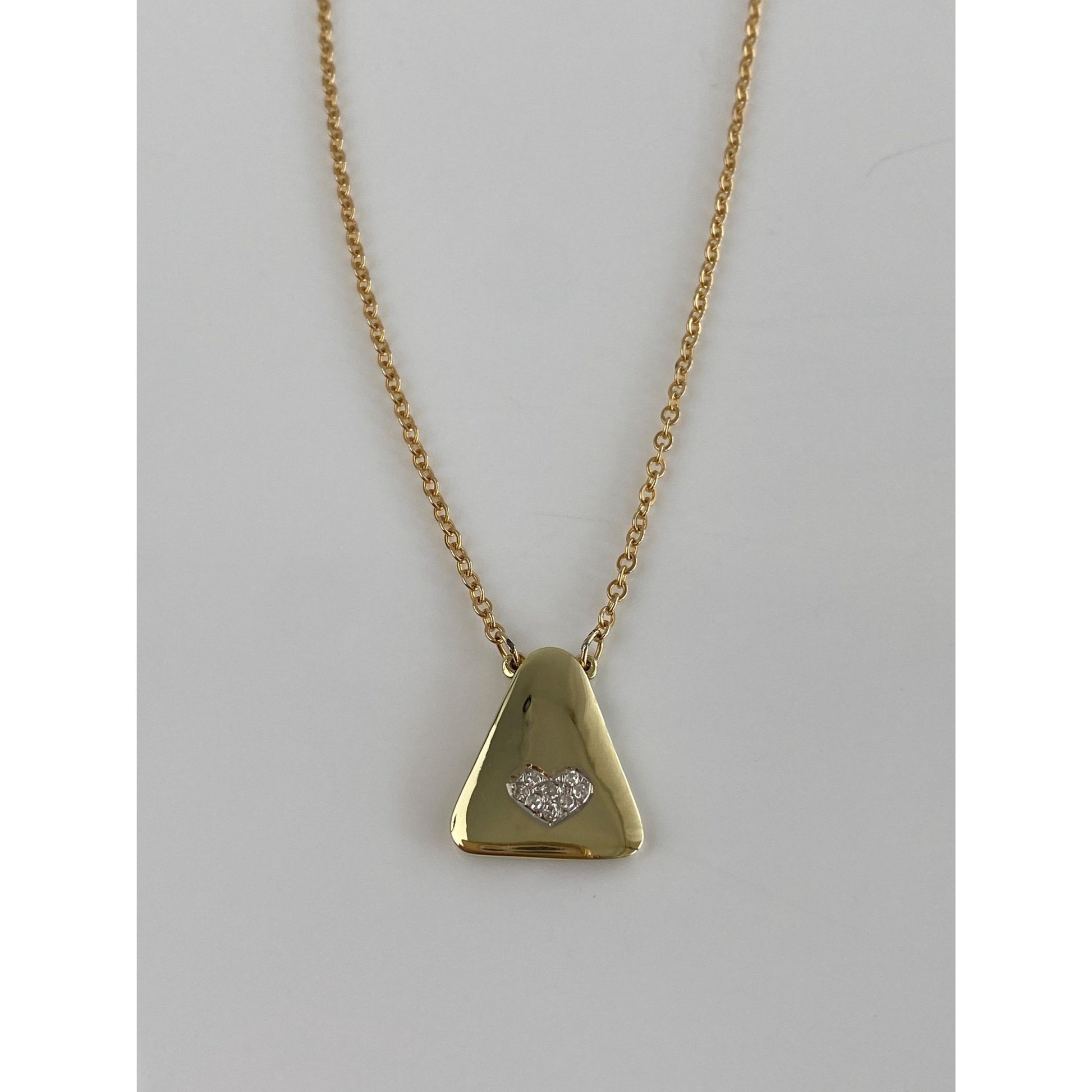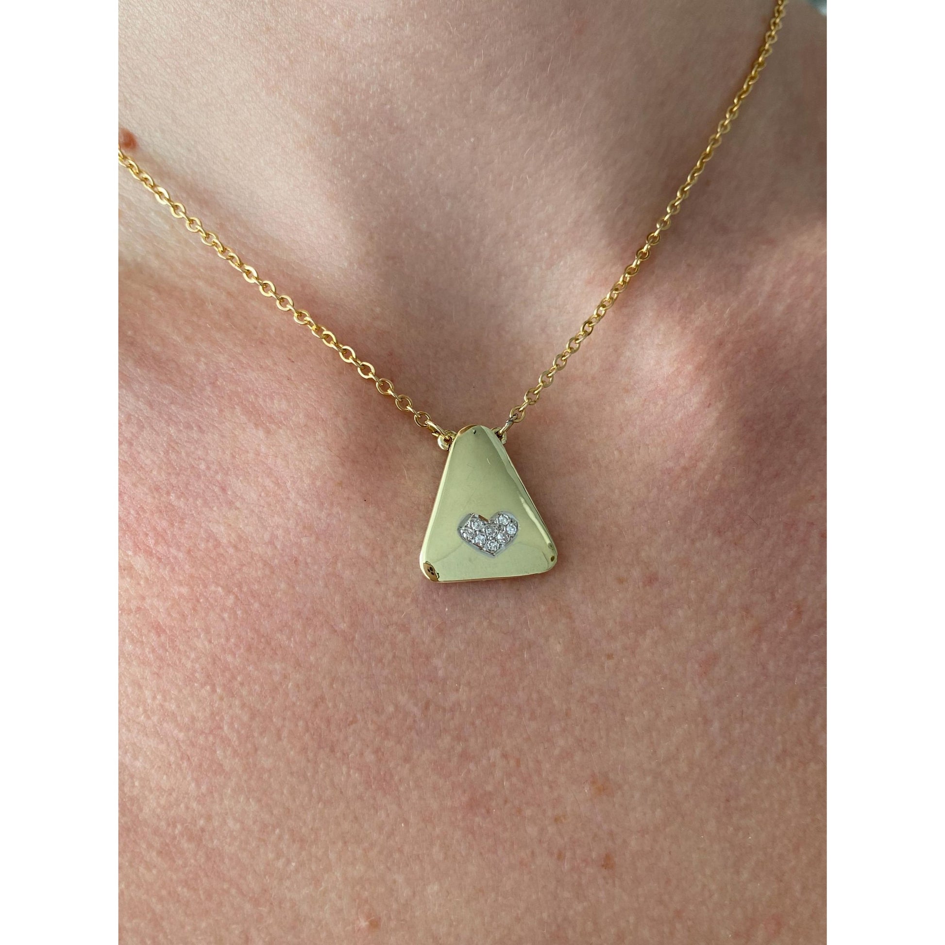 Vintage Solid 14k Yellow Gold Diamond Heart Cable Chain Necklace - 15.25 inches