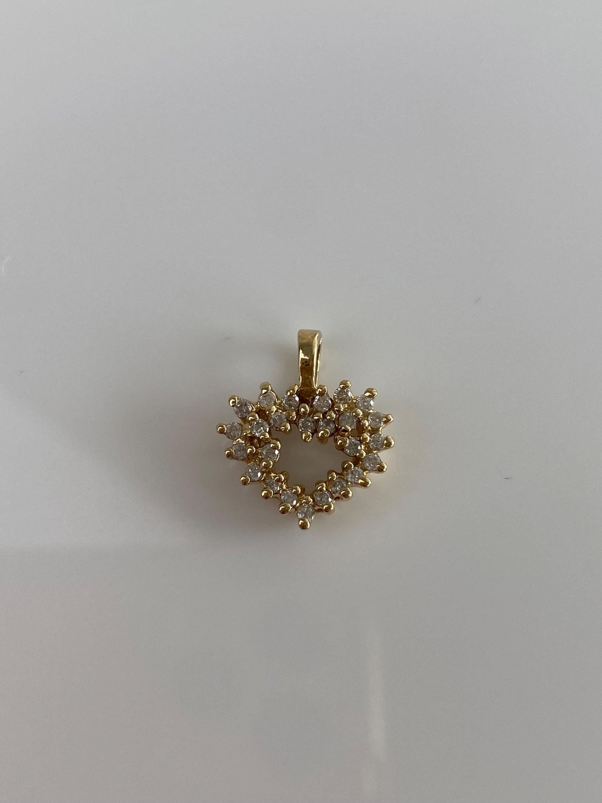 Vintage Solid 14k Yellow Gold Diamond Heart Charm