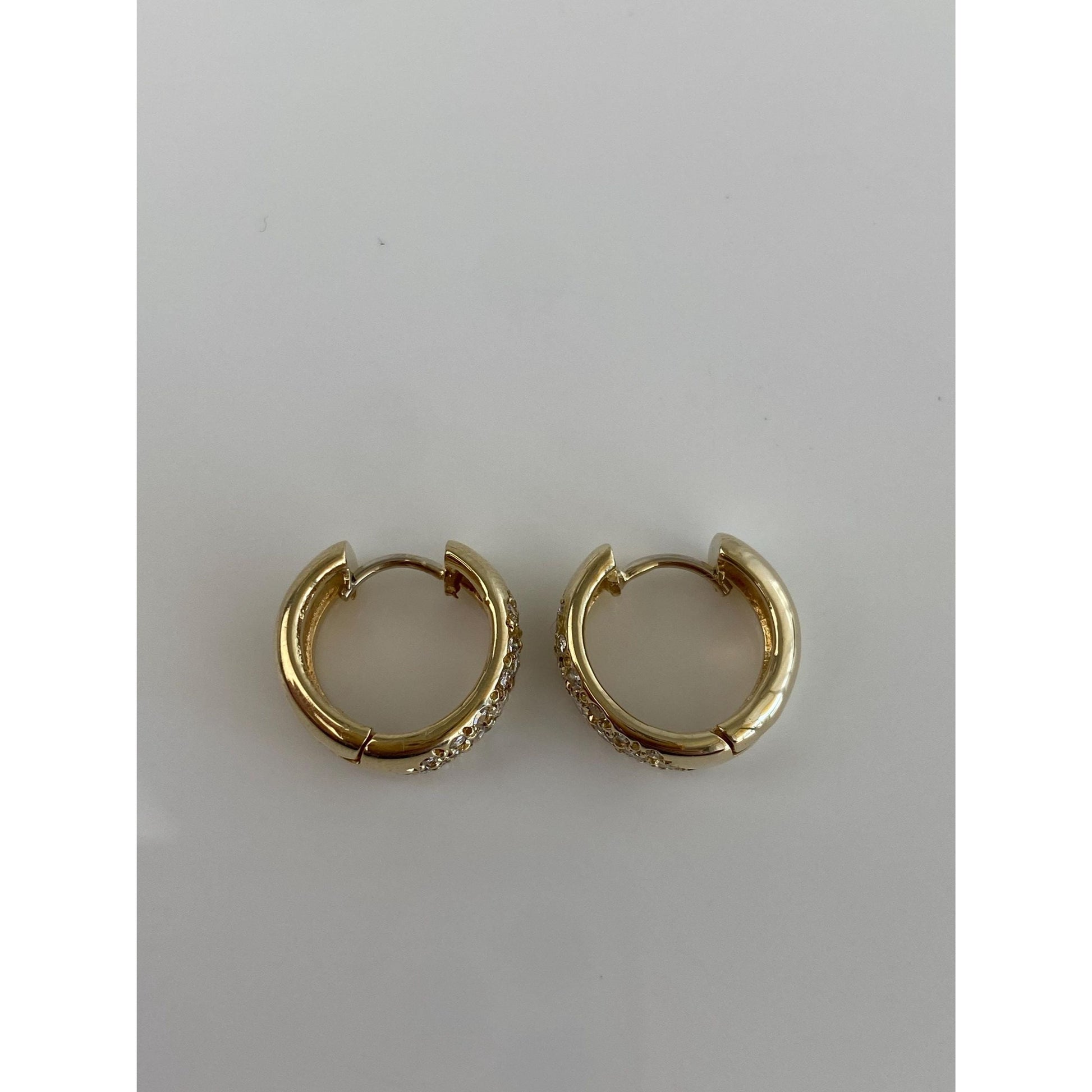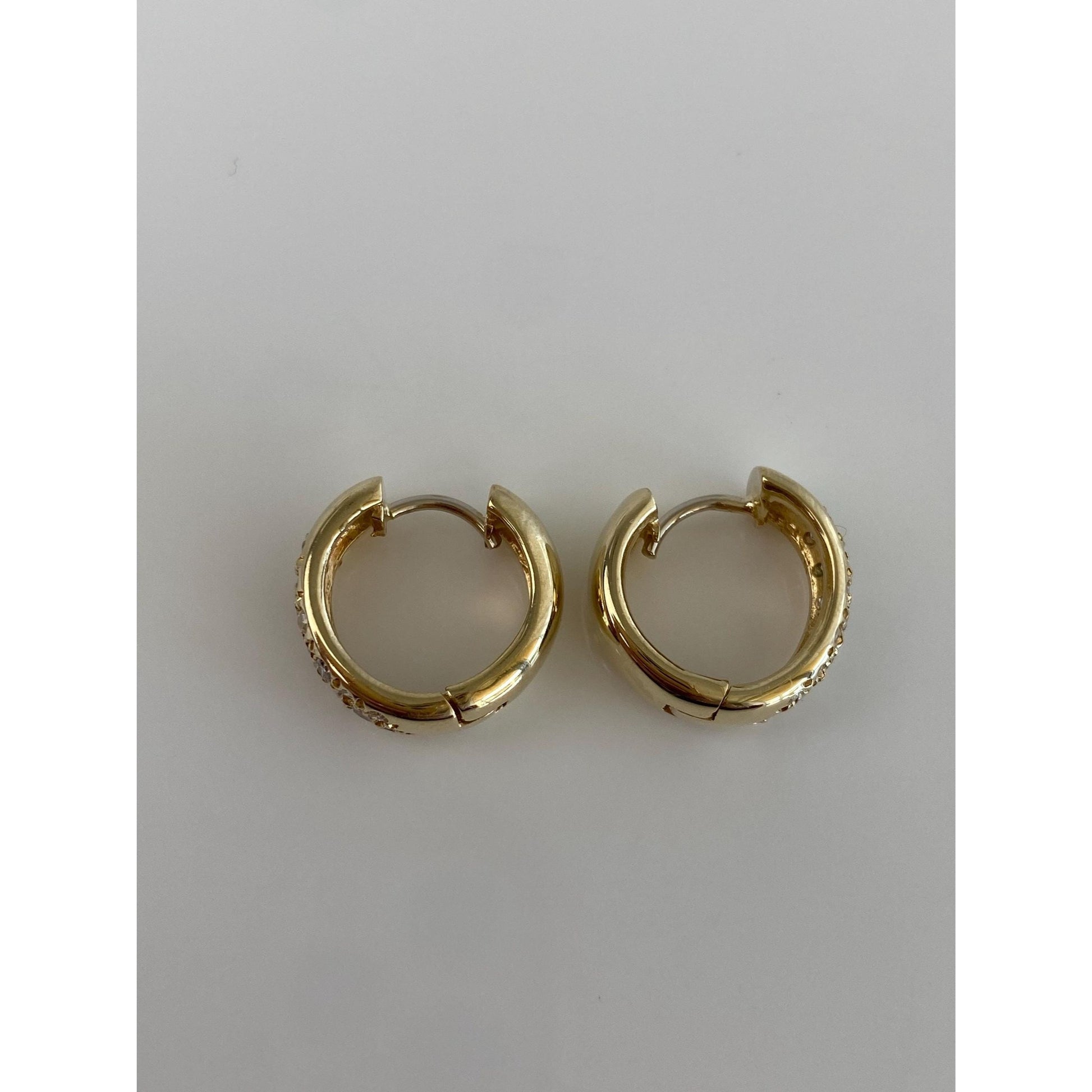 Vintage Solid 14k Yellow Gold Diamond Huggie Hoop Earrings