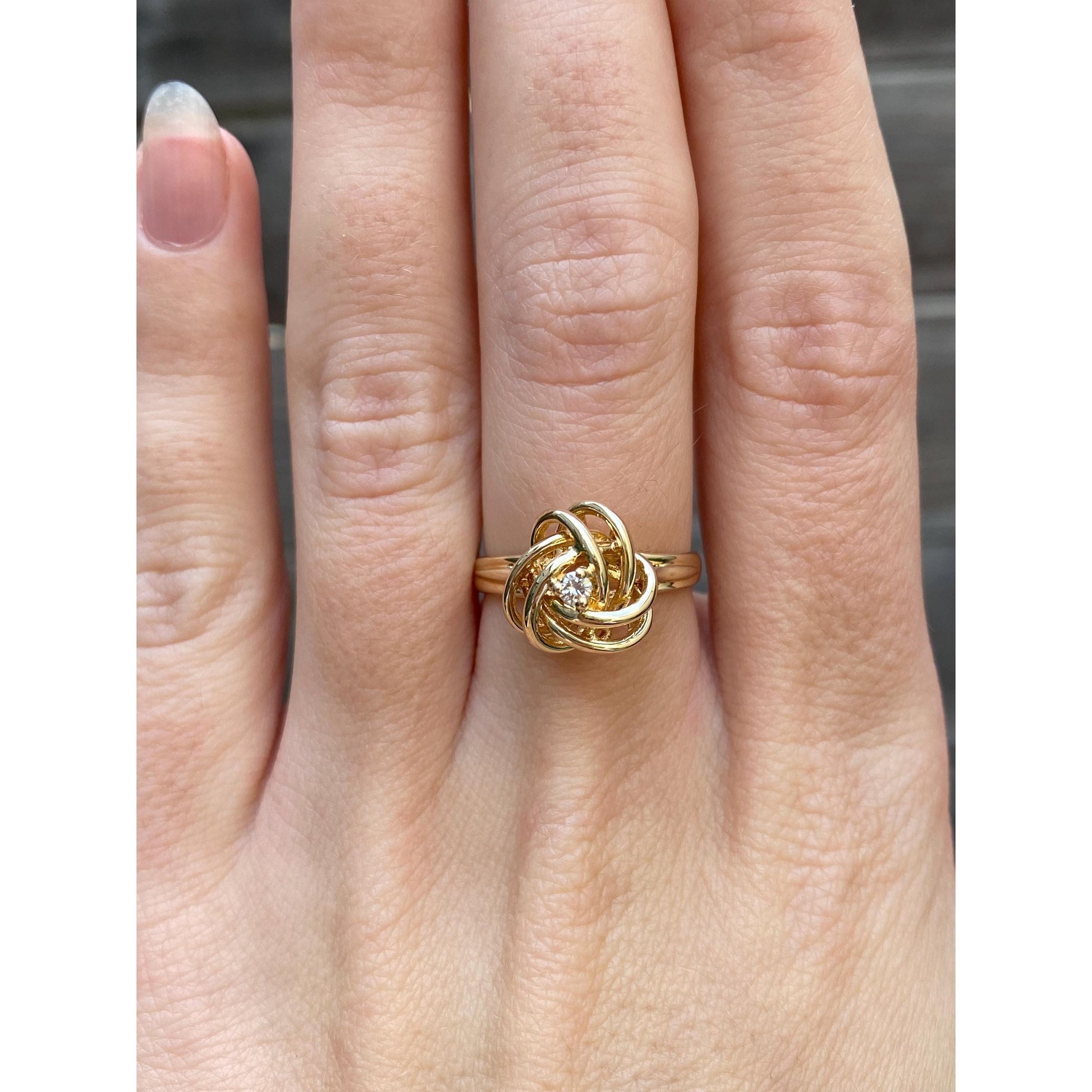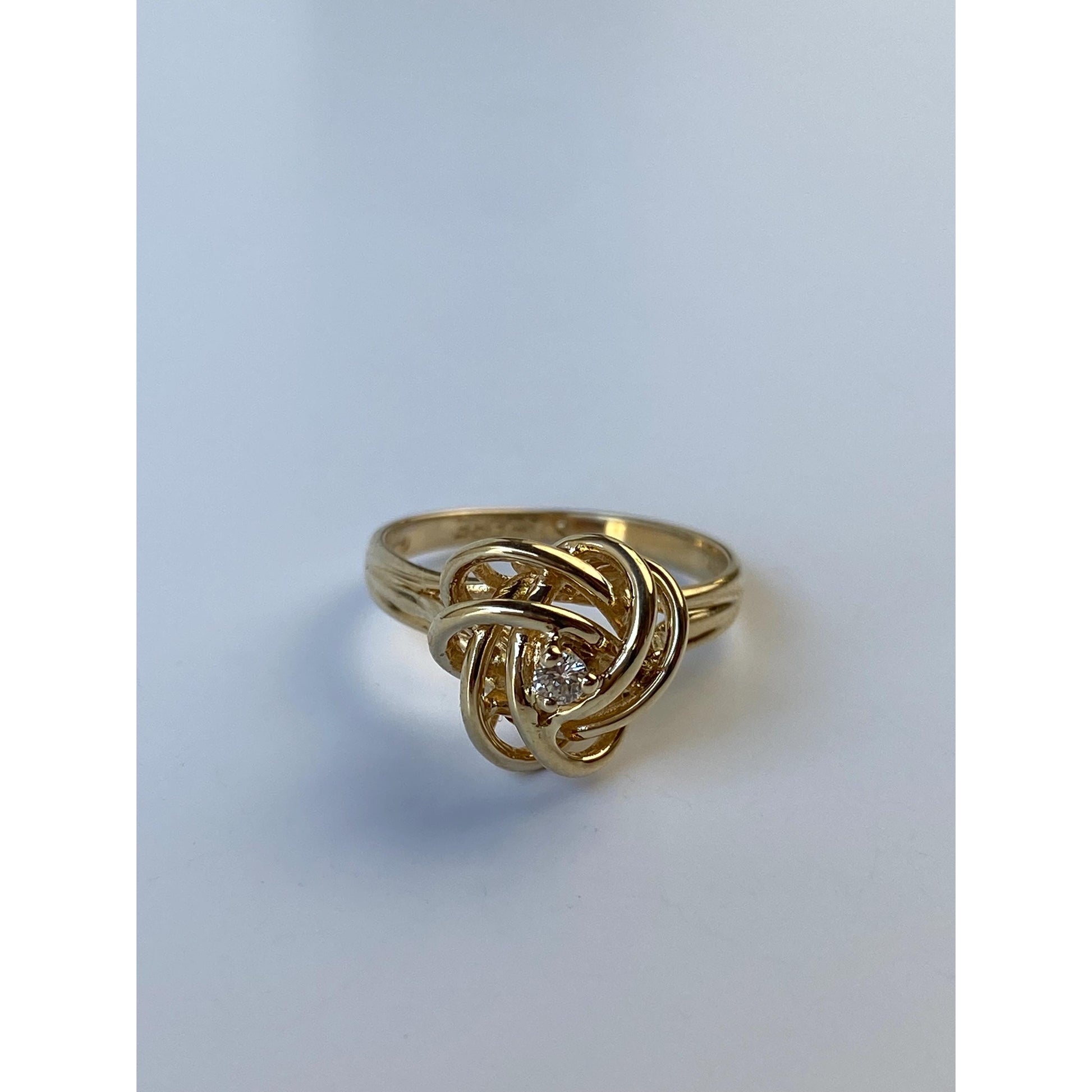 Vintage Solid 14k Yellow Gold Diamond Knot Ring - Size 6.5