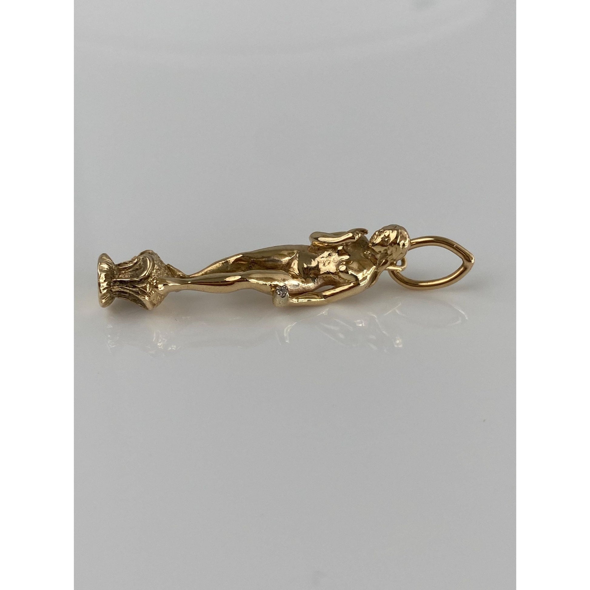 Vintage Solid 14k Yellow Gold Diamond Lady Statue Charm