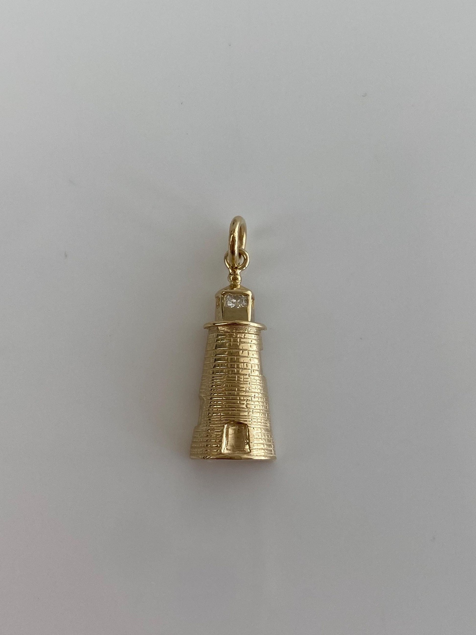 Vintage Solid 14k Yellow Gold Diamond Lighthouse Charm