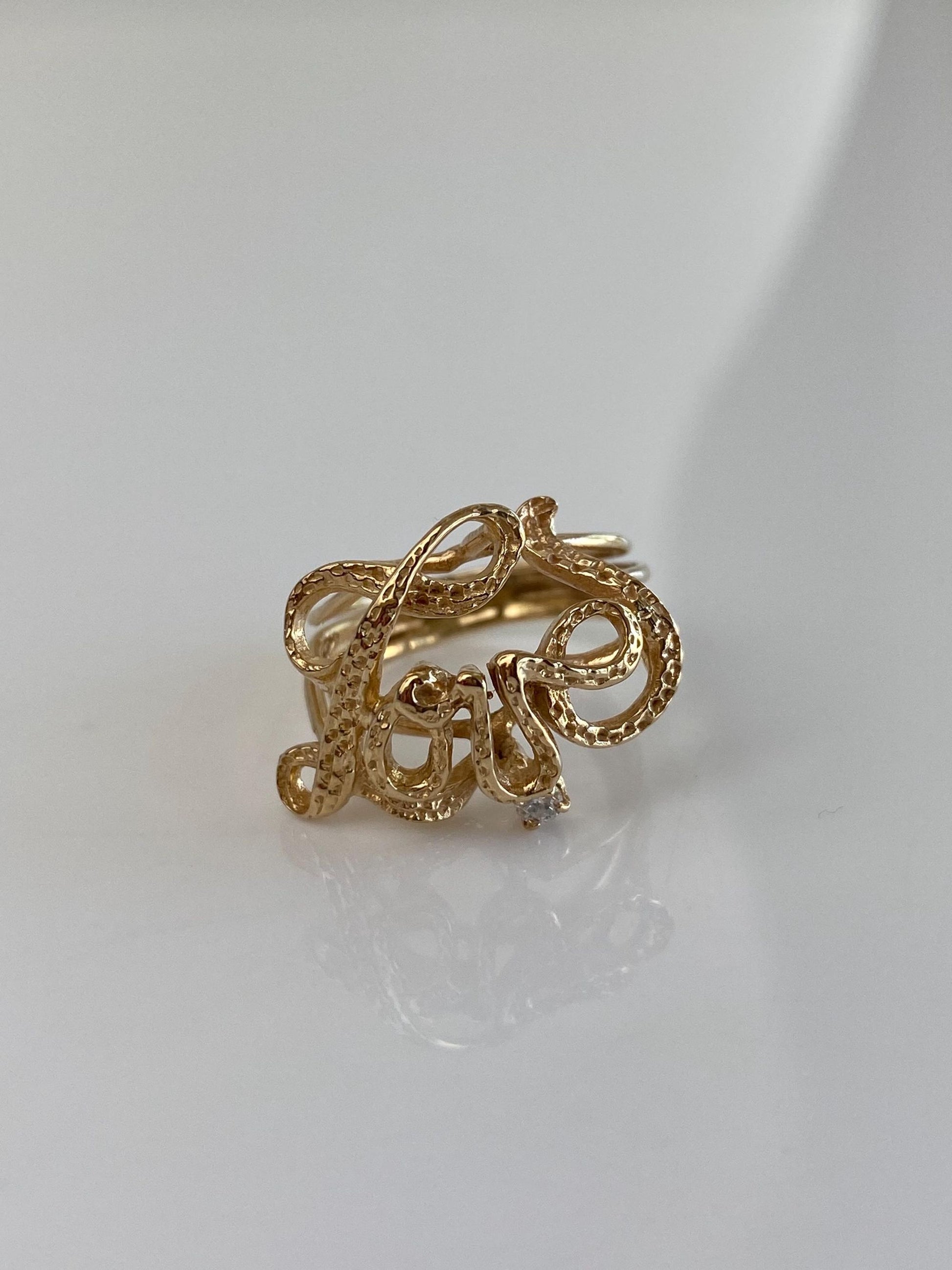 Vintage Solid 14k Yellow Gold Diamond Love Ring - Size 4