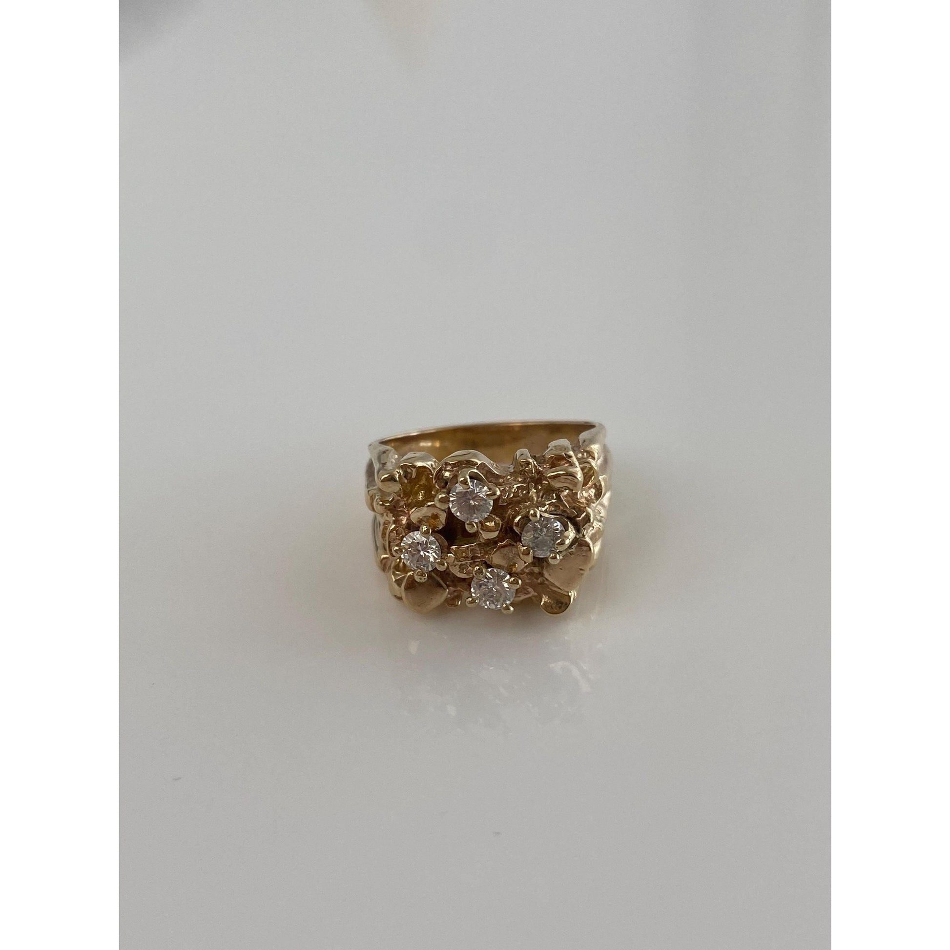 Vintage Solid 14k Yellow Gold Diamond Nugget Ring - Size 6.5