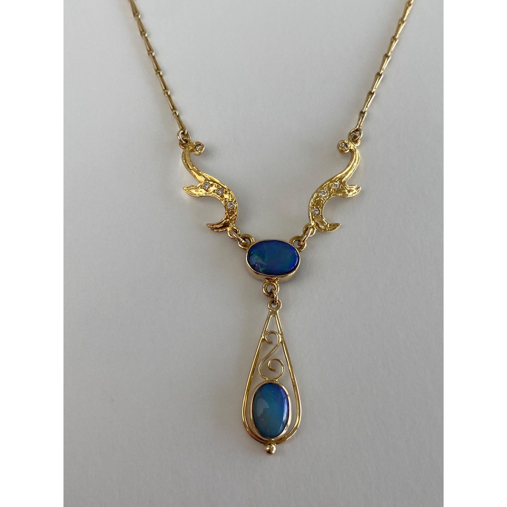 Vintage Solid 14k Yellow Gold Diamond Opal Fancy Link Necklace - 16.25 inches