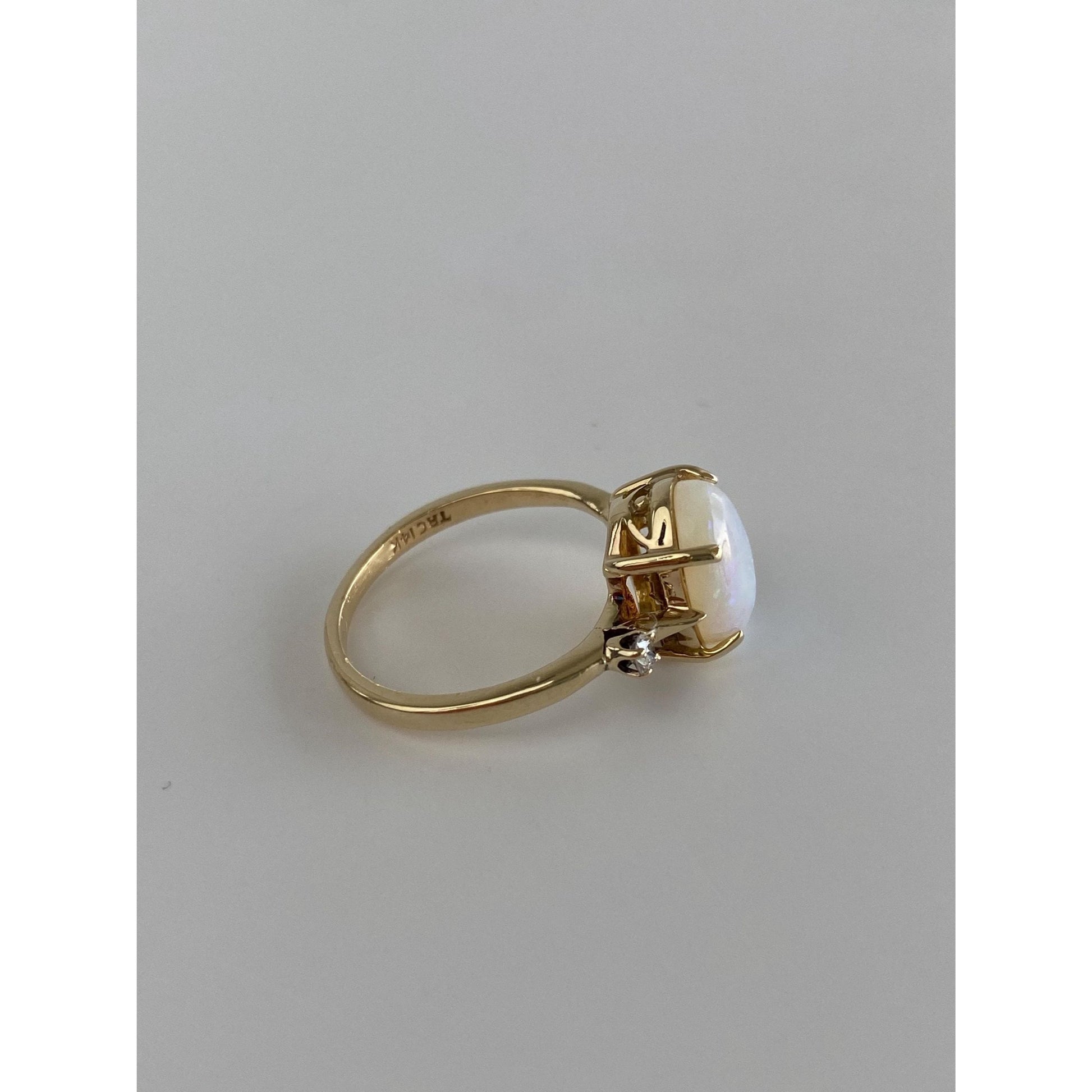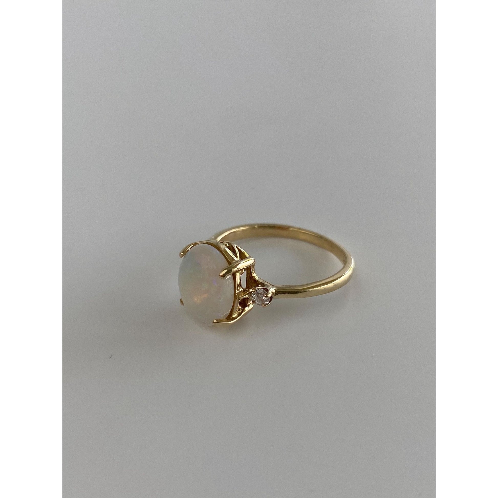 Vintage Solid 14k Yellow Gold Diamond Opal Ring - Size 5.75