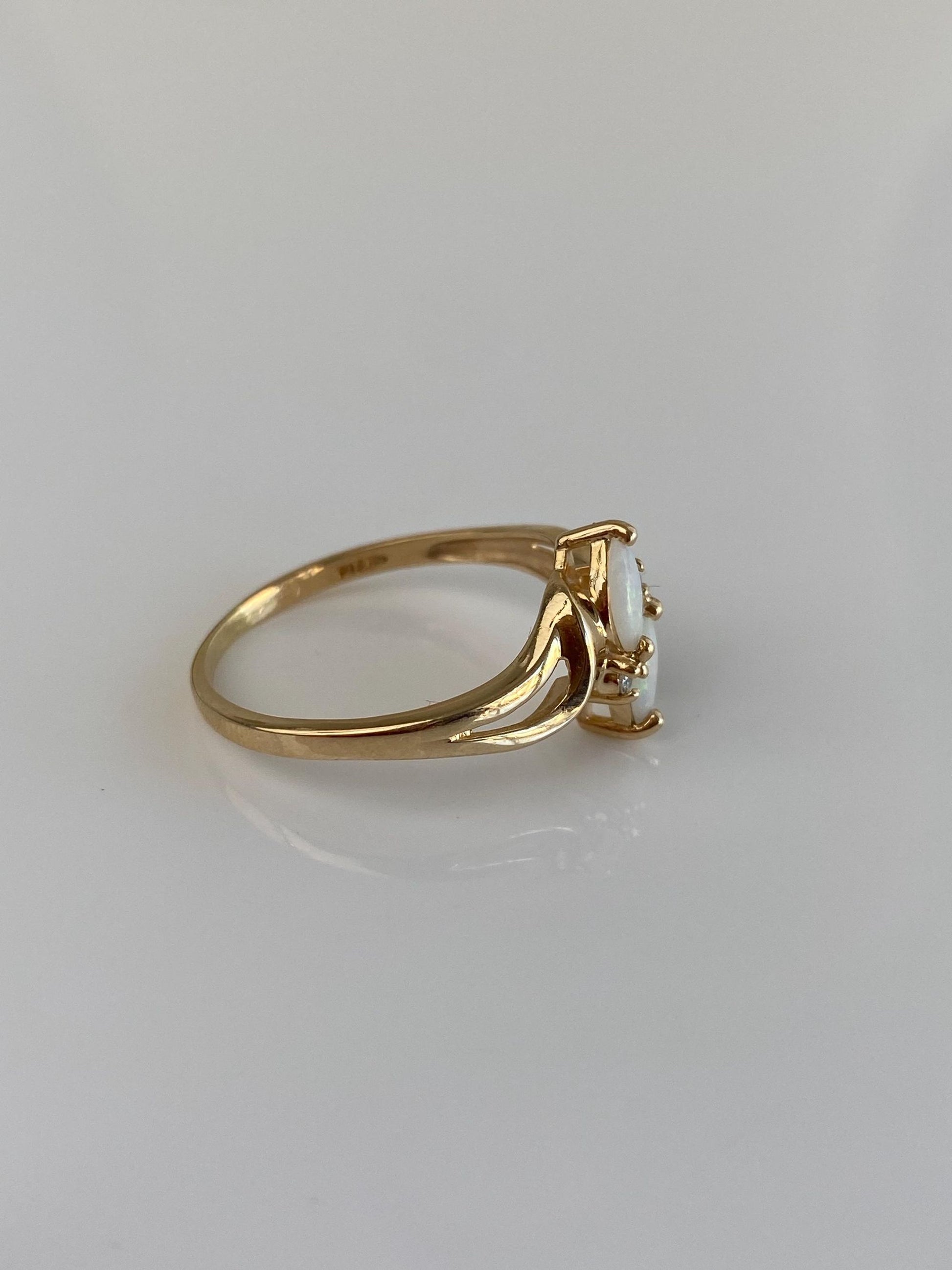 Vintage Solid 14k Yellow Gold Diamond Opal Ring - Size 7.75