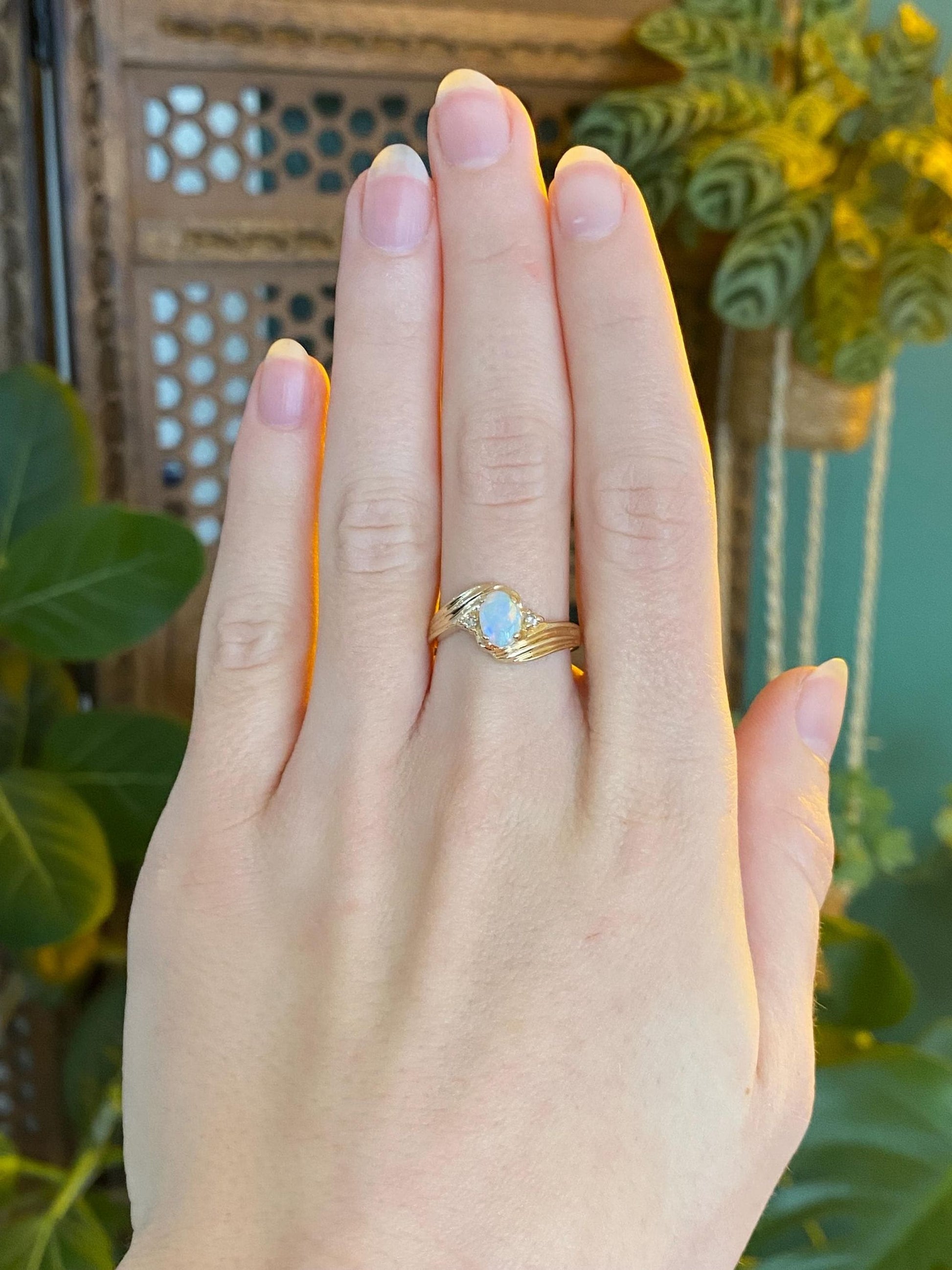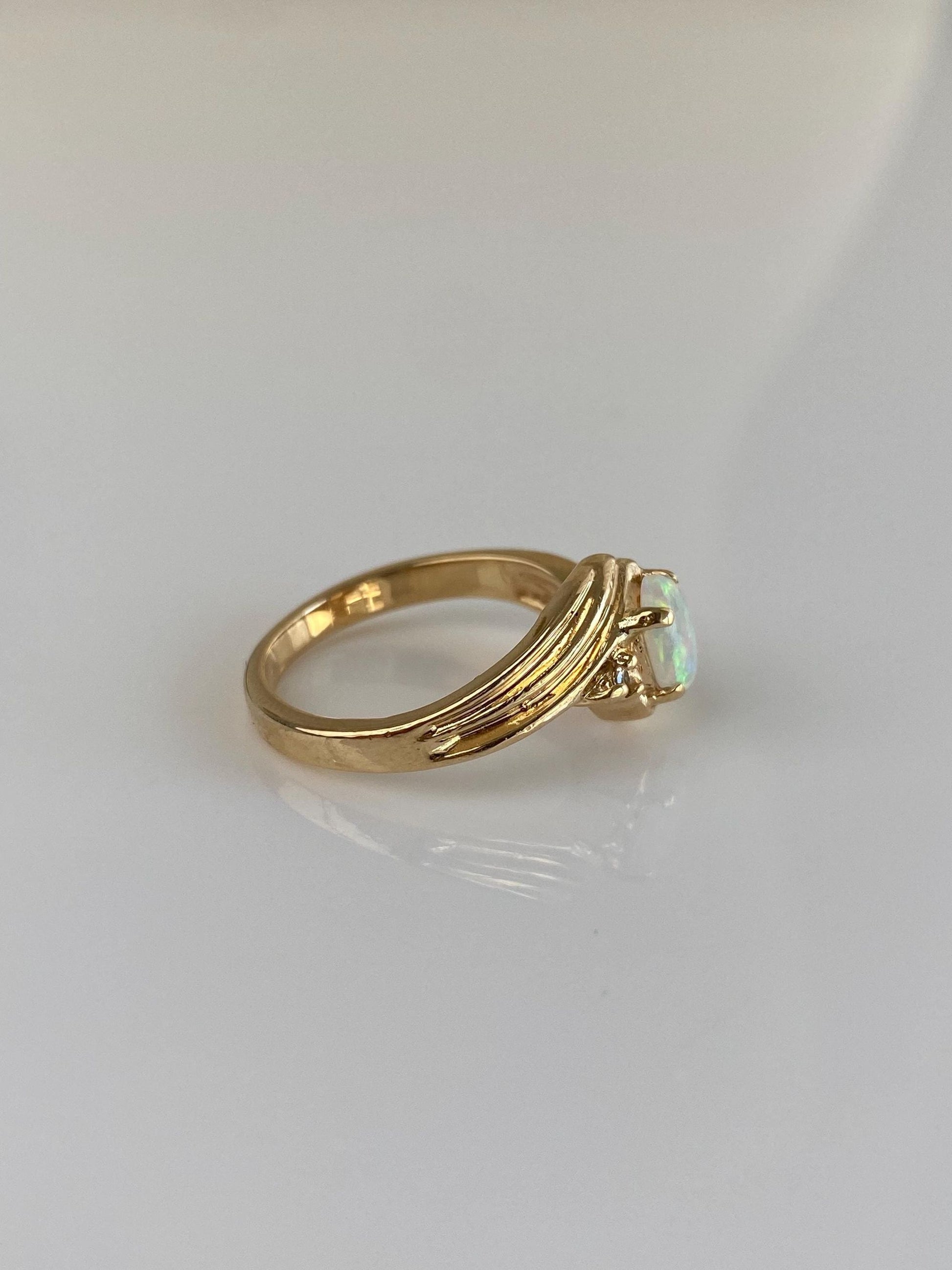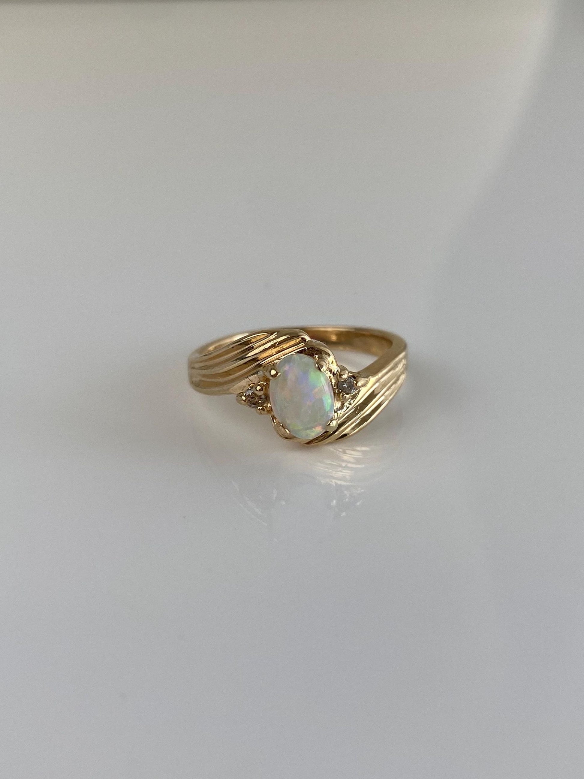 Vintage Solid 14k Yellow Gold Diamond Opal Twist Ring - Size 6.75