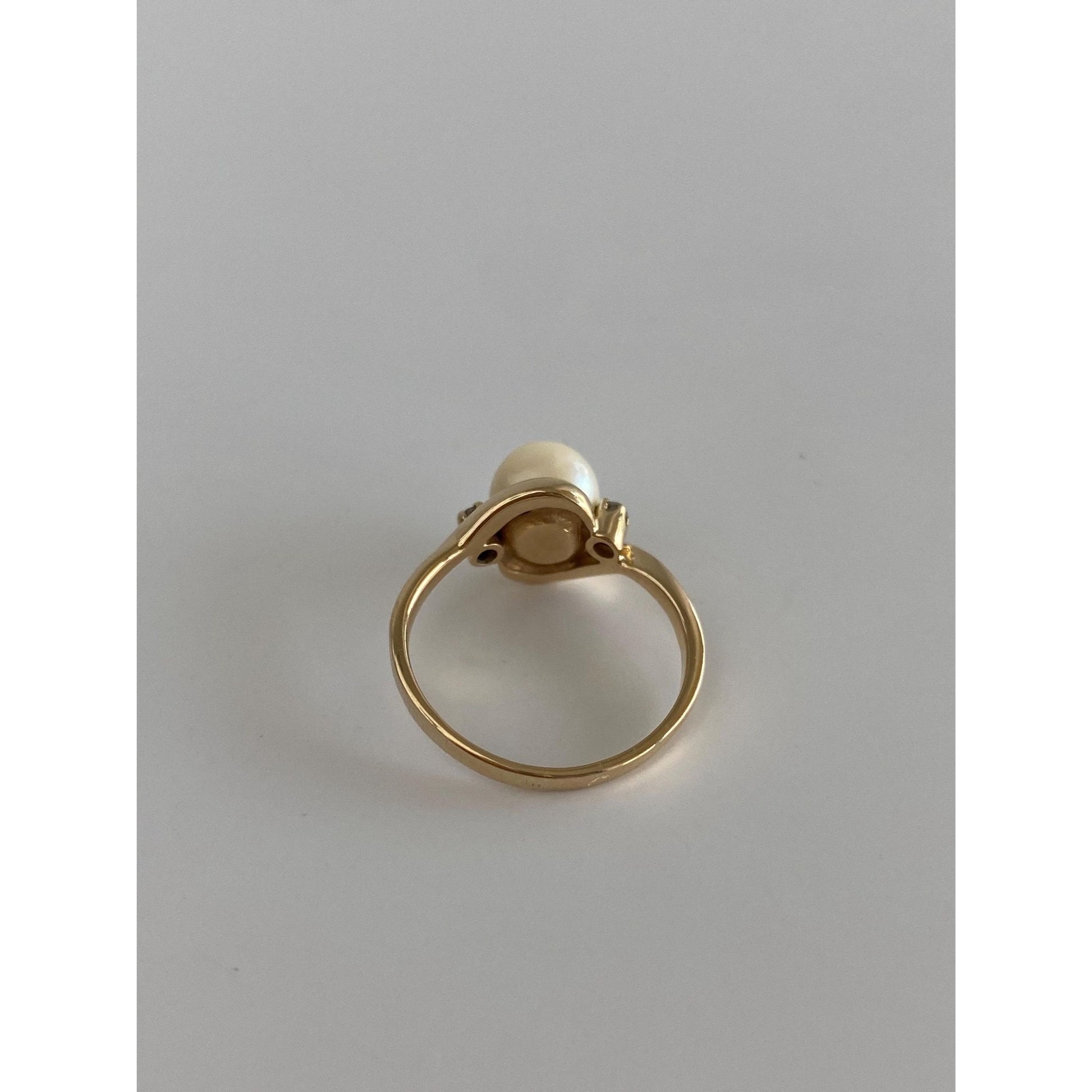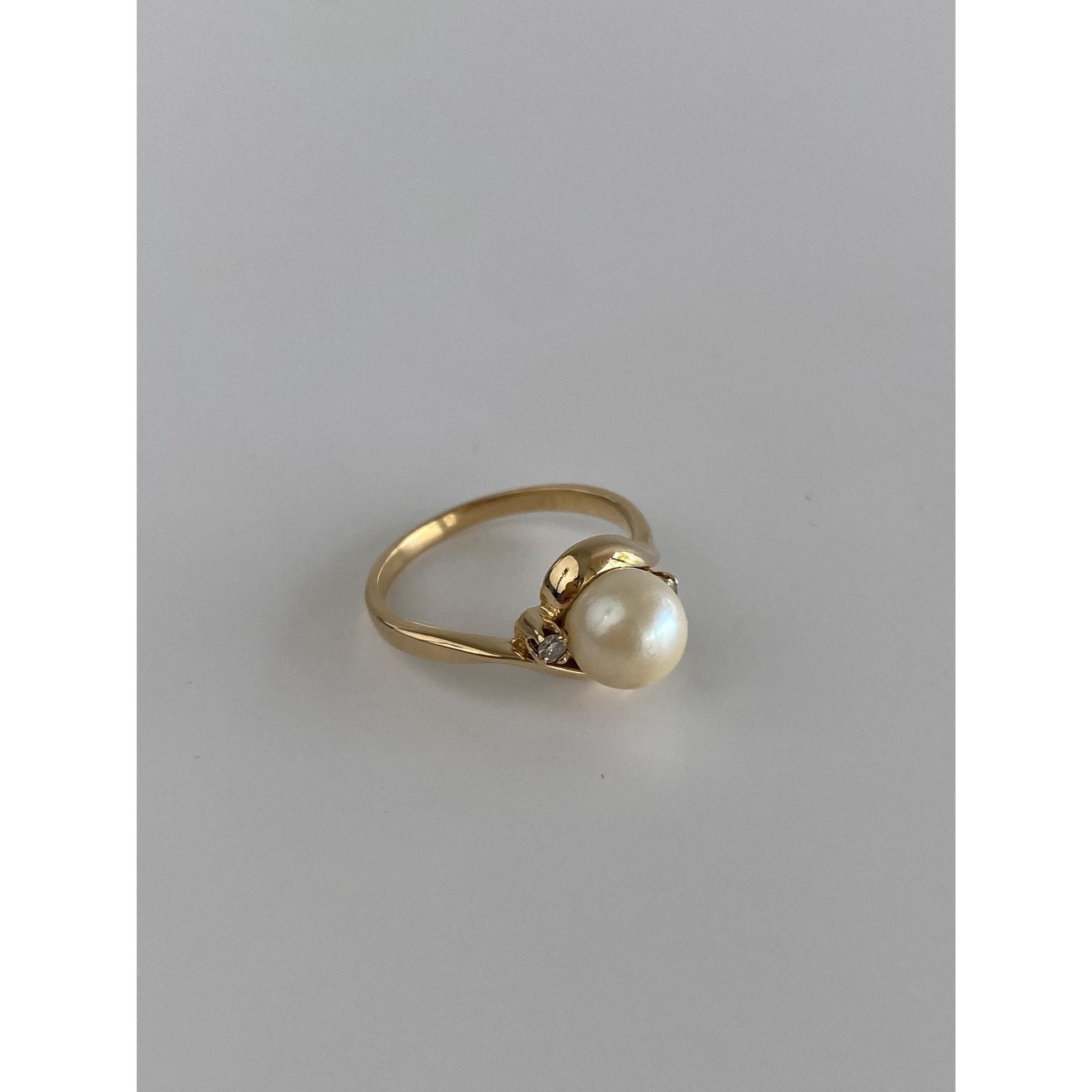Vintage Solid 14k Yellow Gold Diamond Pearl Twist Ring - Size 4.75