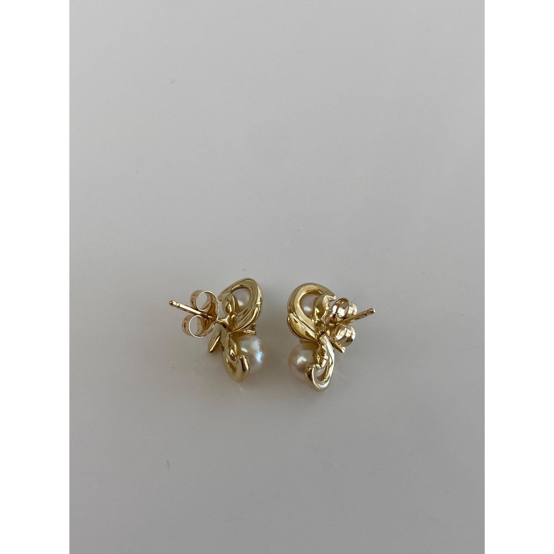 Vintage Solid 14k Yellow Gold Diamond Pearls Stud Earrings