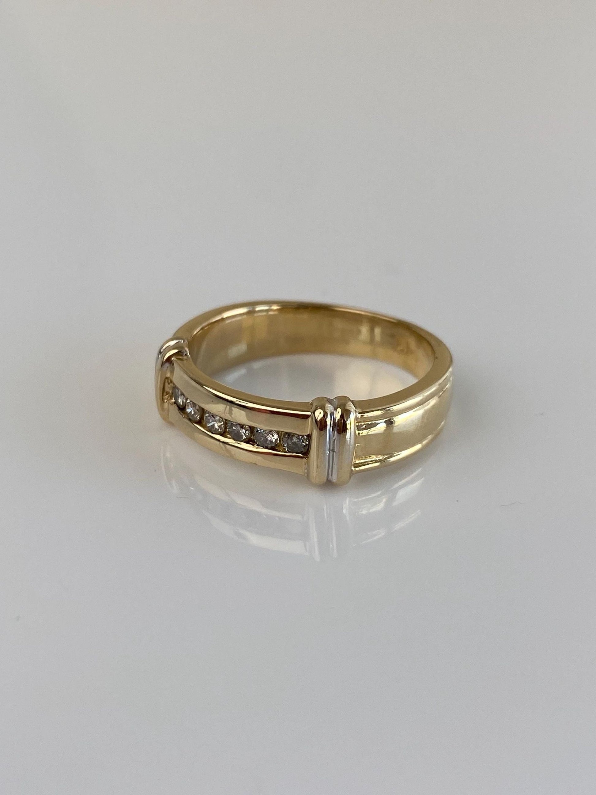 Vintage Solid 14k Yellow Gold Diamond Ring Band - Size 6.75