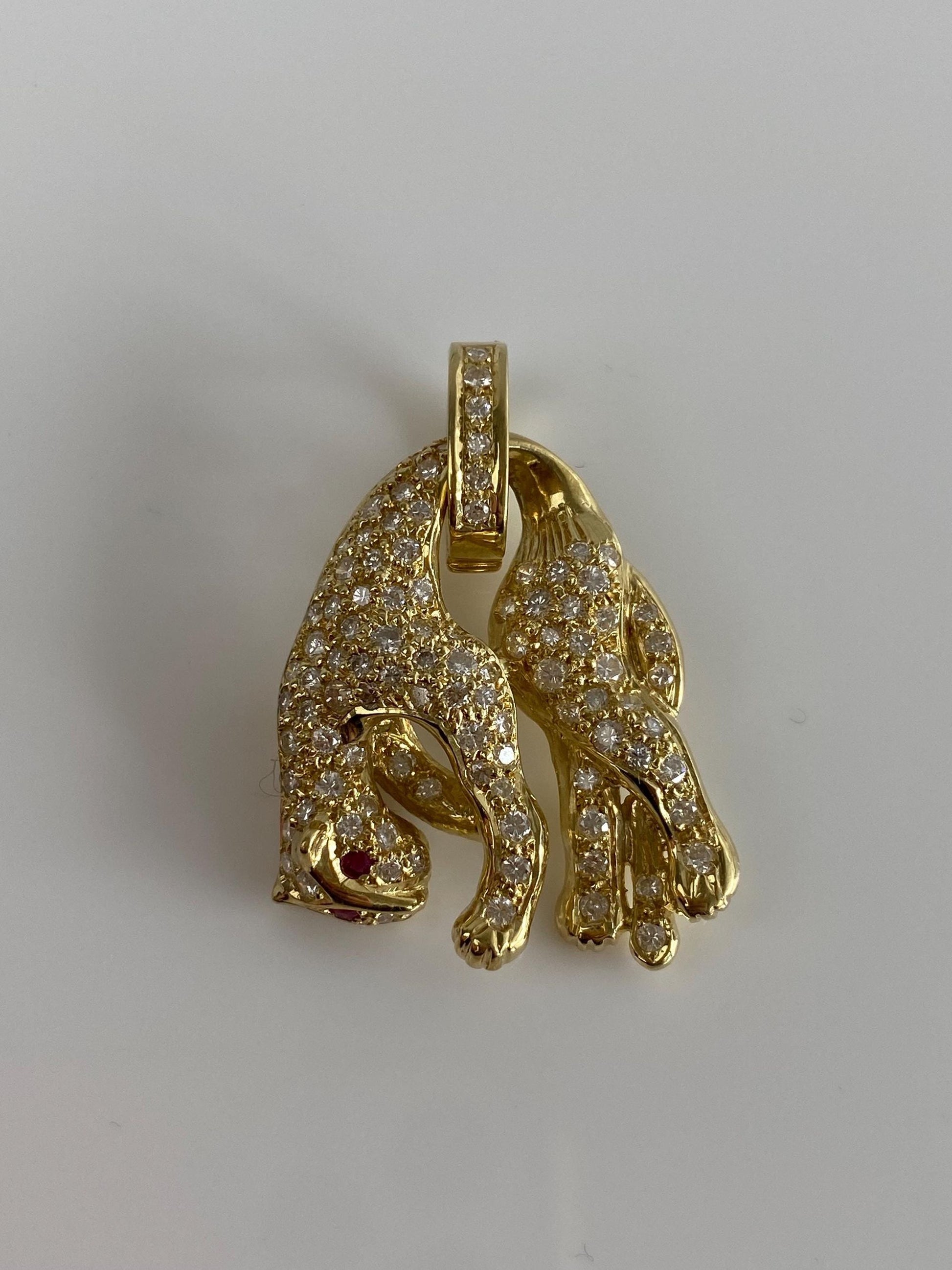 Vintage Solid 14k Yellow Gold Diamond Ruby Hanging Jaguar Charm