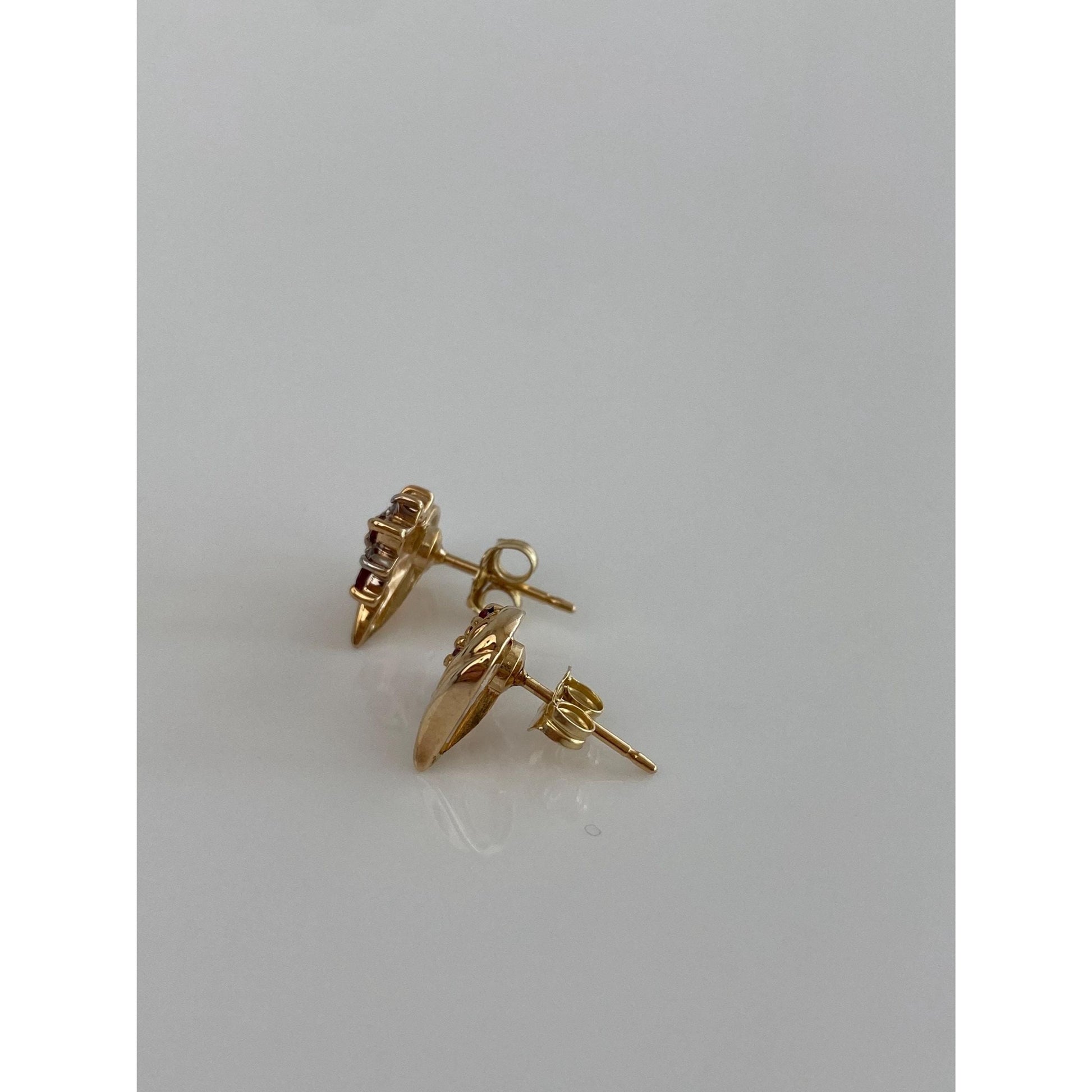 Vintage Solid 14k Yellow Gold Diamond Ruby Heart Stud Earrings