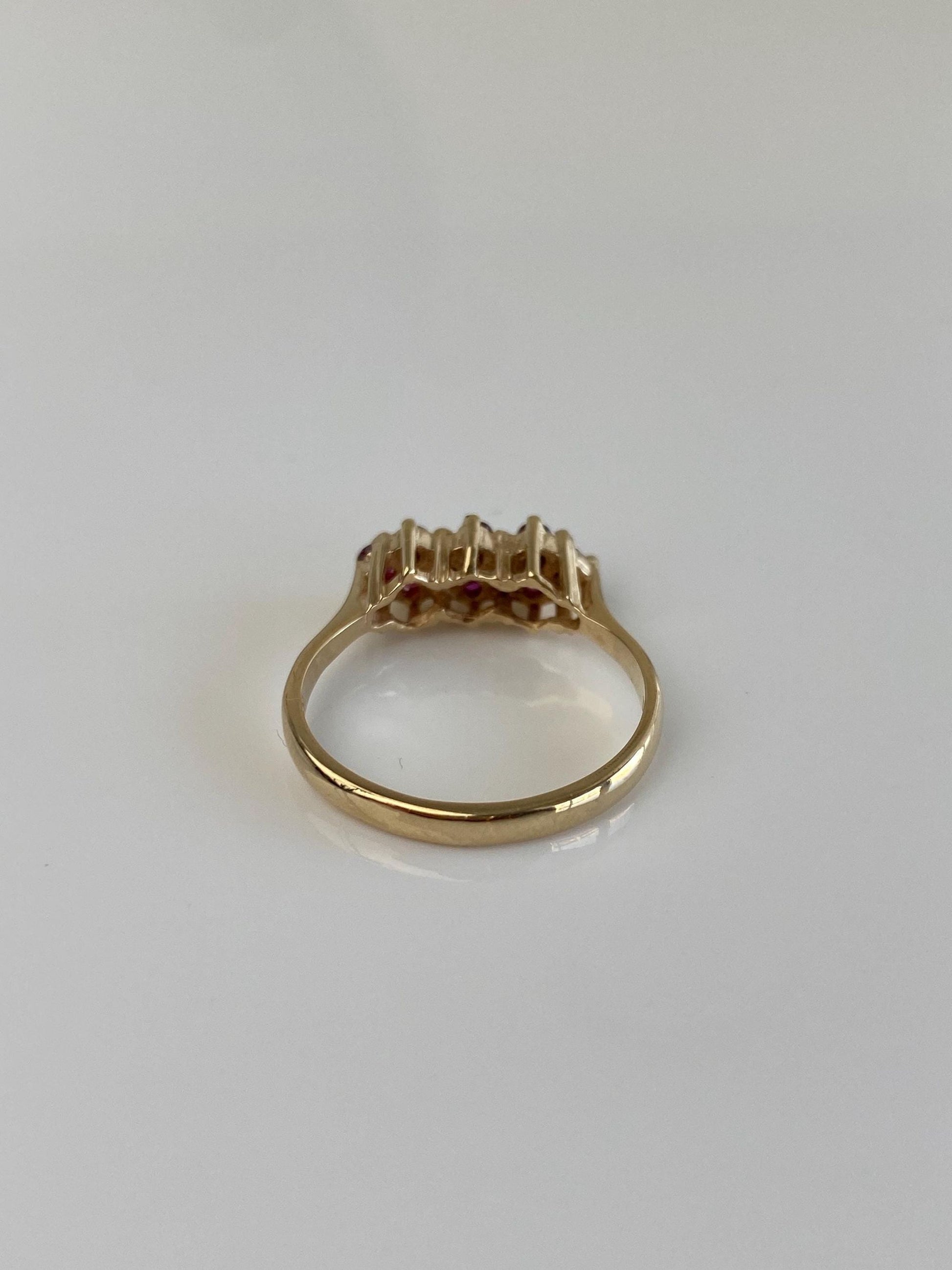 Vintage Solid 14k Yellow Gold Diamond Ruby Ring - Size 6