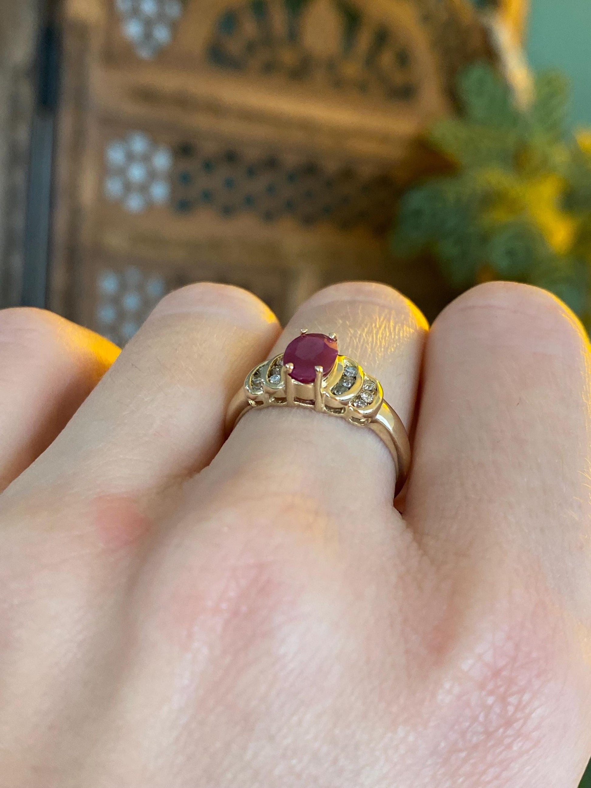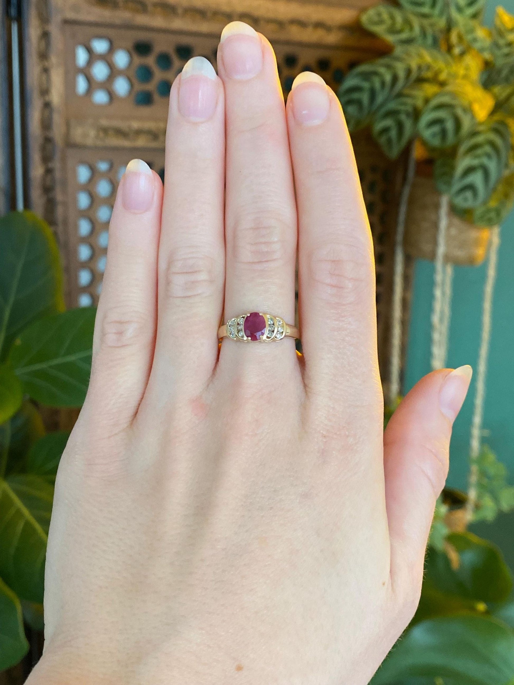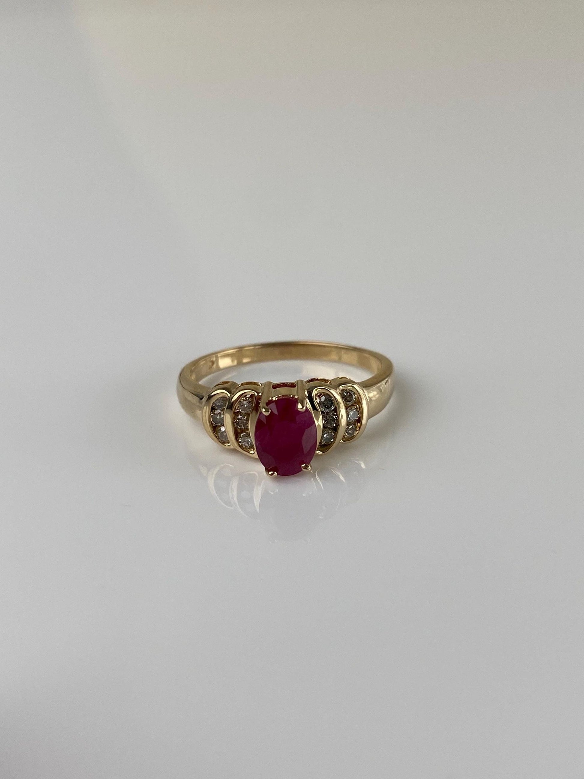 Vintage Solid 14k Yellow Gold Diamond Ruby Ring - Size 6.75