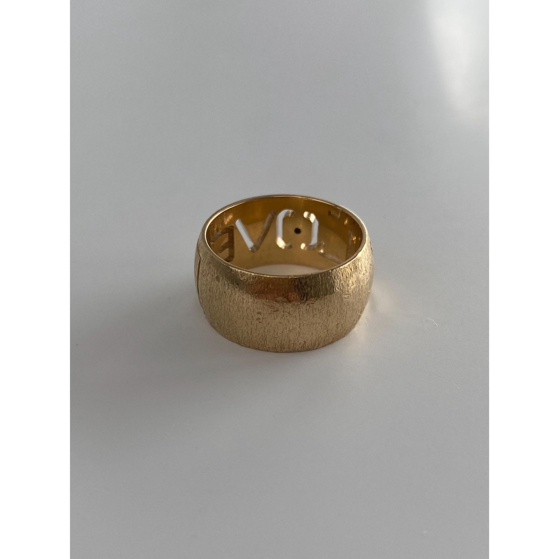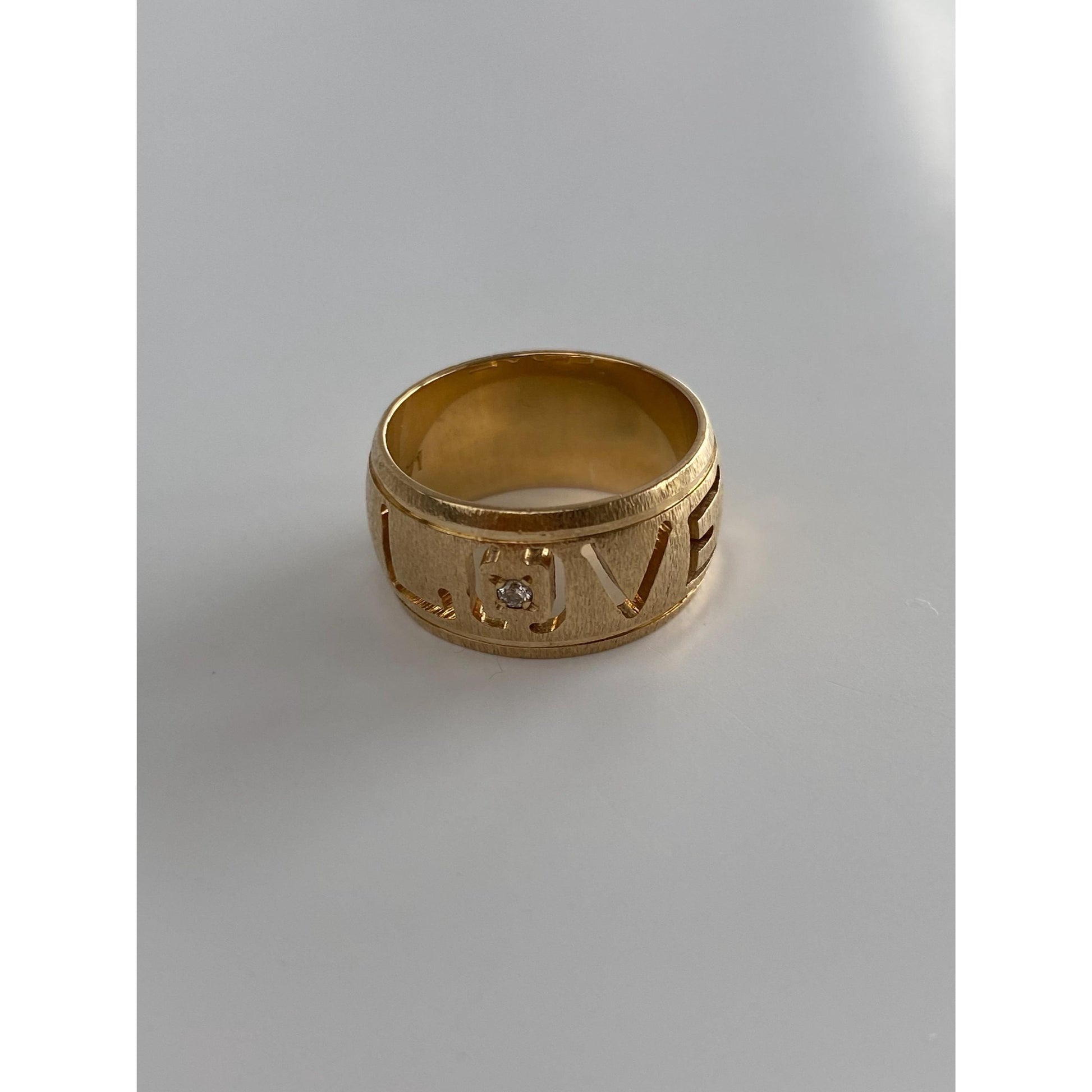 Vintage Solid 14k Yellow Gold Diamond Satin 'Love' Ring Band - Size 6.25