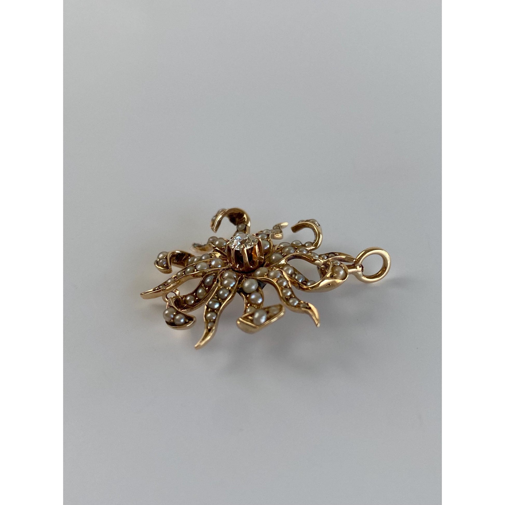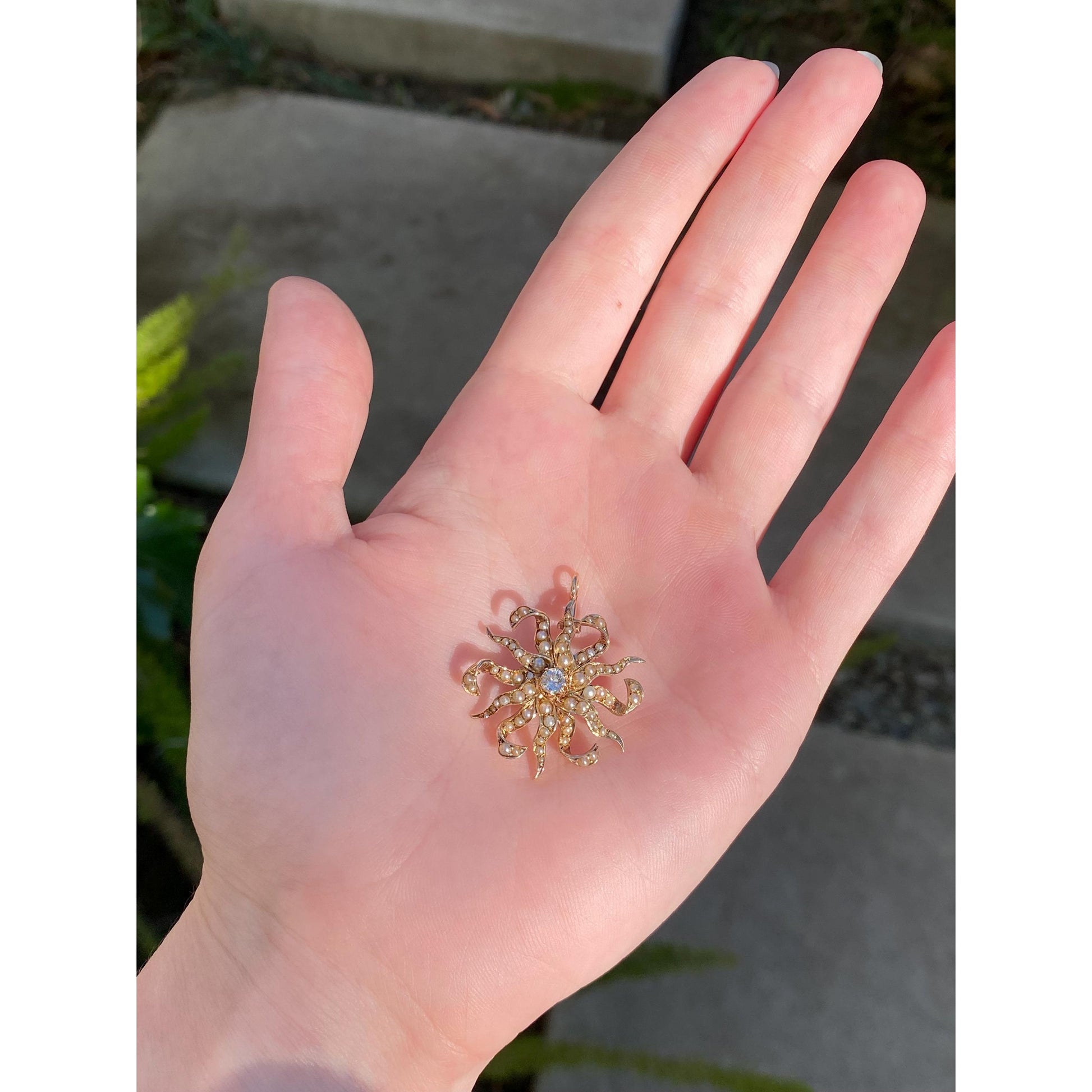 Vintage Solid 14k Yellow Gold Diamond Seed Pearl Wavy Star Charm