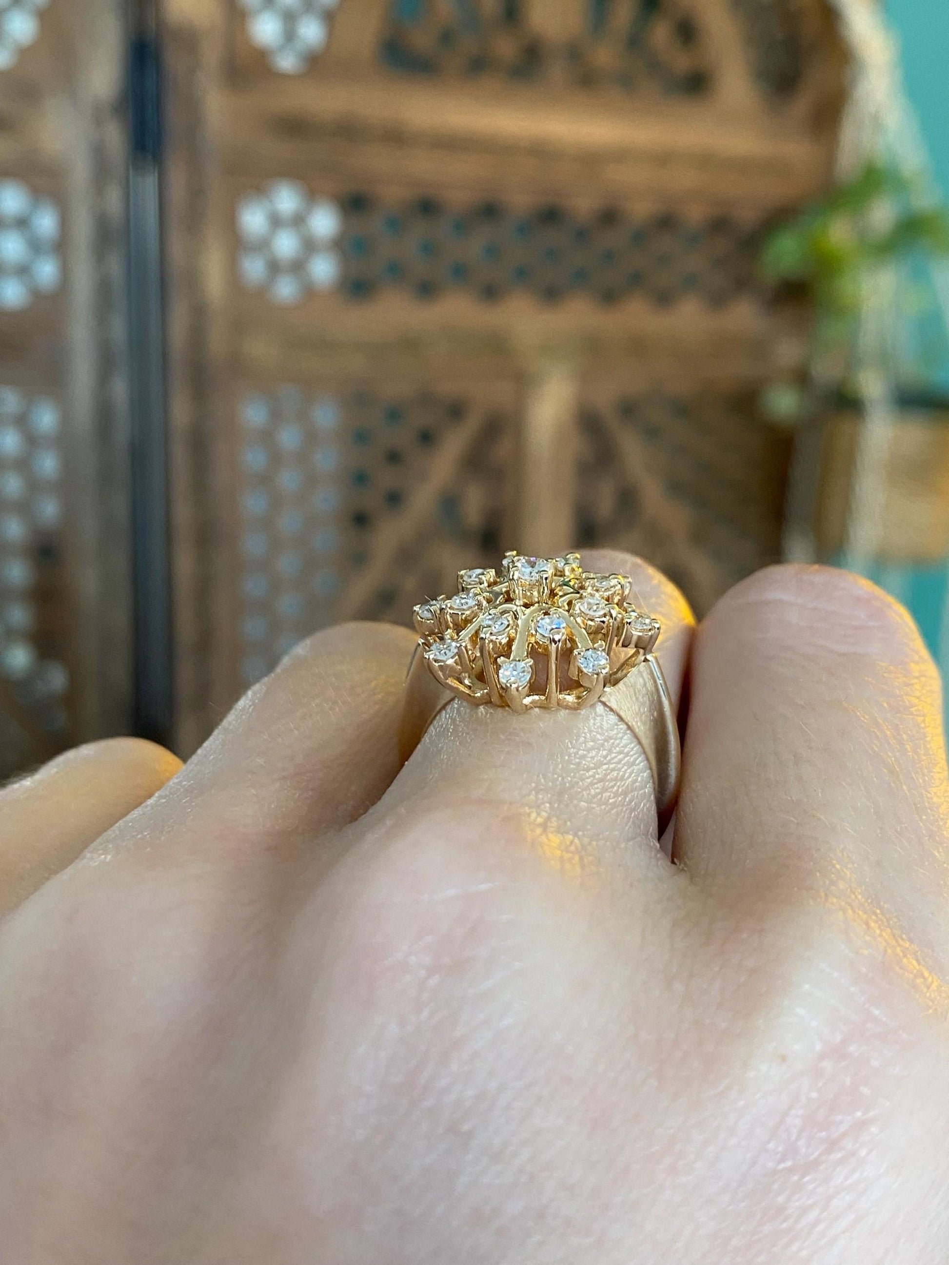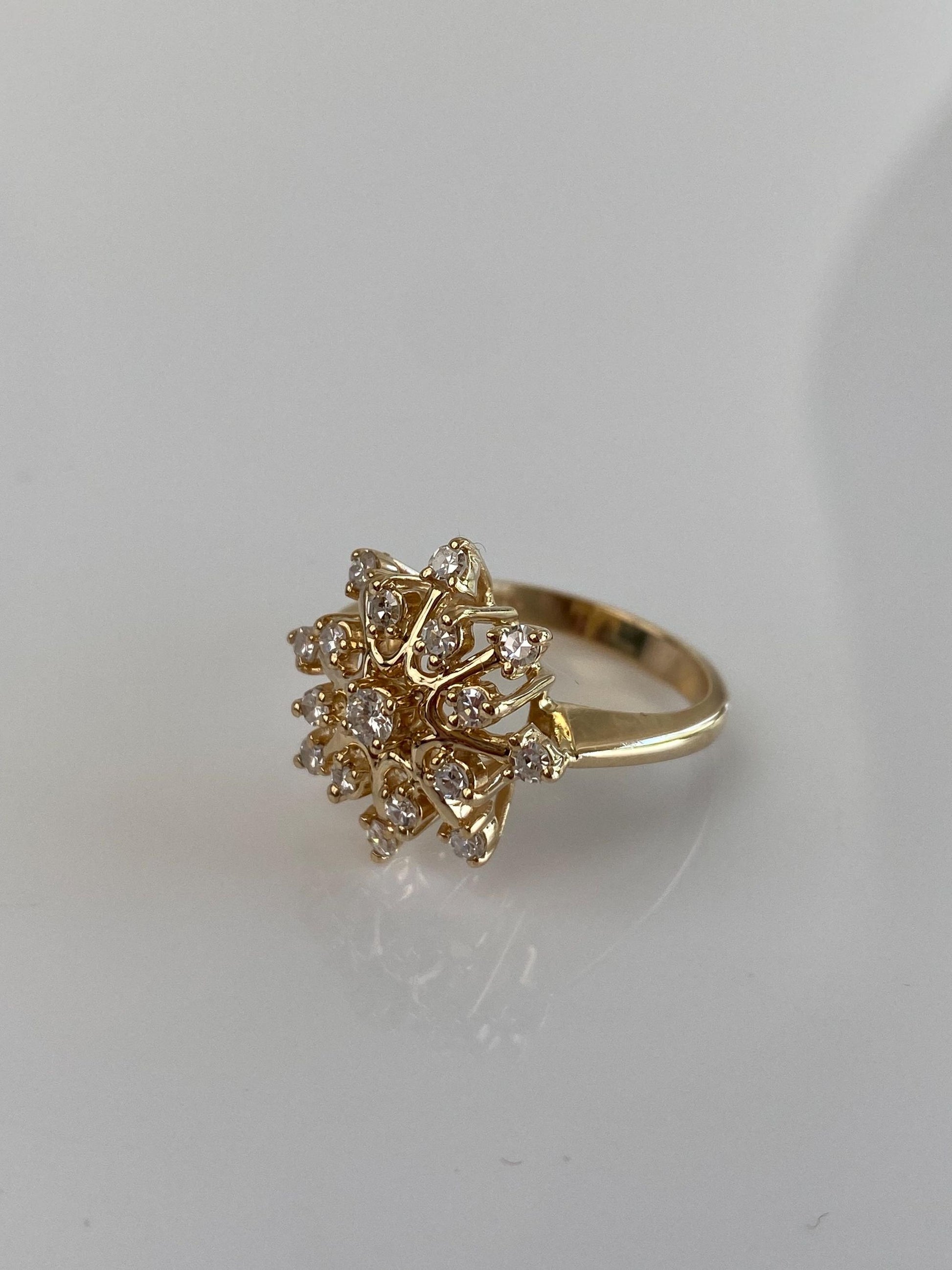 Vintage Solid 14k Yellow Gold Diamond Snowflake Ring - Size 6.25