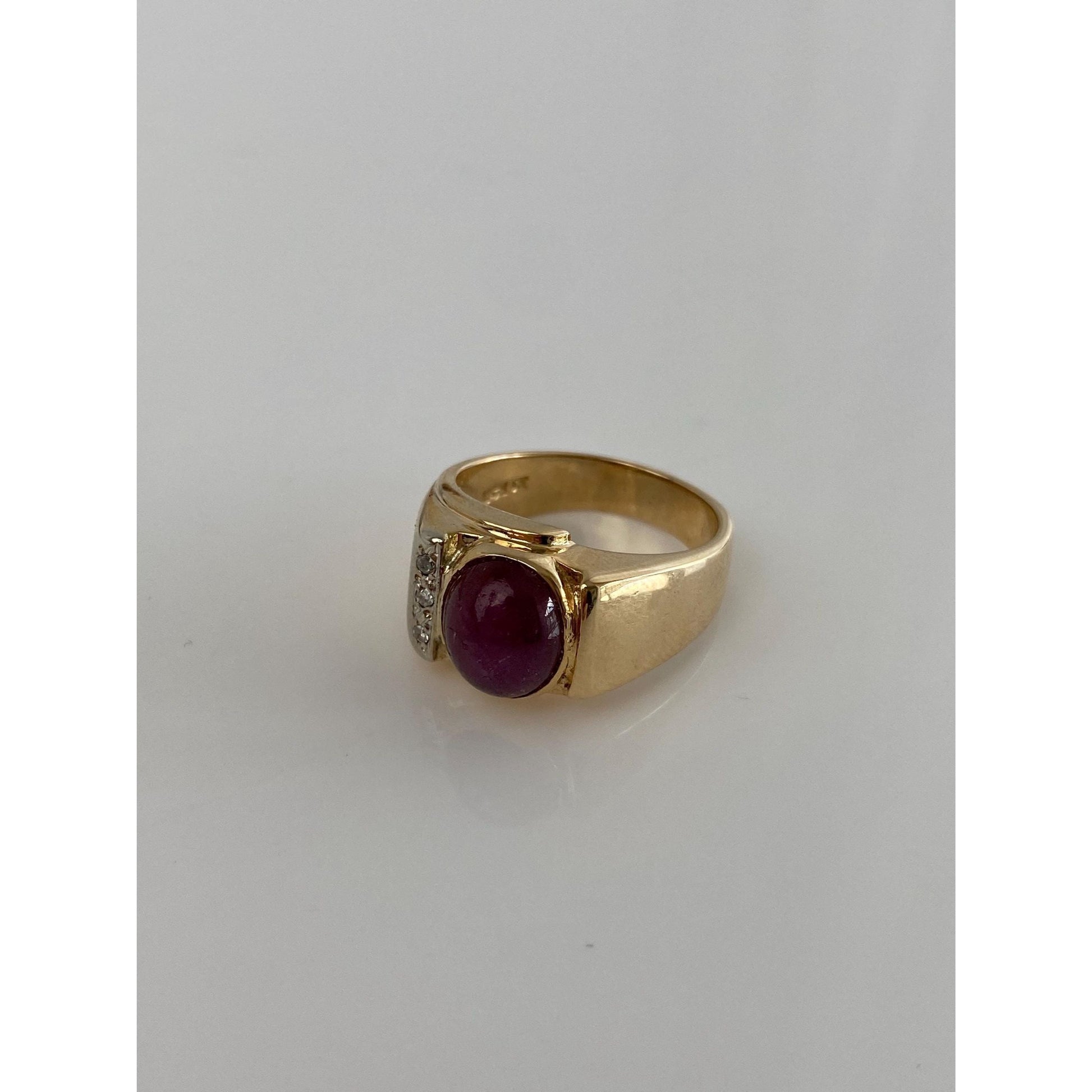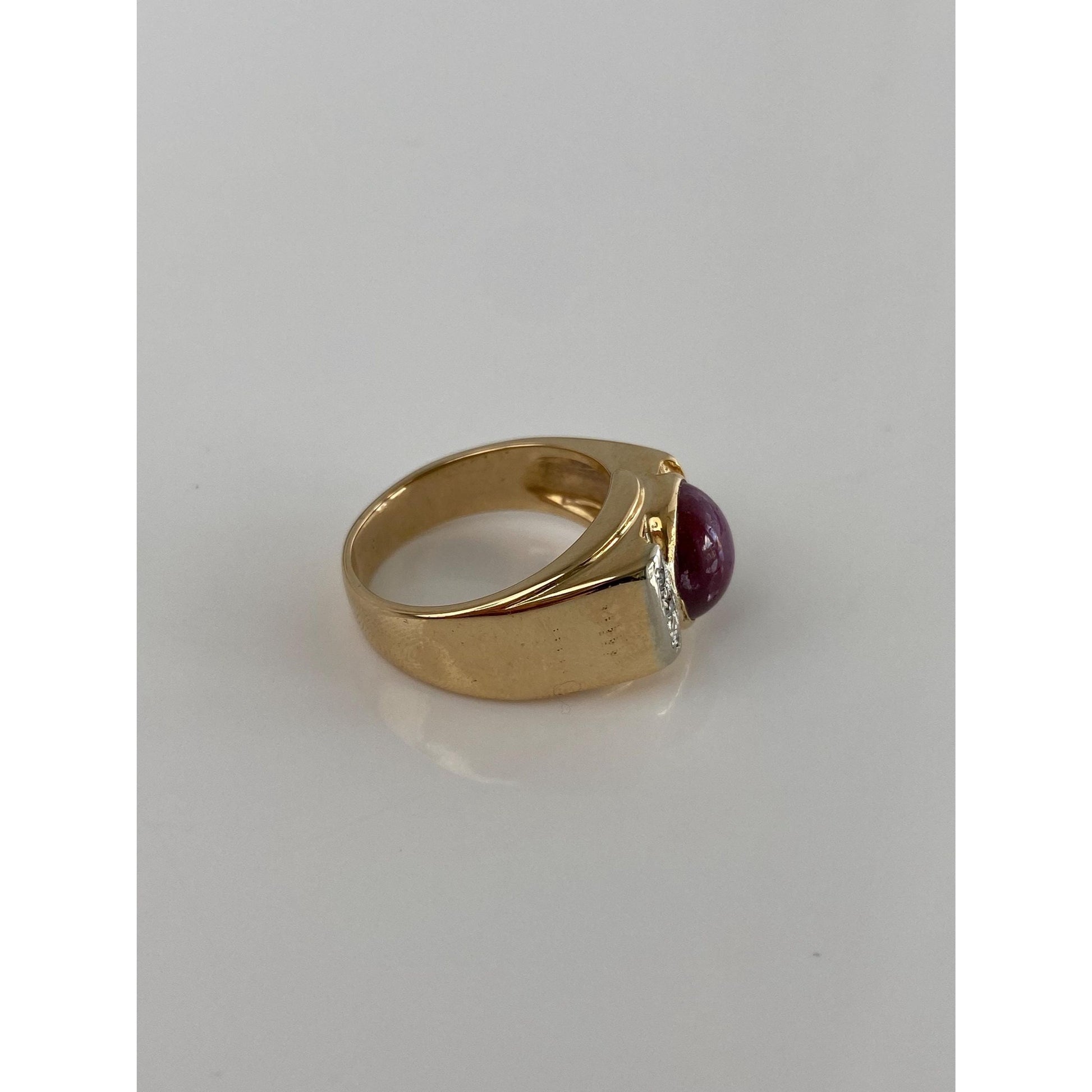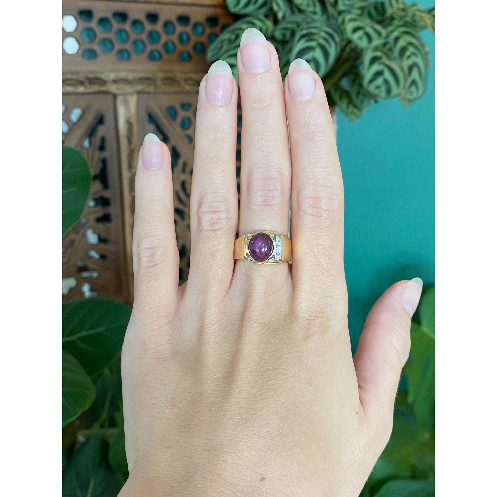 Vintage Solid 14k Yellow Gold Diamond Star Sapphire Ring Band - Size 7