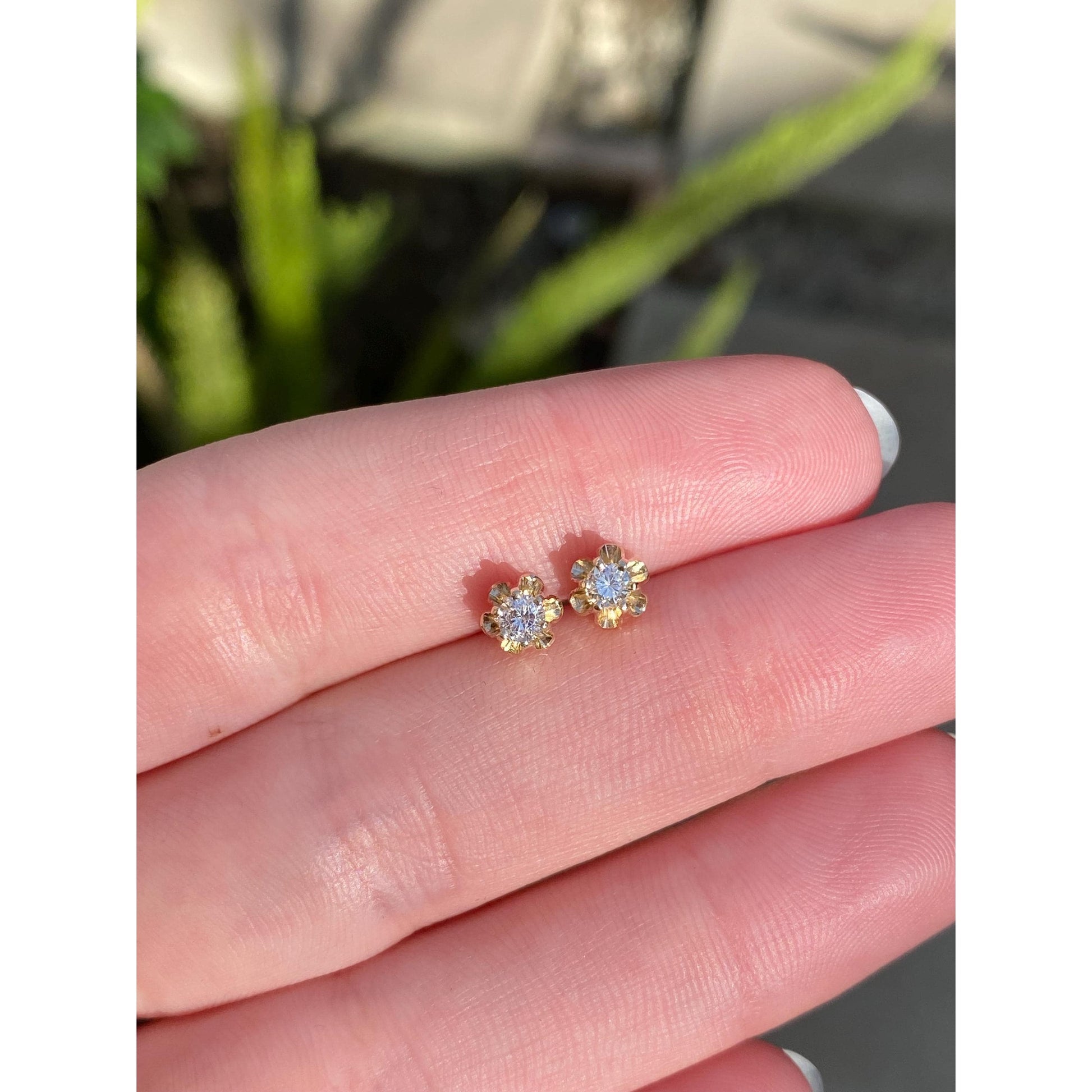 Vintage Solid 14k Yellow Gold Diamond Stud Earrings