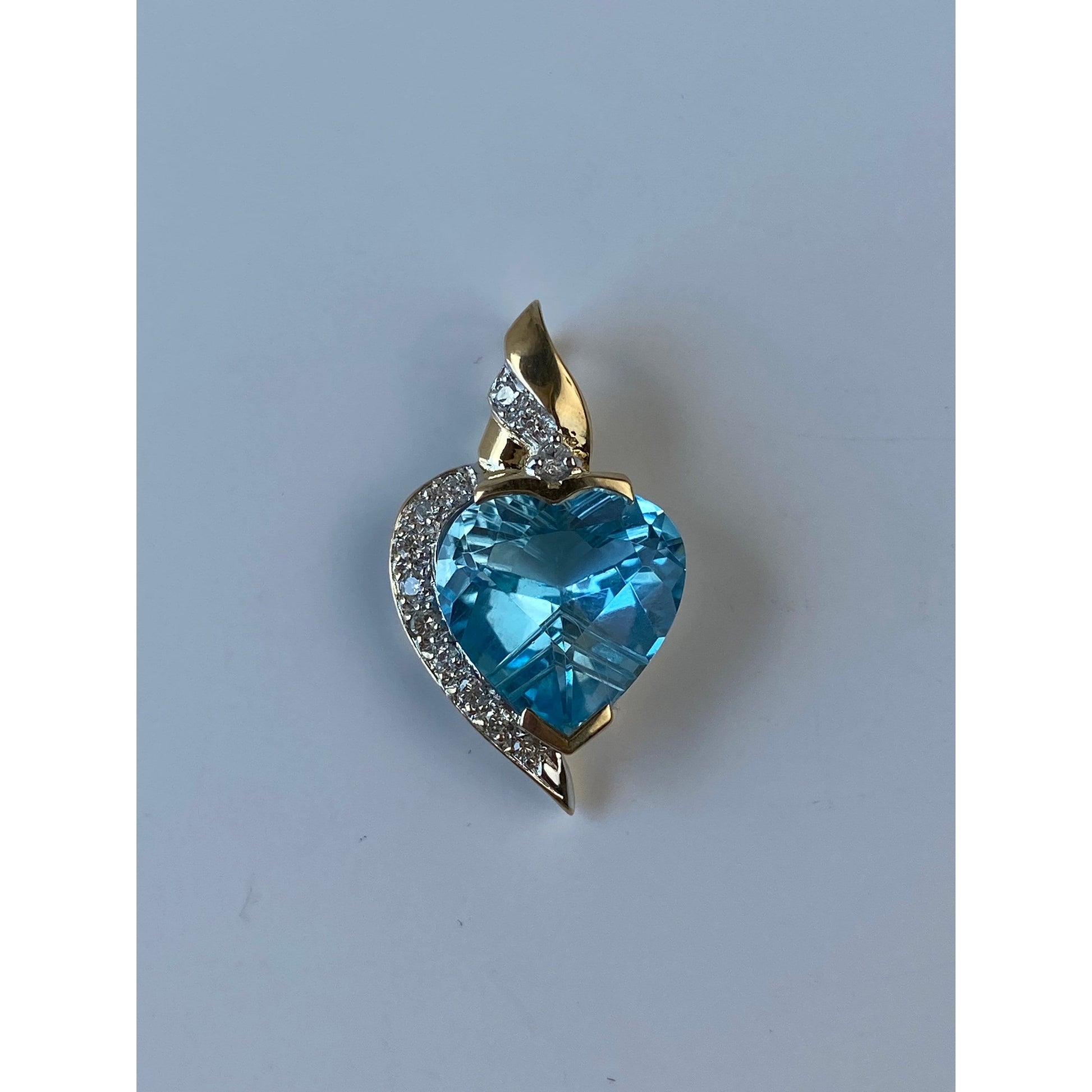 Vintage Solid 14k Yellow Gold Diamond & Topaz Heart Charm