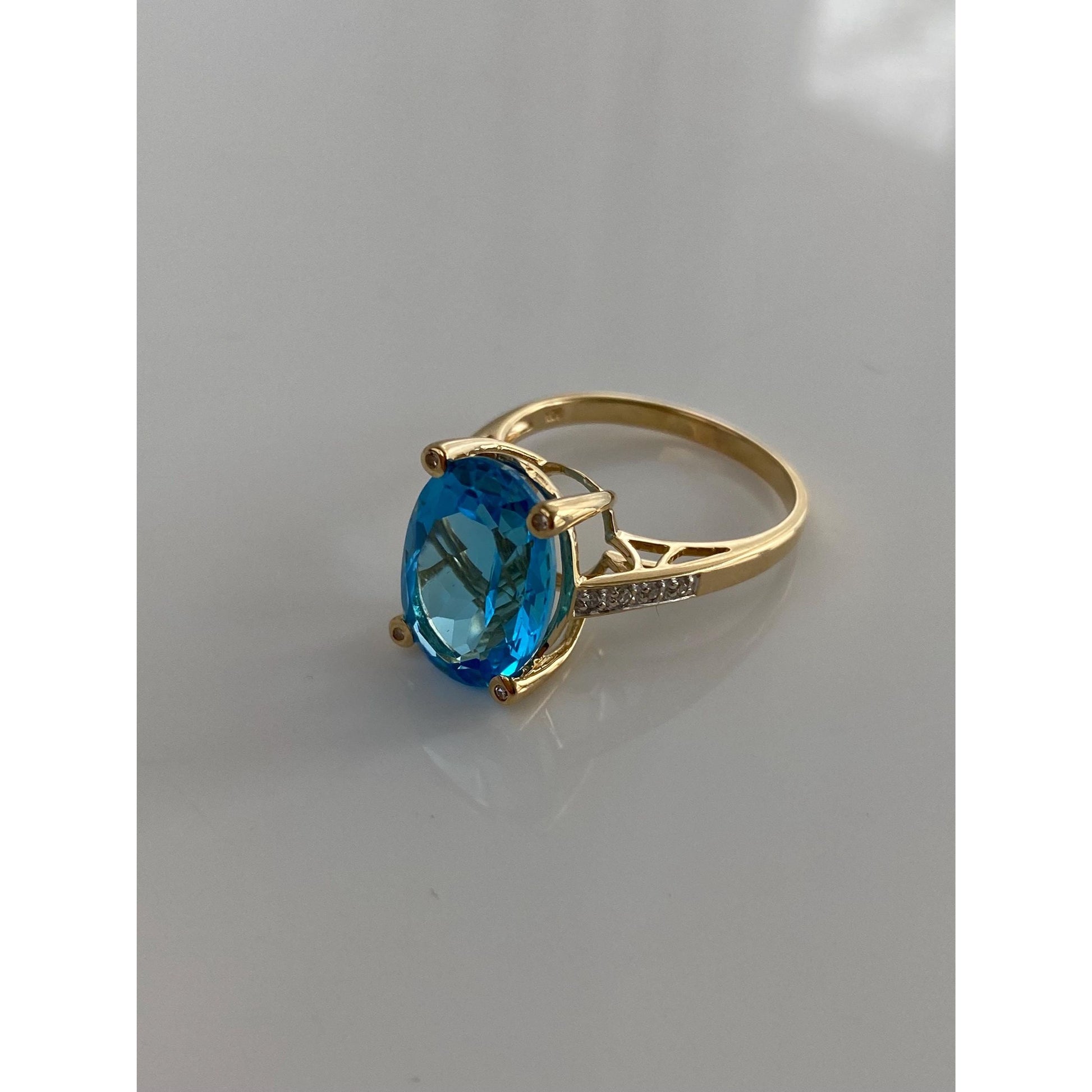 Vintage Solid 14k Yellow Gold Diamond Topaz Ring - Size 8.75