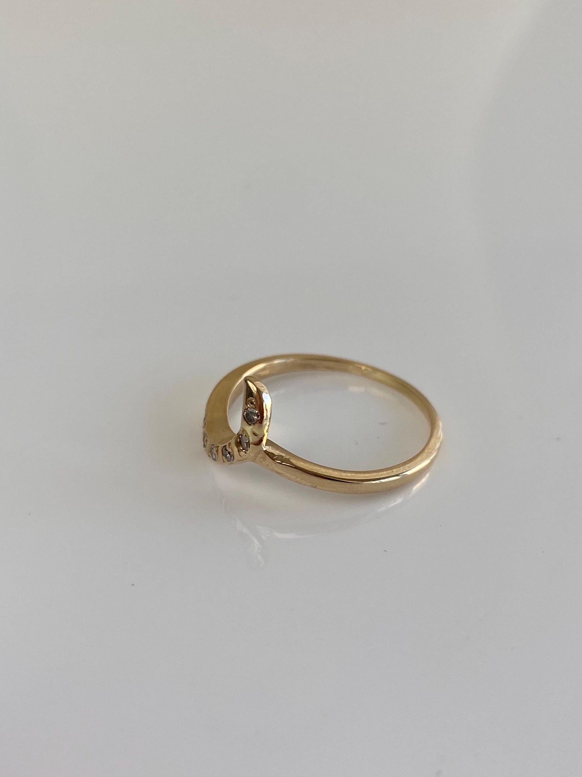 Vintage Solid 14k Yellow Gold Diamond Wave Ring - Size 6.25