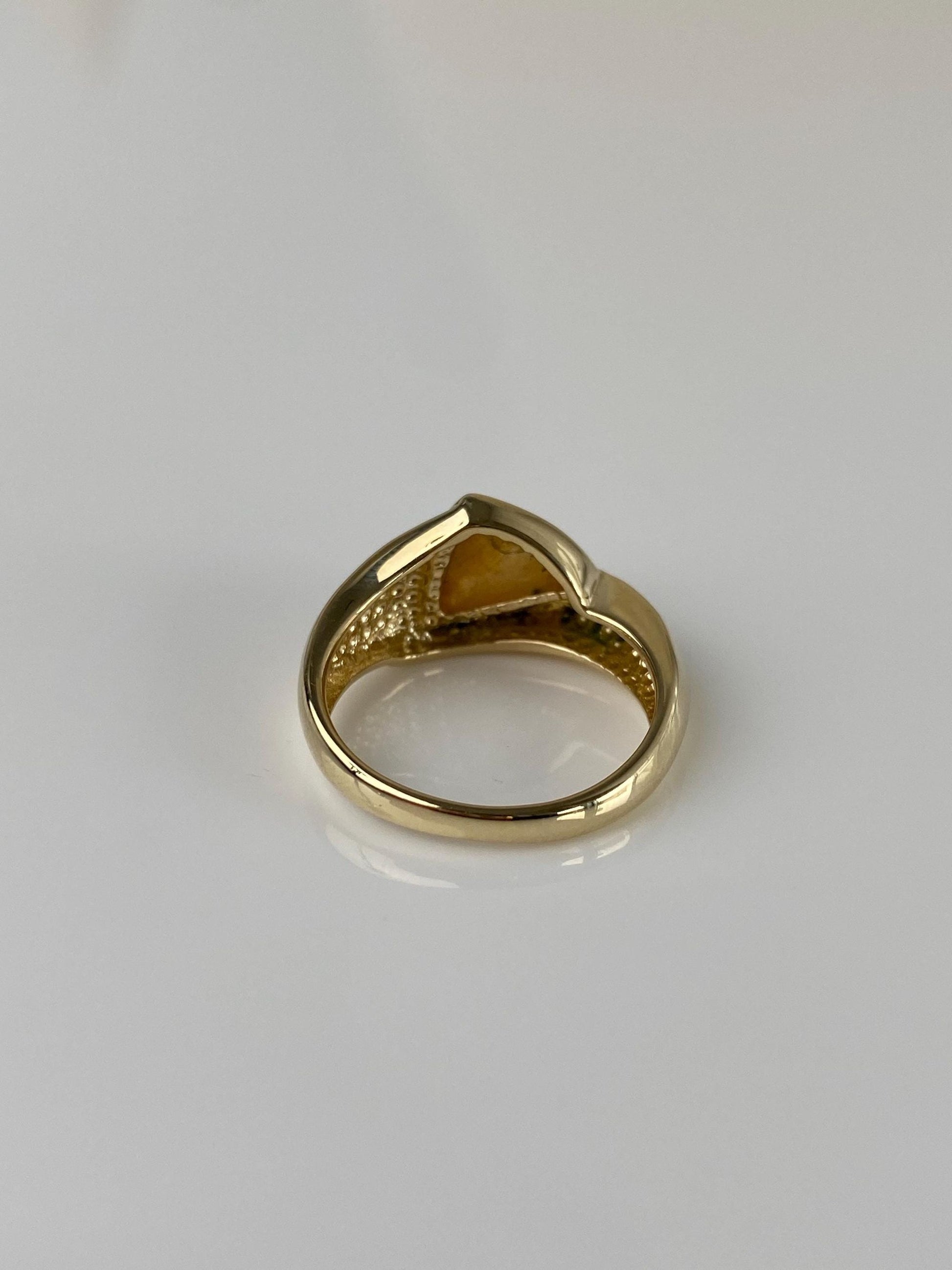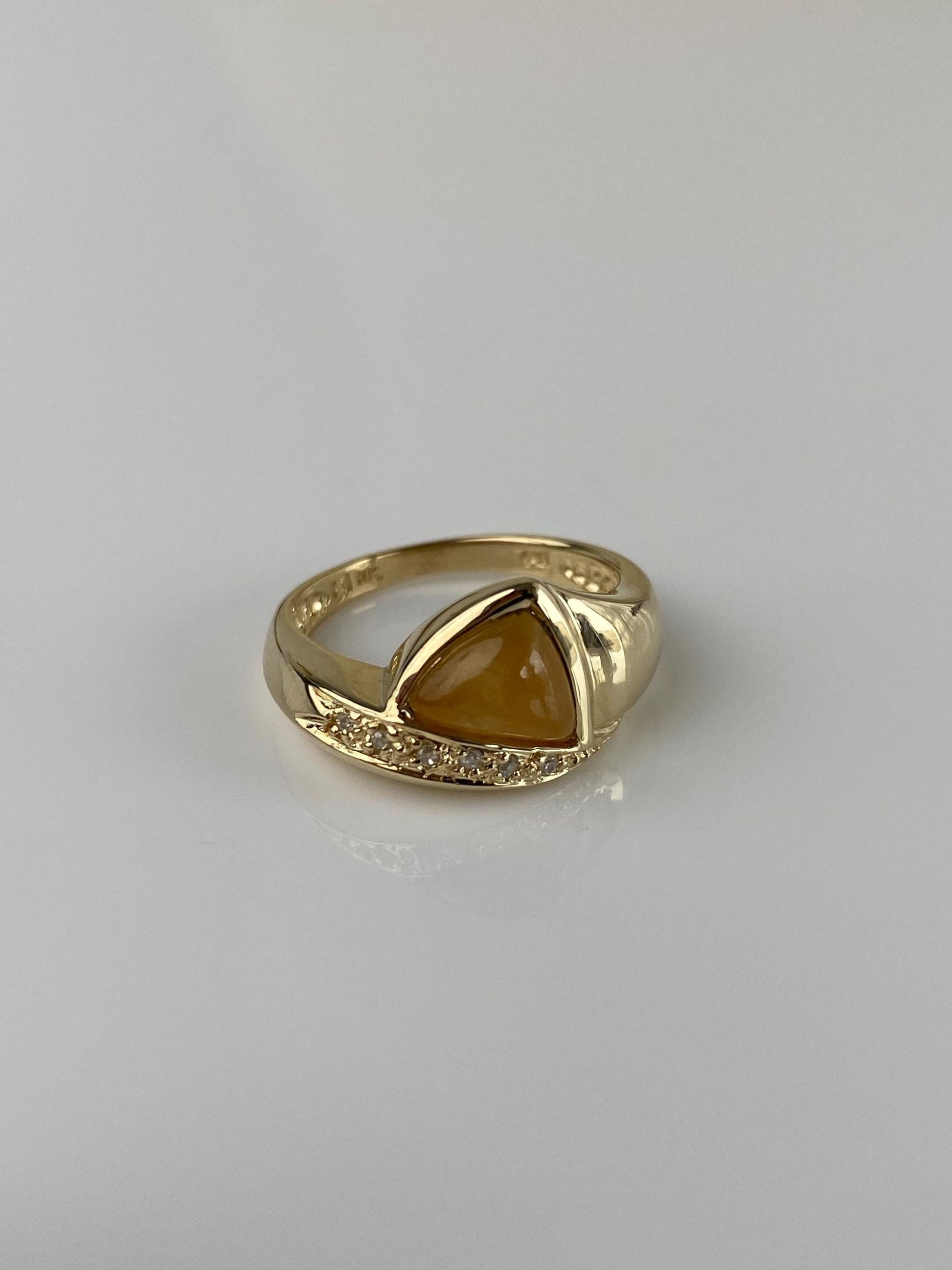 Vintage Solid 14k Yellow Gold Diamond Yellow Jade Ring - Size 5