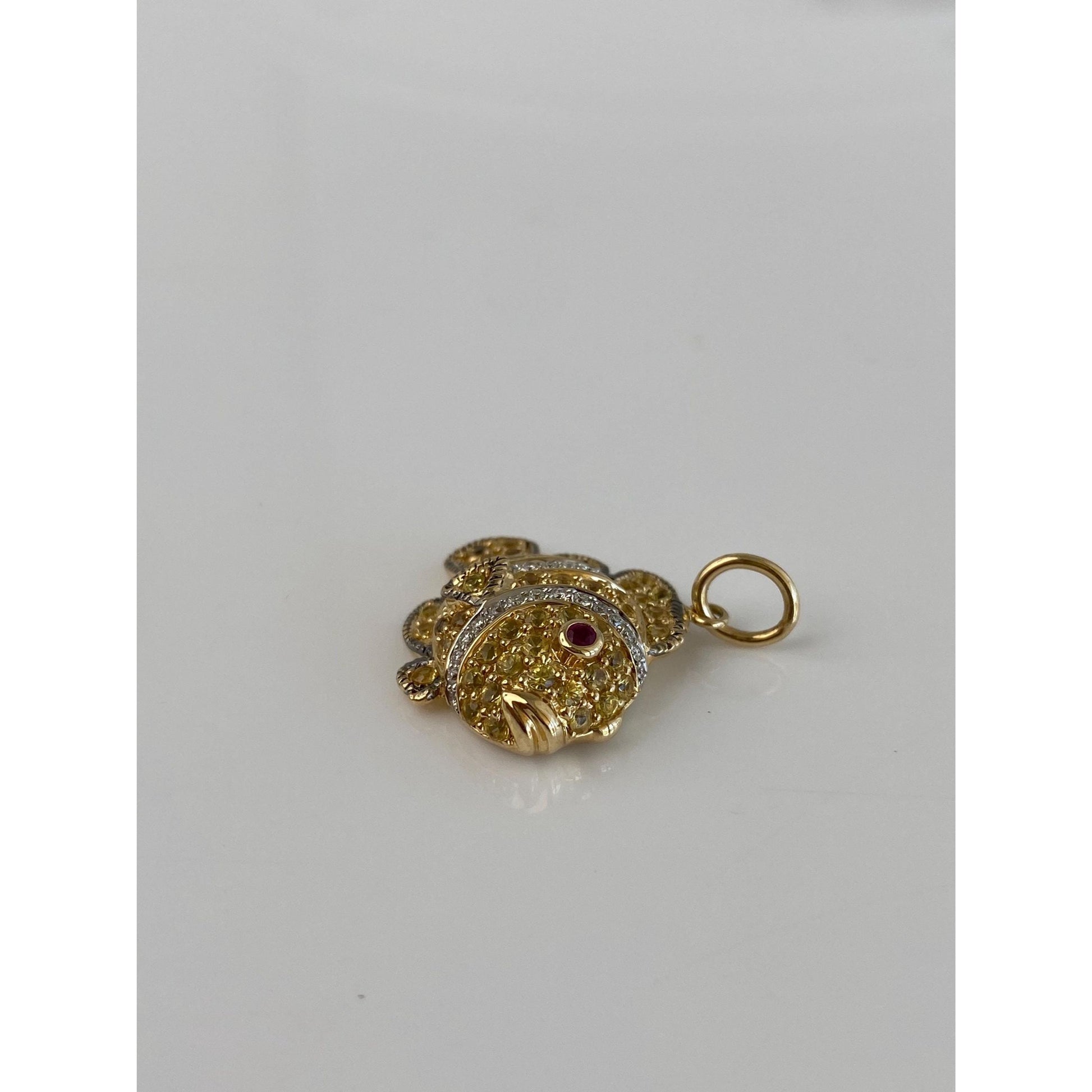 Vintage Solid 14k Yellow Gold Diamond Yellow Sapphire Ruby Fish Charm
