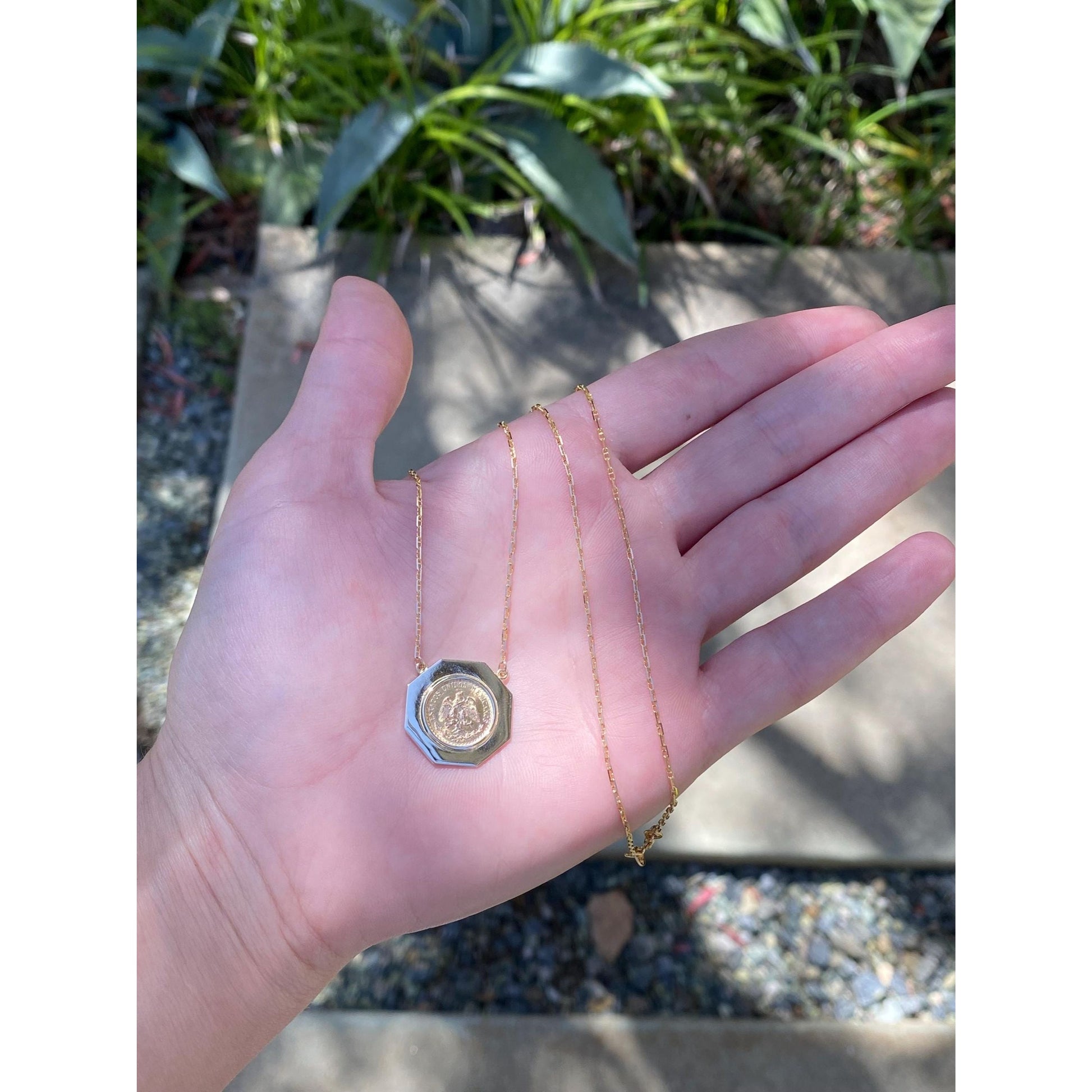 Vintage Solid 14k Yellow Gold Dos Peso Coin Mariner Link Chain Necklace - 20.75 inches
