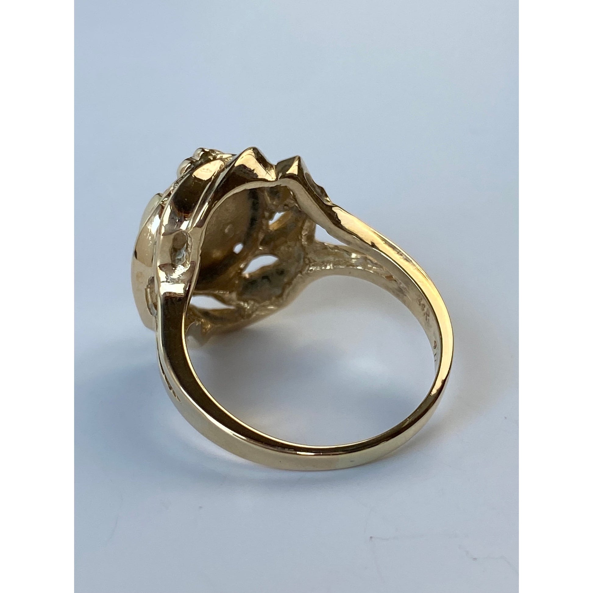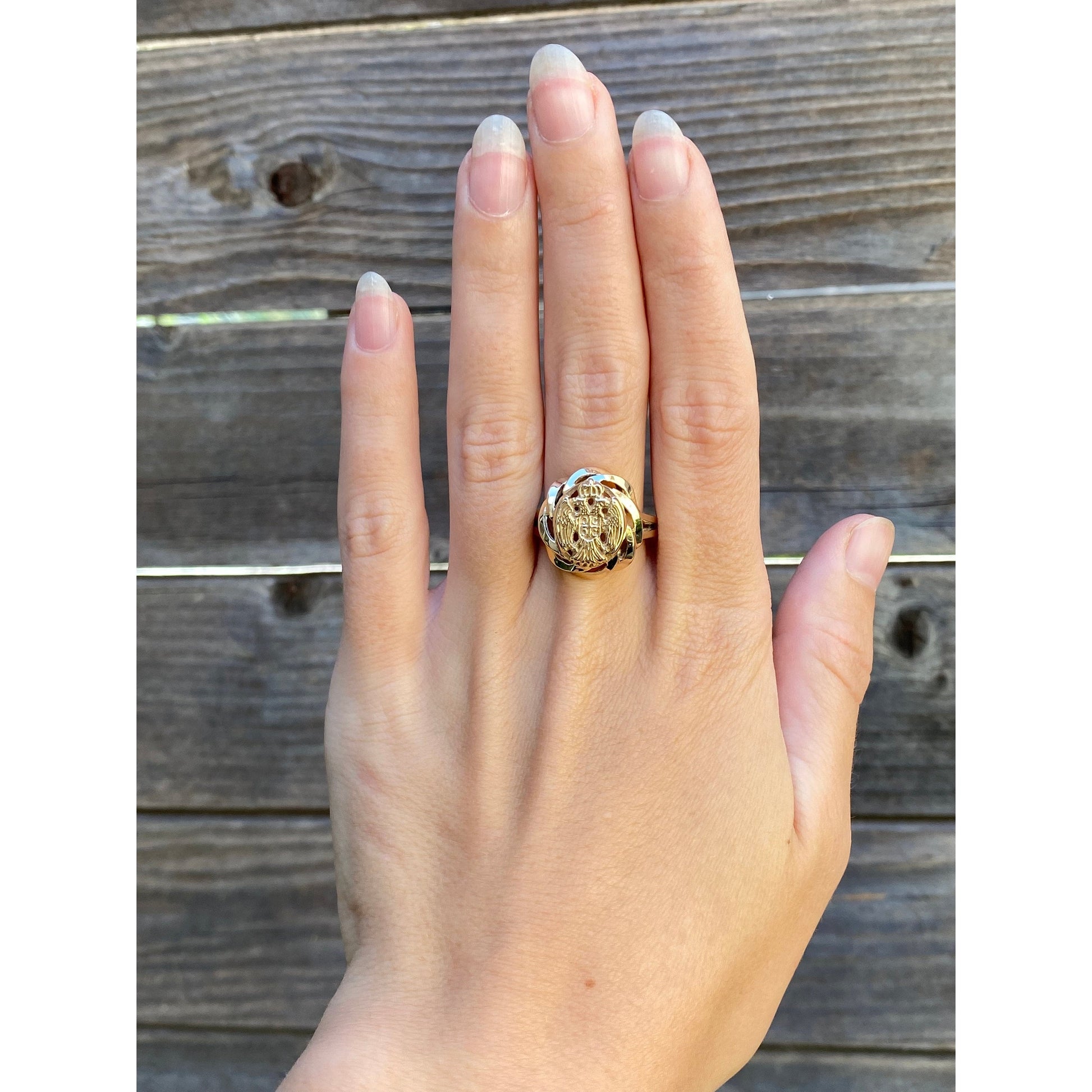 Vintage Solid 14k Yellow Gold Double Headed Eagle Crown Ring - Size 8.5