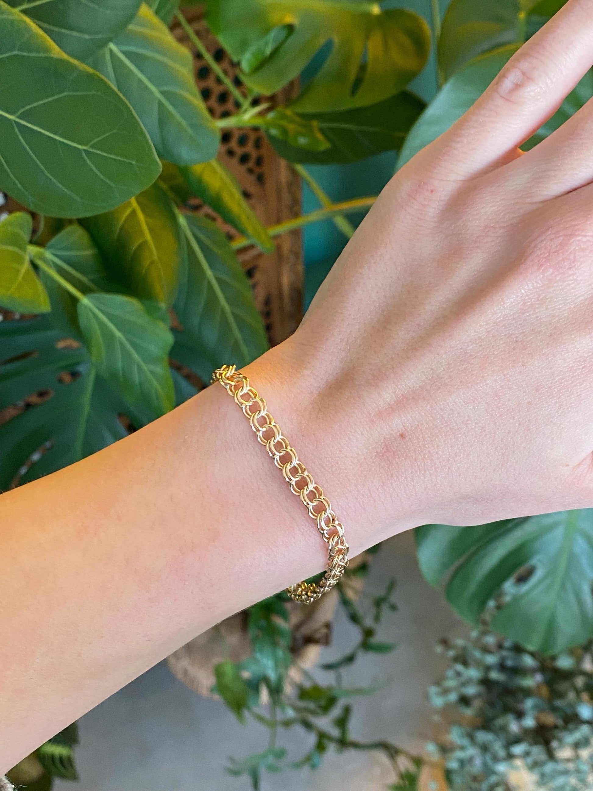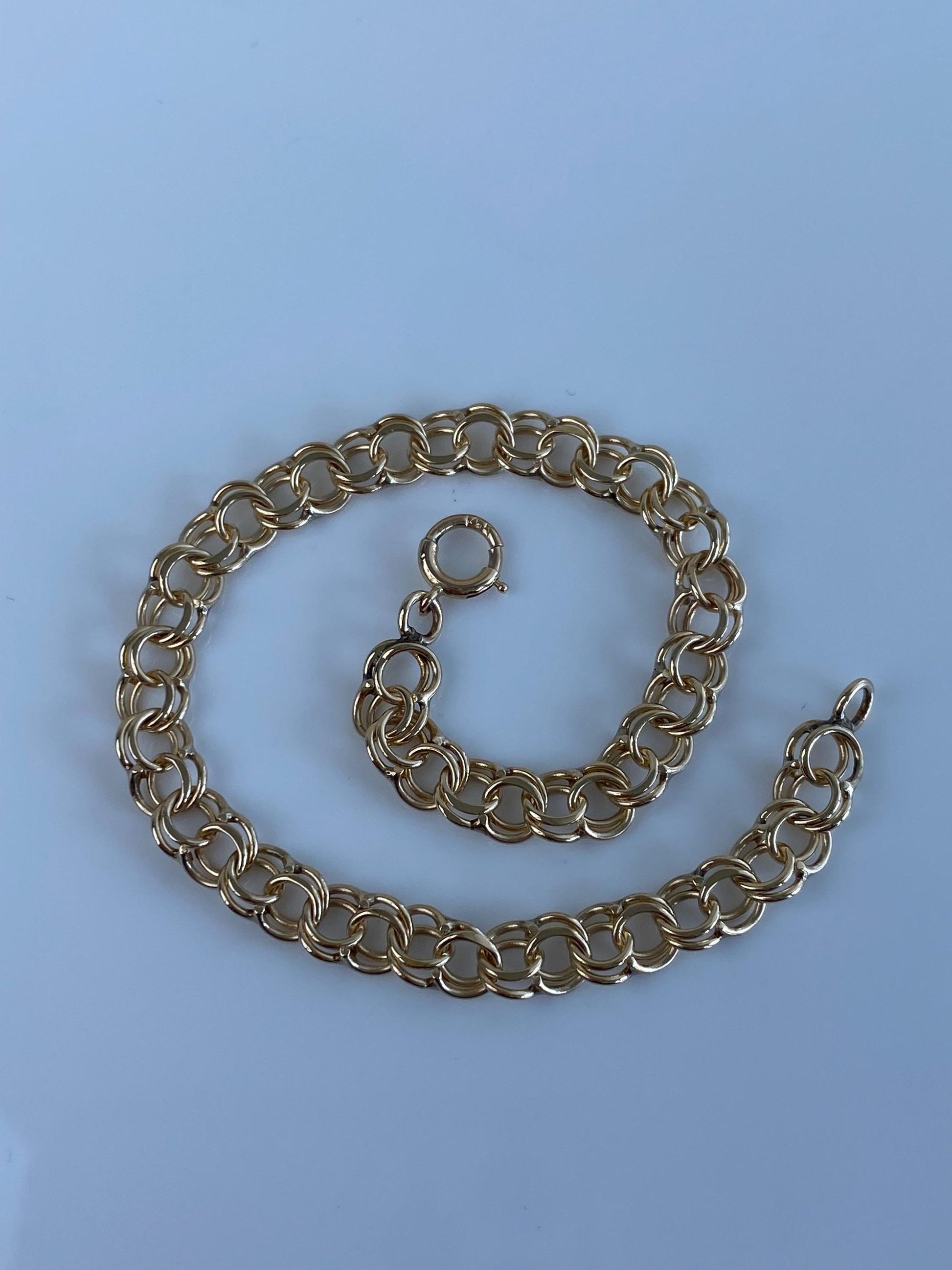 Vintage Solid 14k Yellow Gold Double Link Charm Bracelet - 7.25 inches
