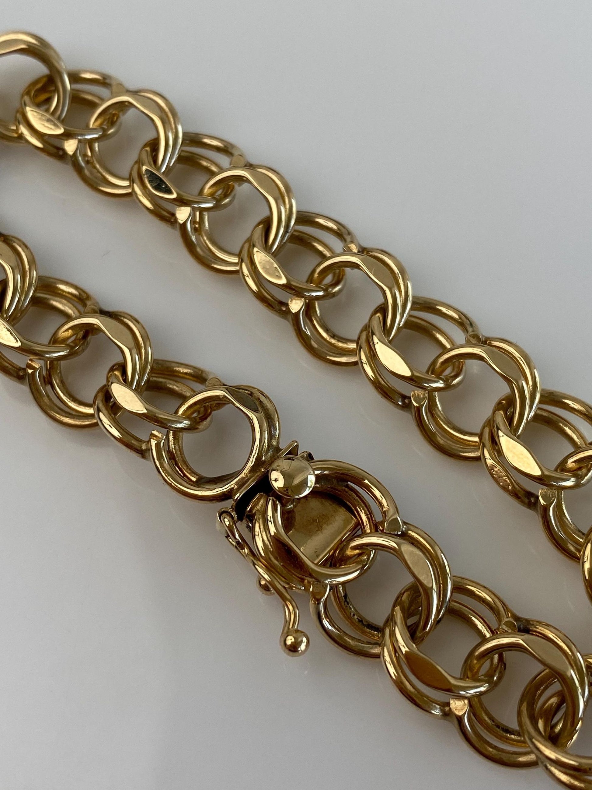 Vintage Solid 14k Yellow Gold Double Link Charm Bracelet - 7.5 inches