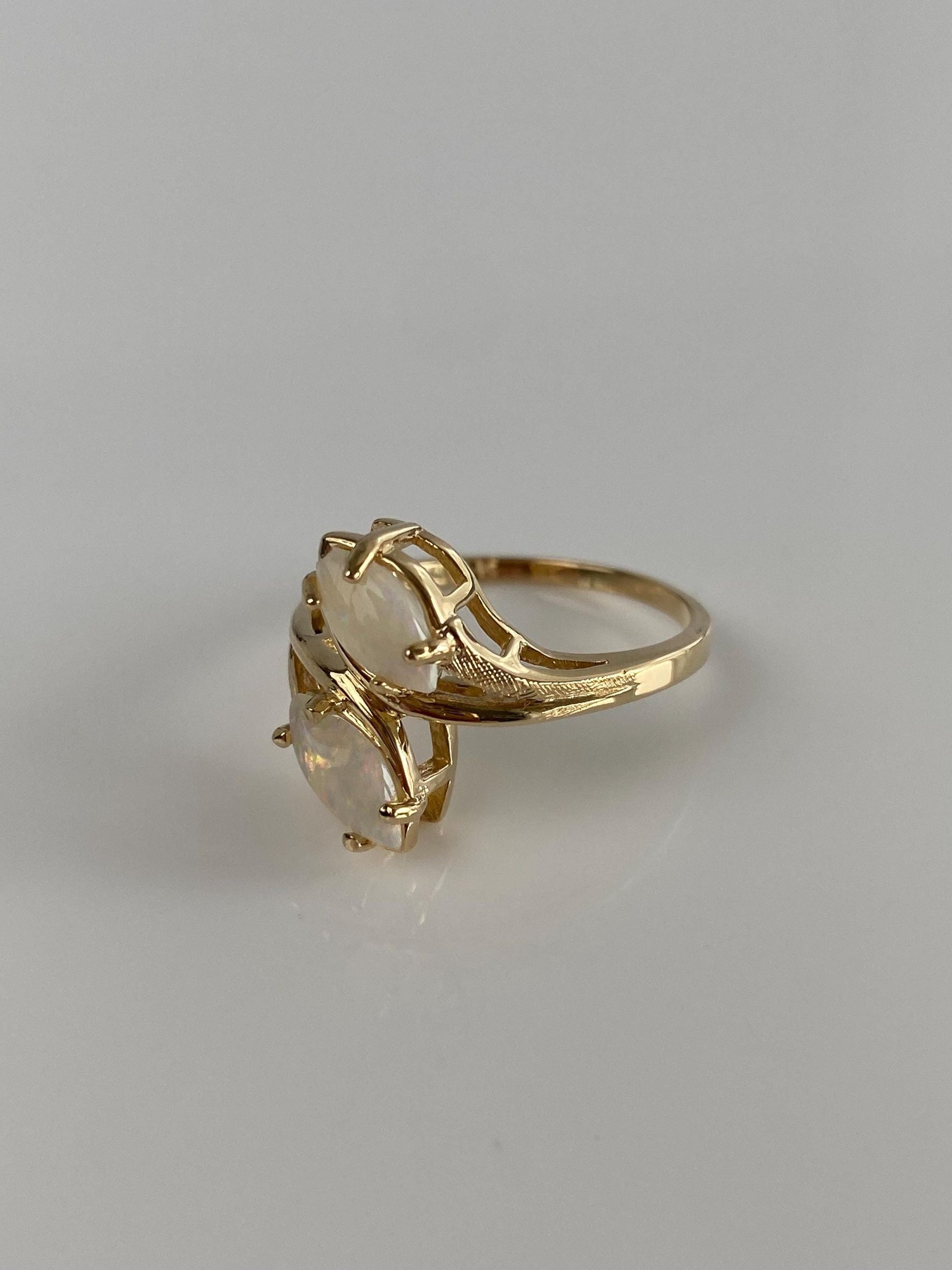 Vintage Solid 14k Yellow Gold Double Opal Marquis Ring - Size 6.75