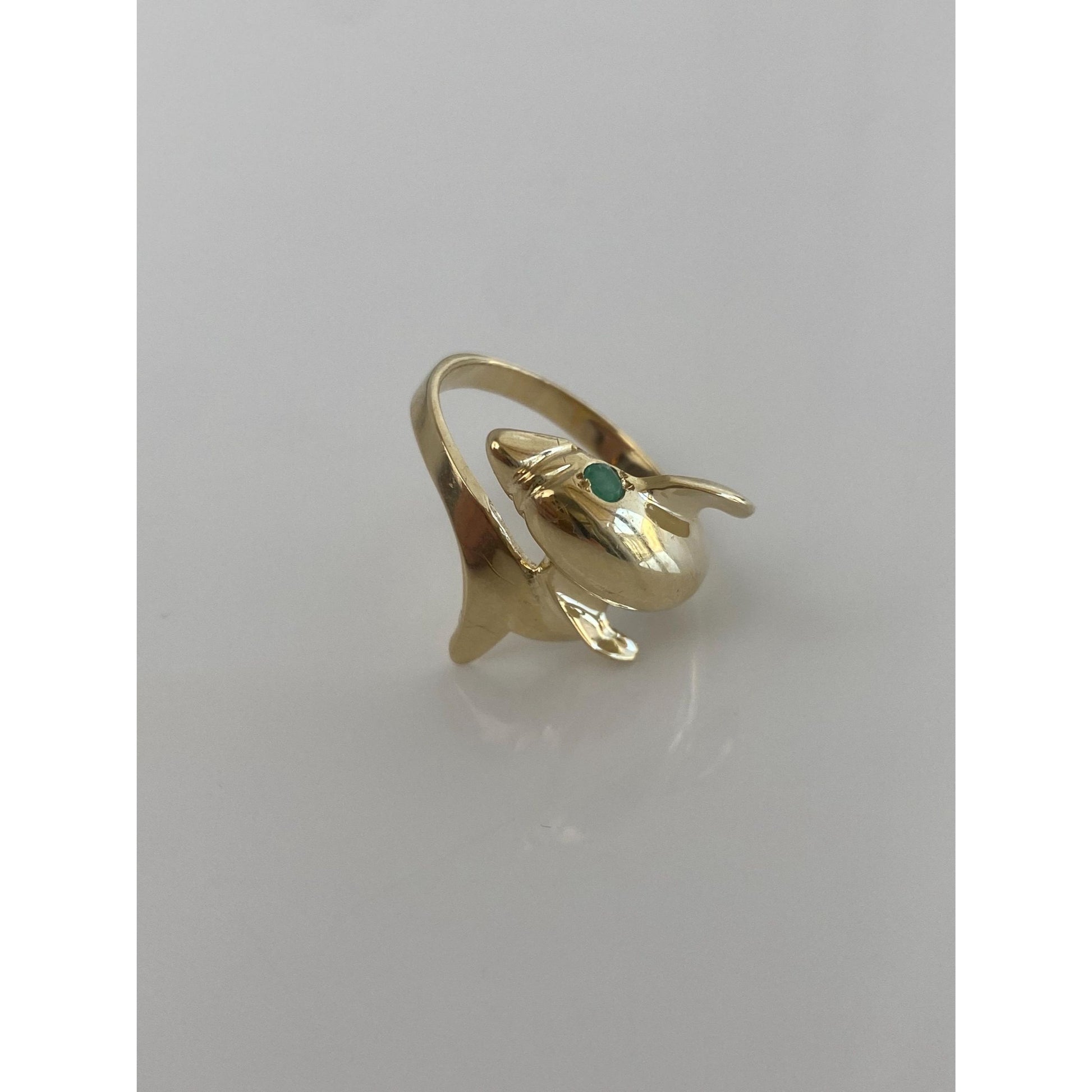 Vintage Solid 14k Yellow Gold Emerald Dolphin Ring - Size 7.25