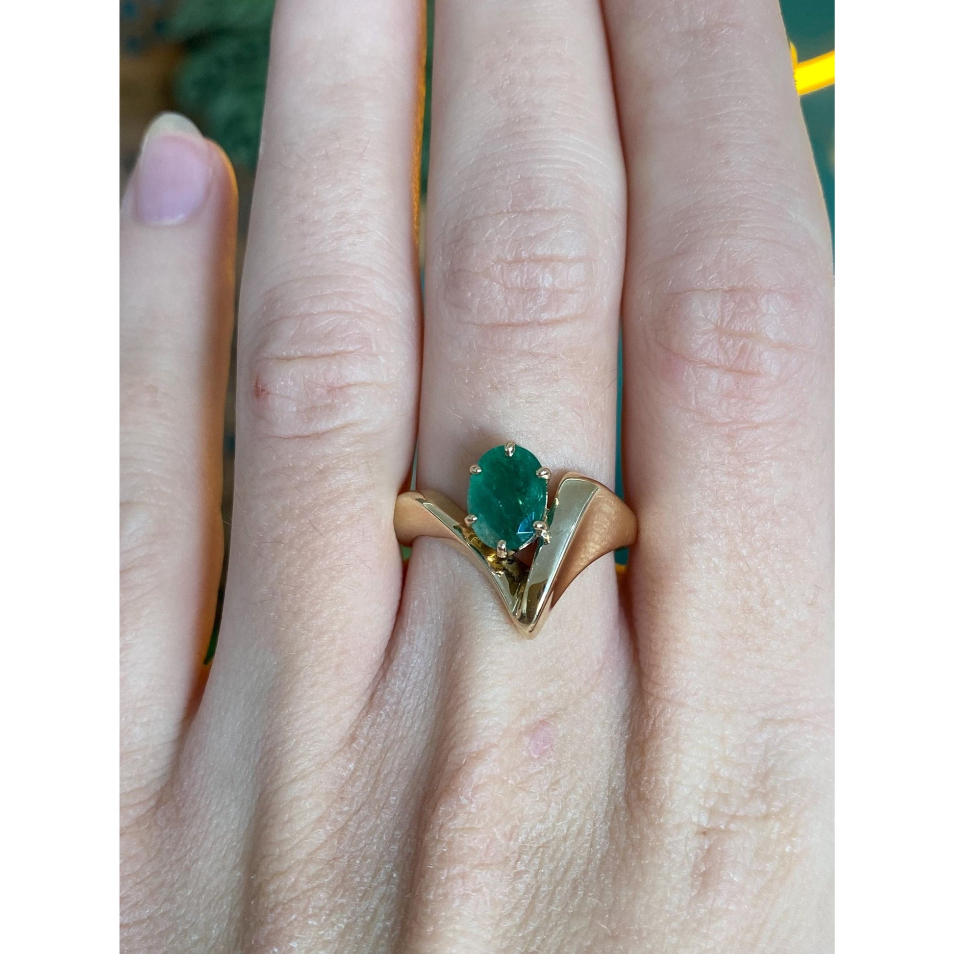 Vintage Solid 14k Yellow Gold Emerald Ring - Size 6.75