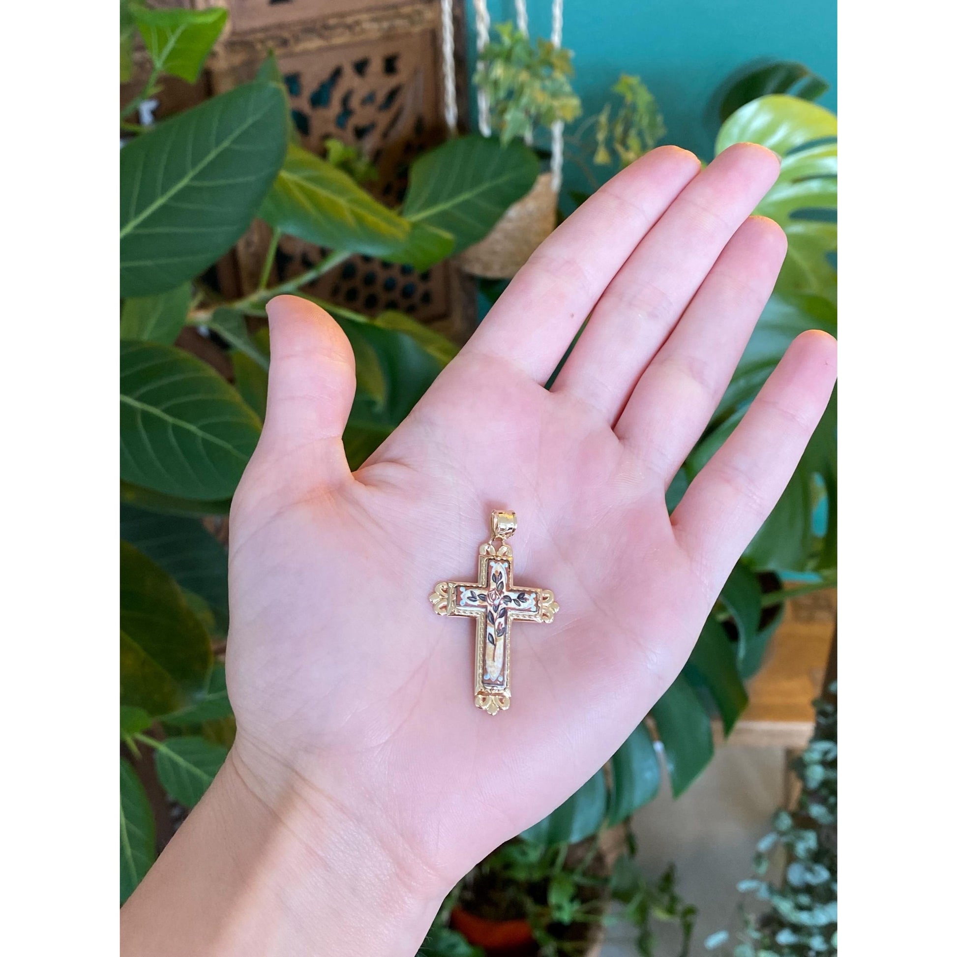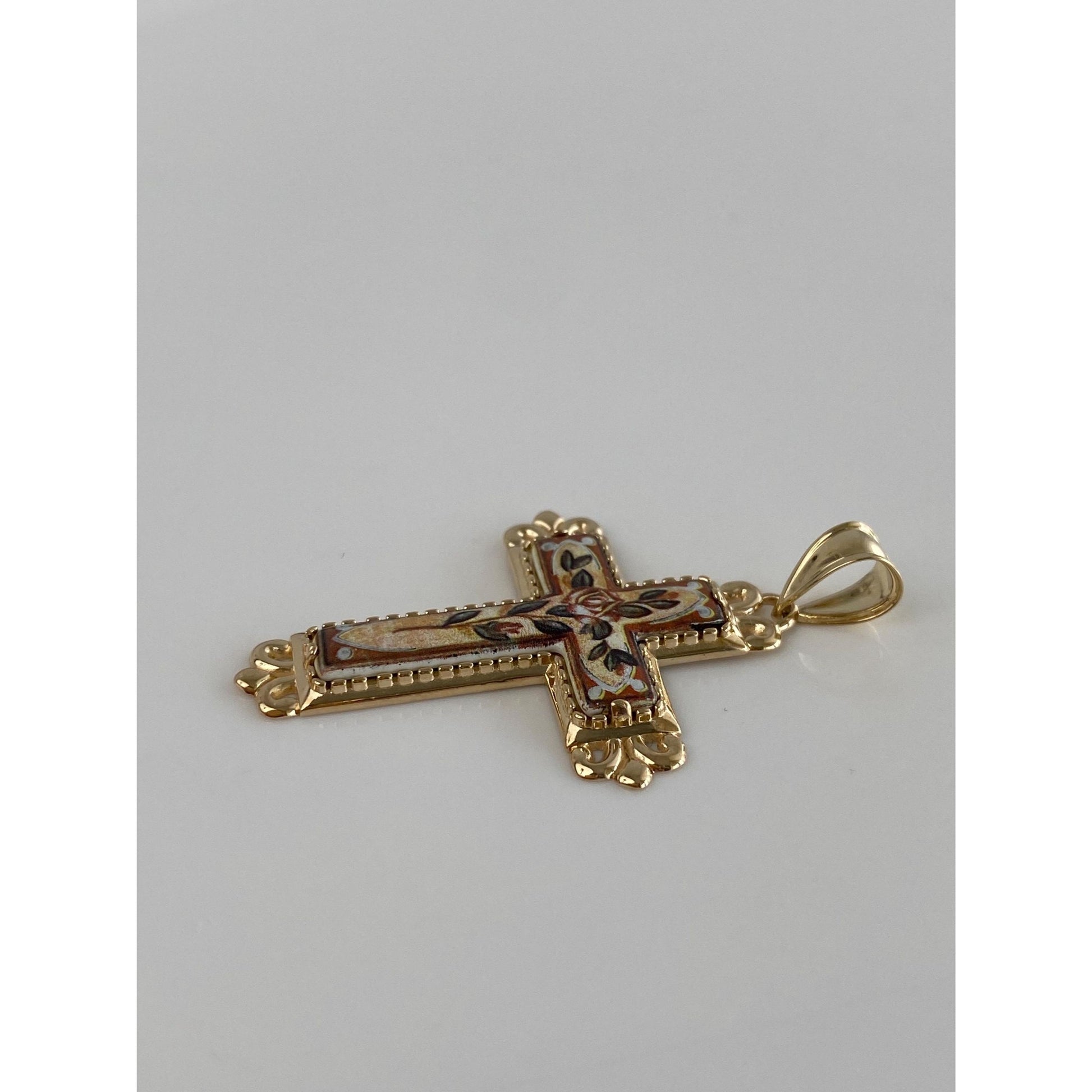 Vintage Solid 14k Yellow Gold Enamel Cross Charm