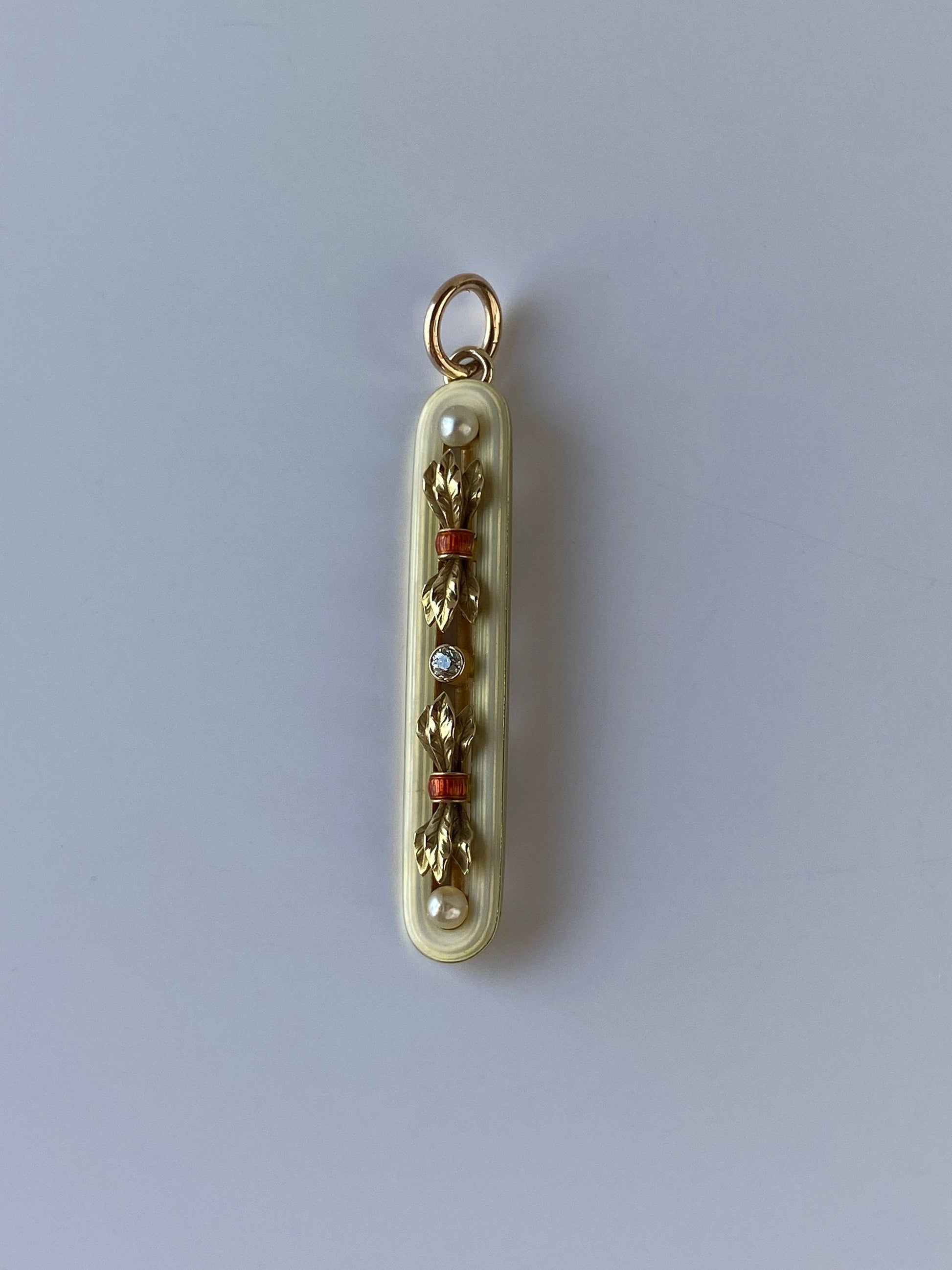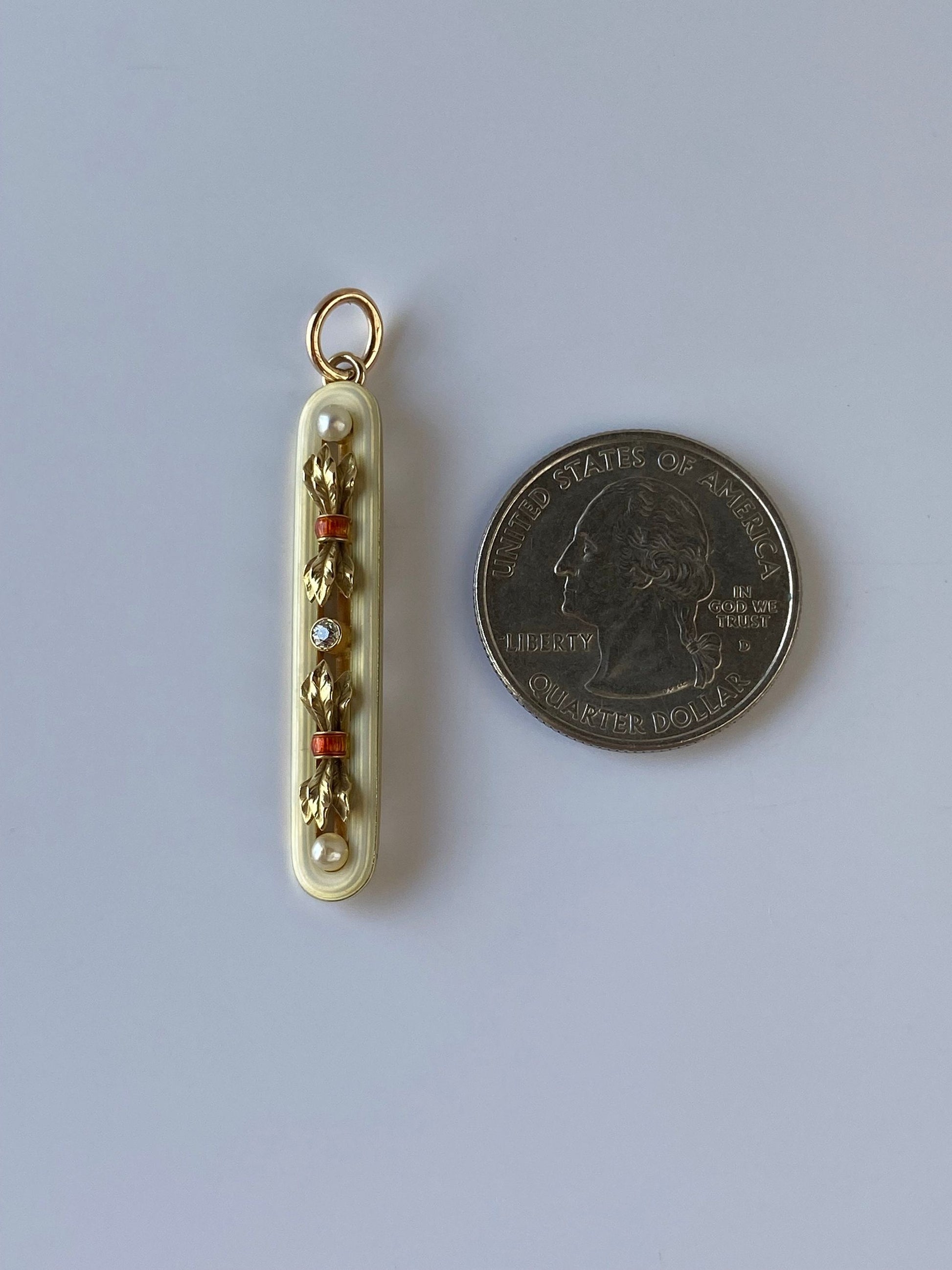 Vintage Solid 14k Yellow Gold Enamel Diamond & Pearl Pin Conversion Charm