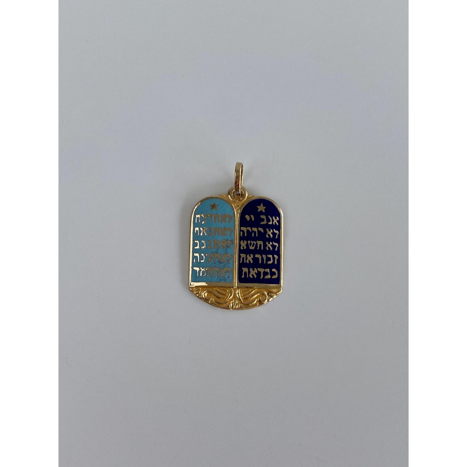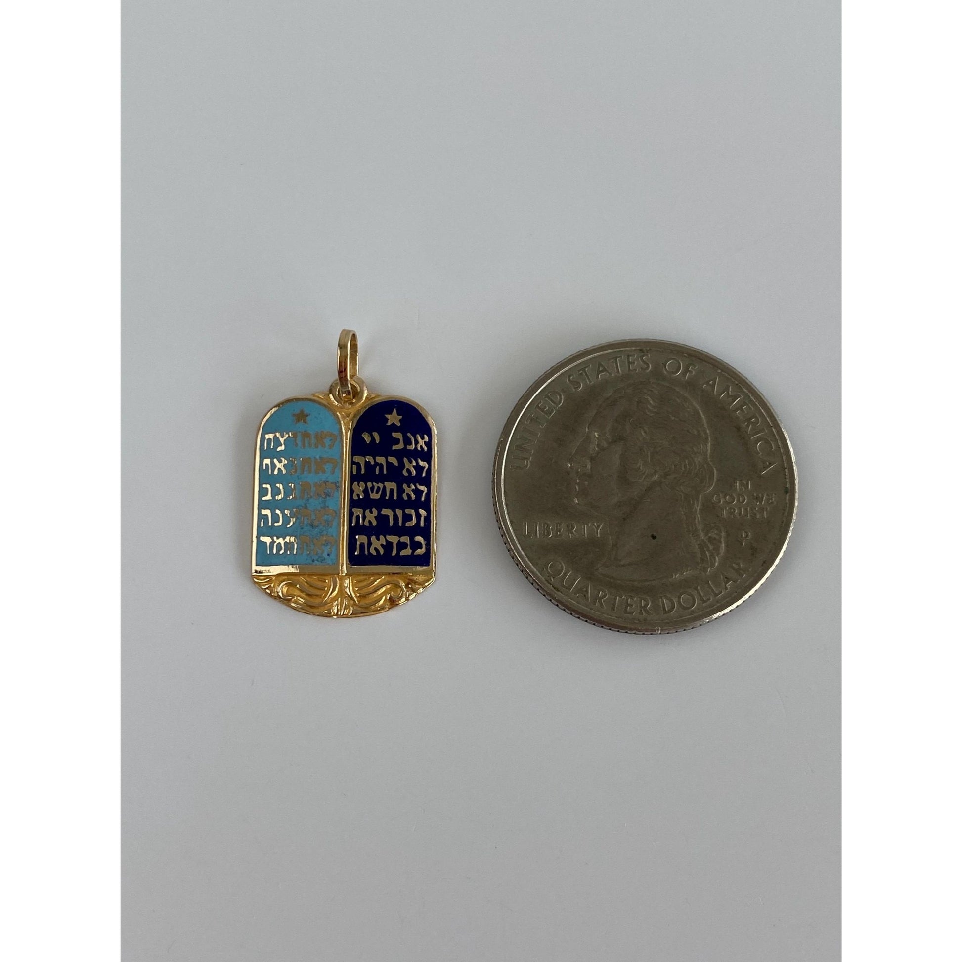 Vintage Solid 14k Yellow Gold Enamel Hebrew 10 Commandments Charm