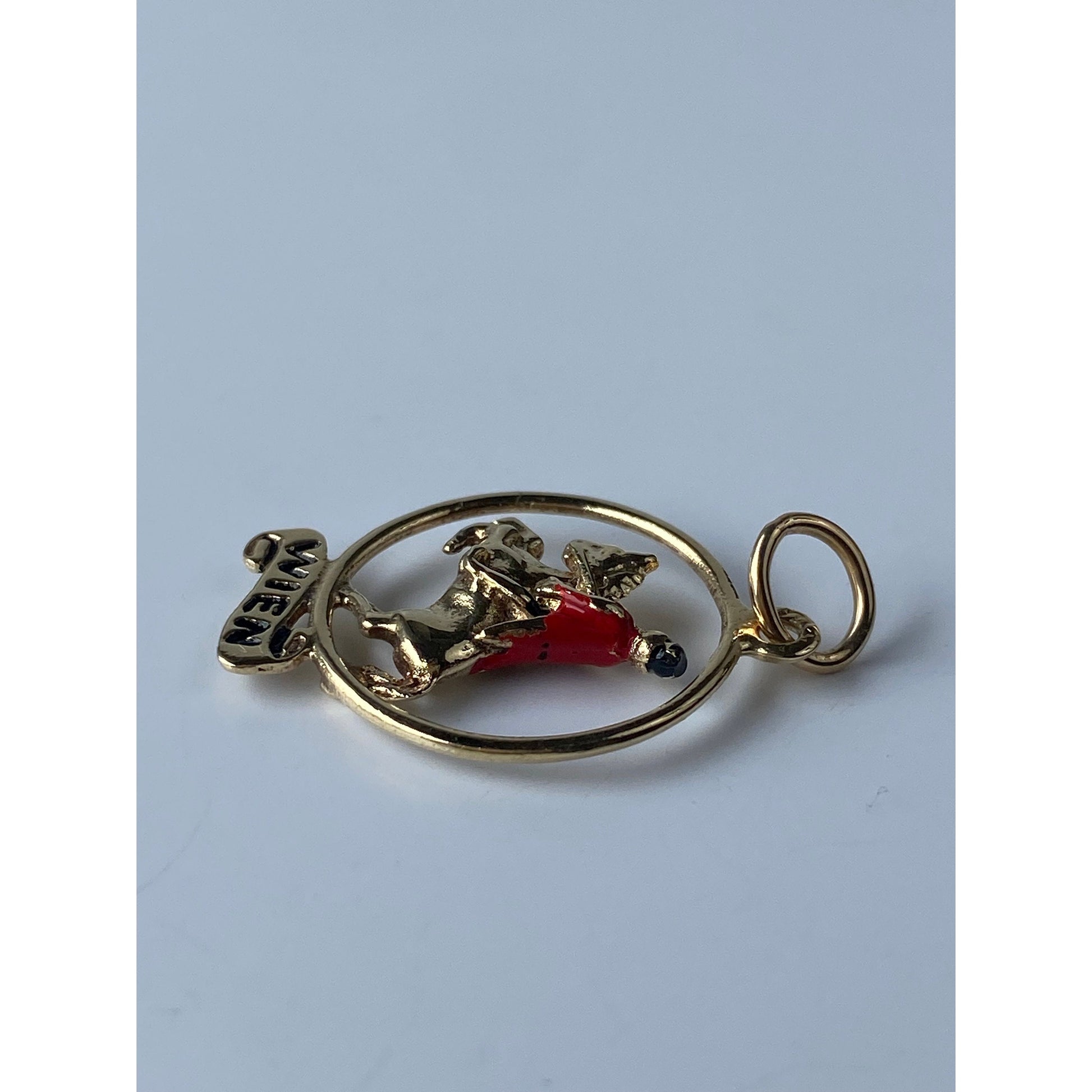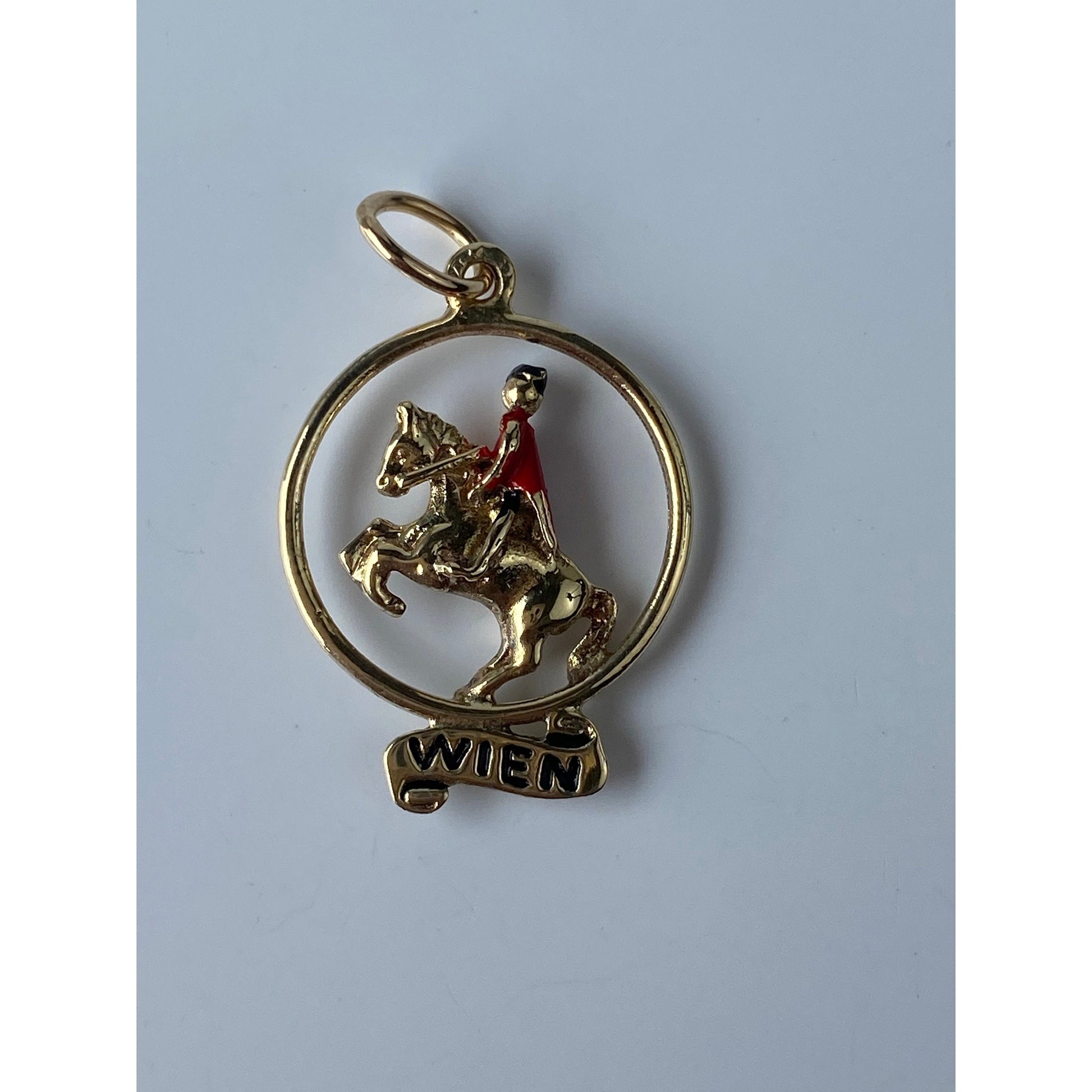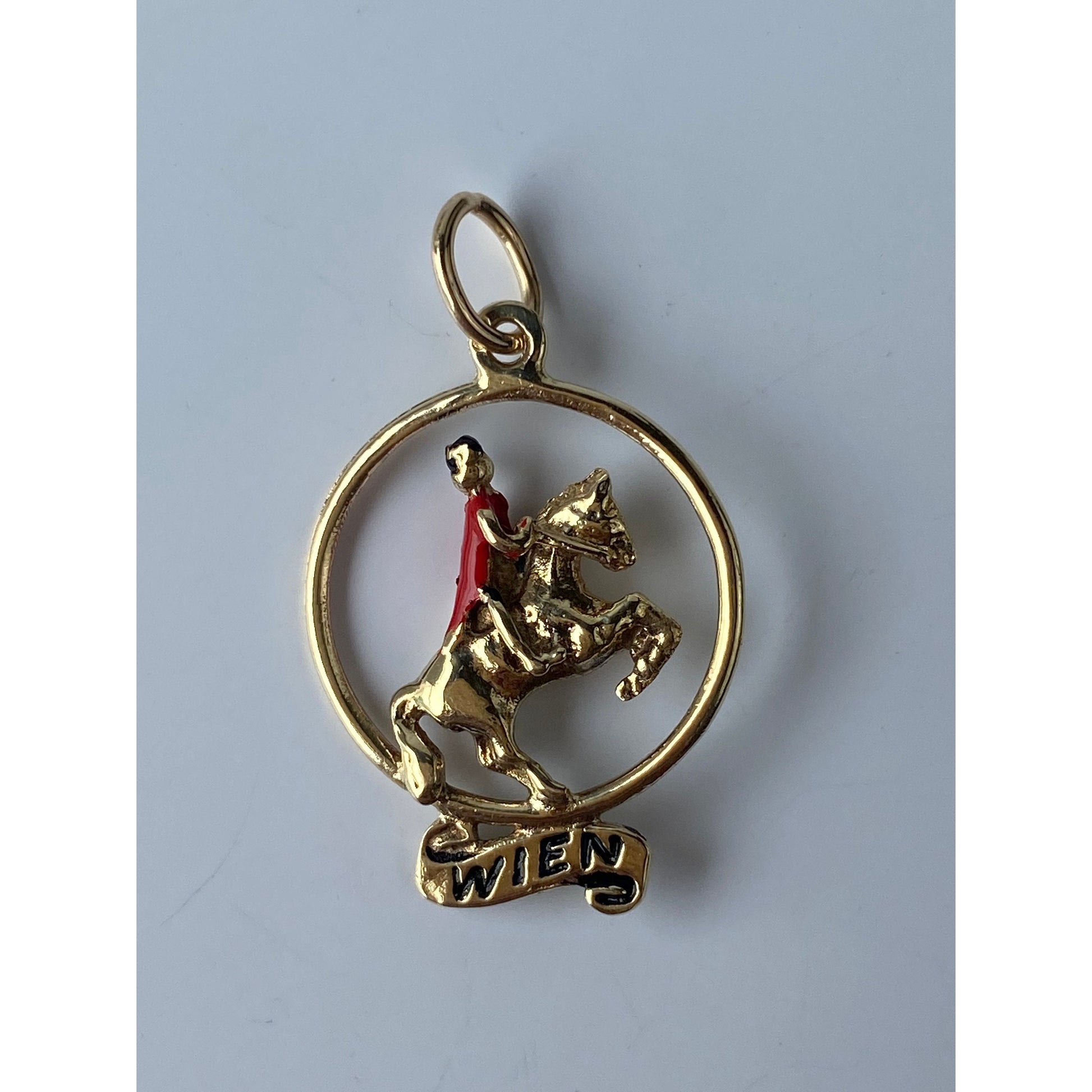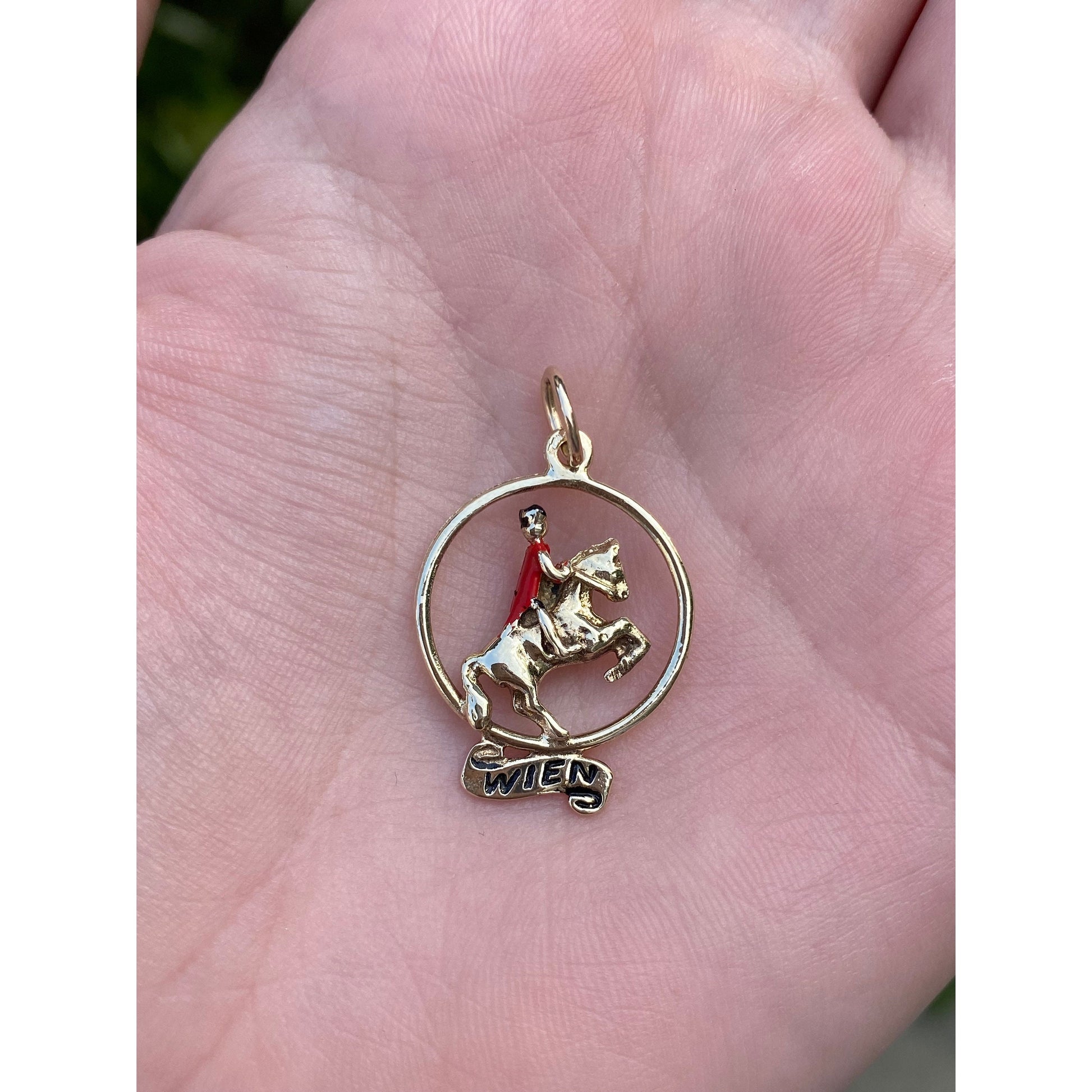 Vintage Solid 14k Yellow Gold Enamel Jockey Horse 'WIEN' Charm