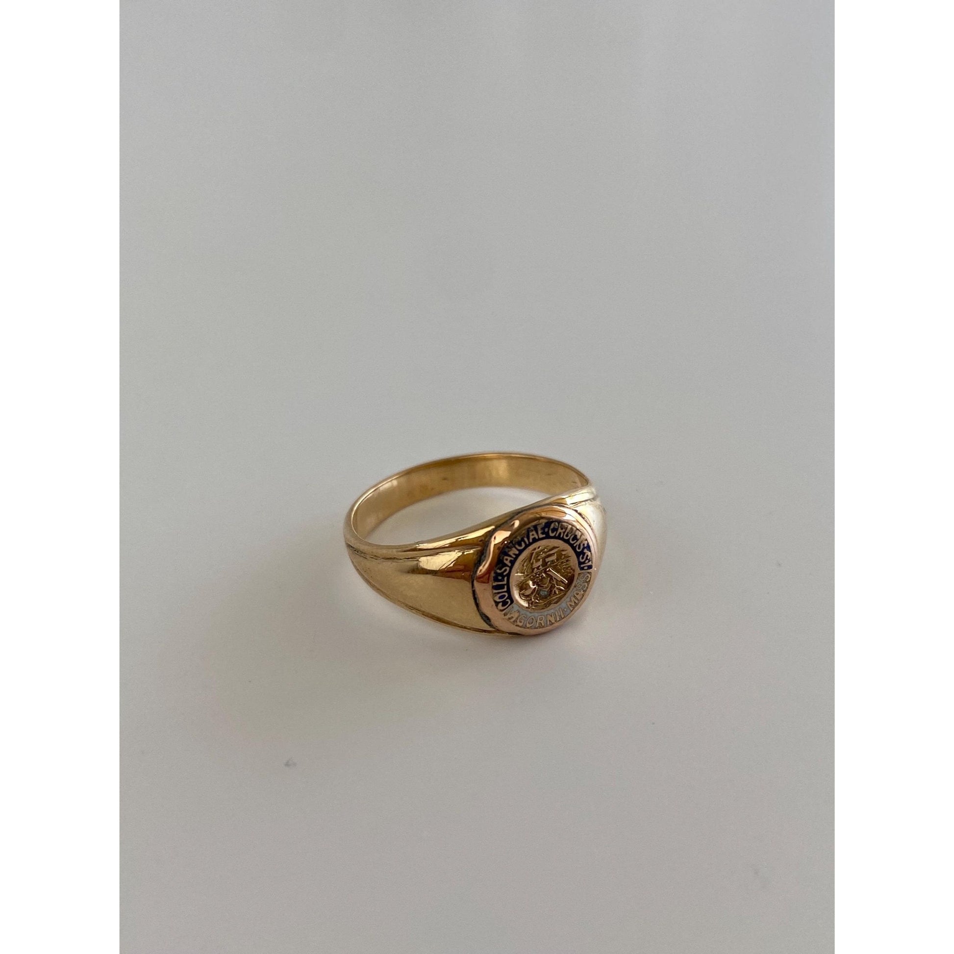 Vintage Solid 14k Yellow Gold Enamel Signet Ring - Size 6