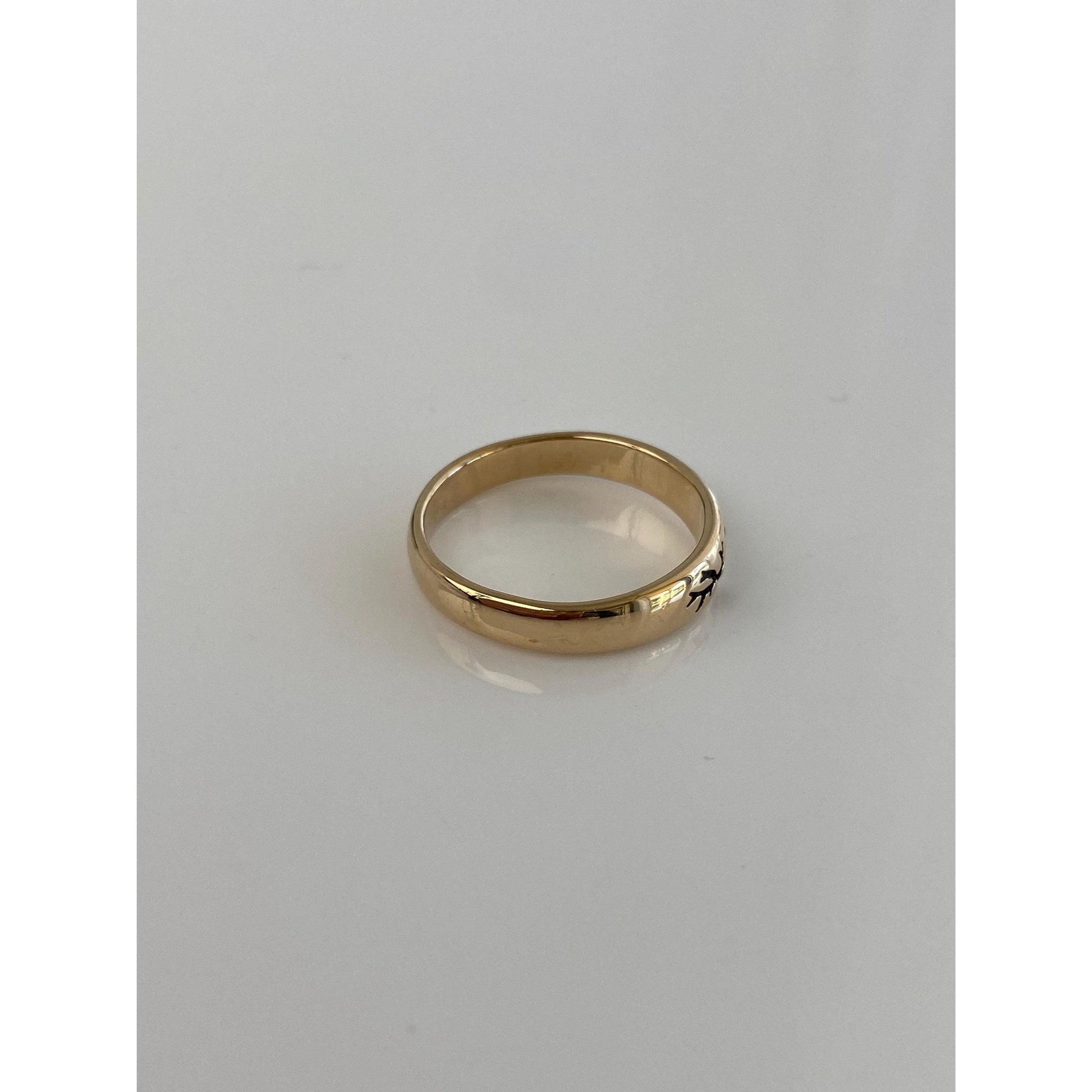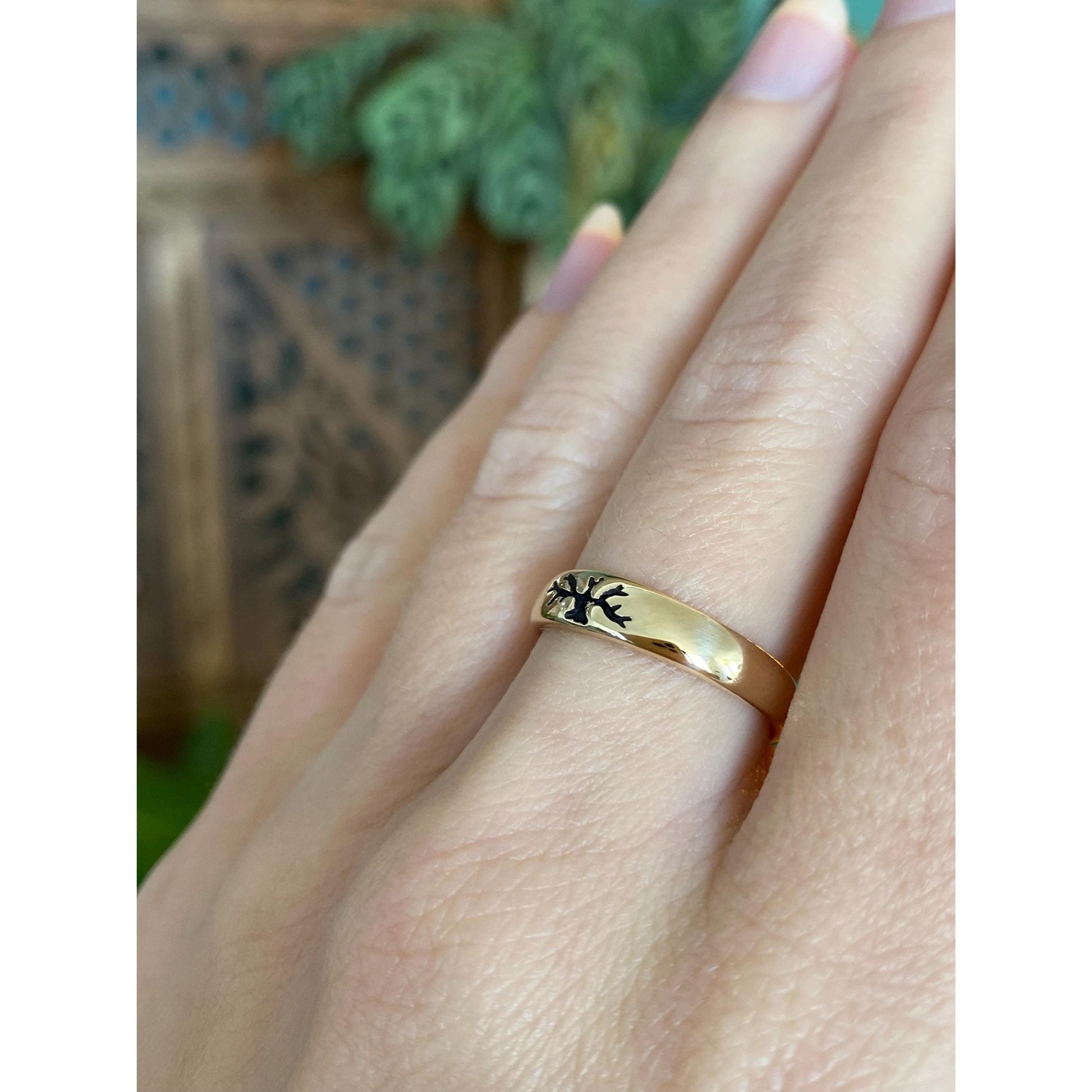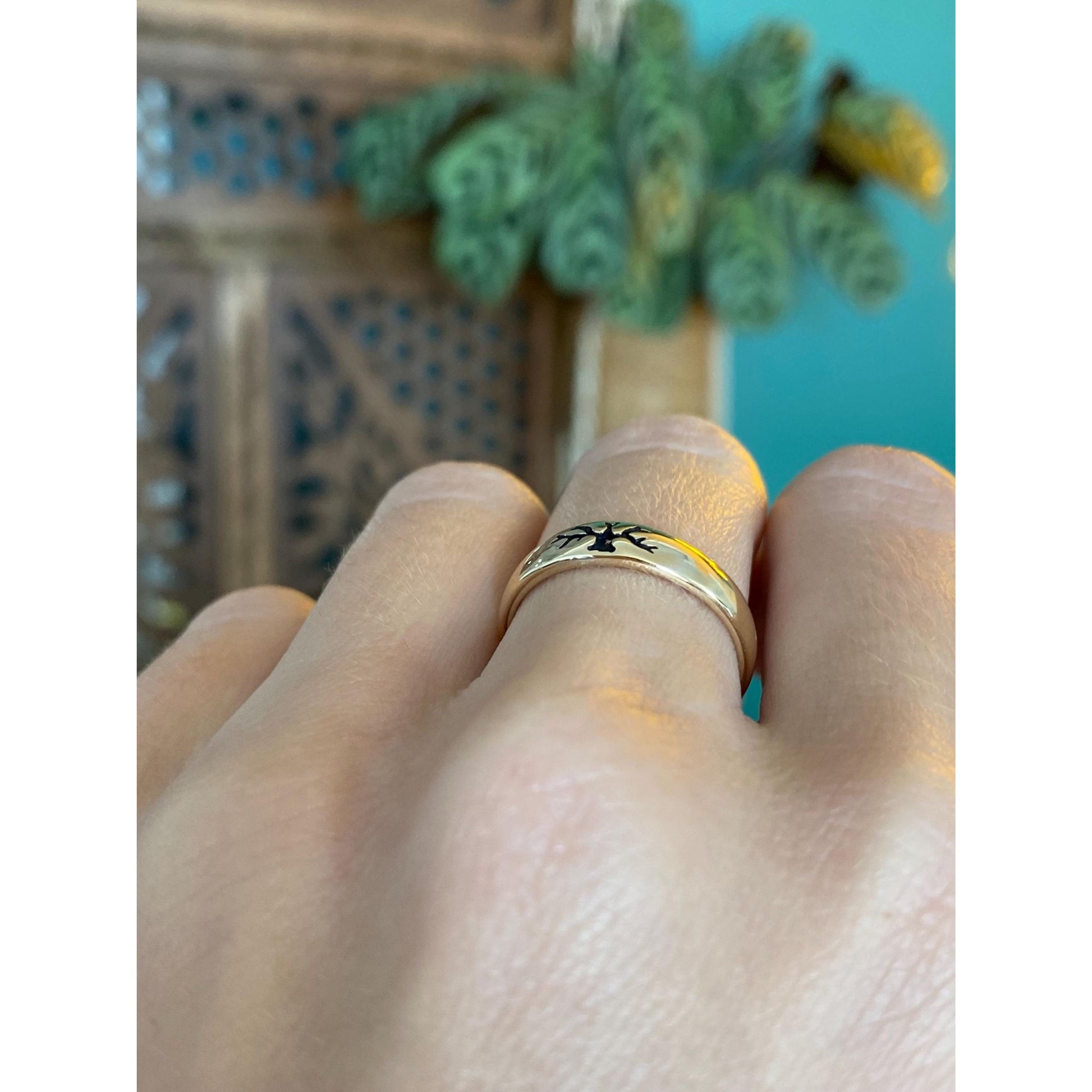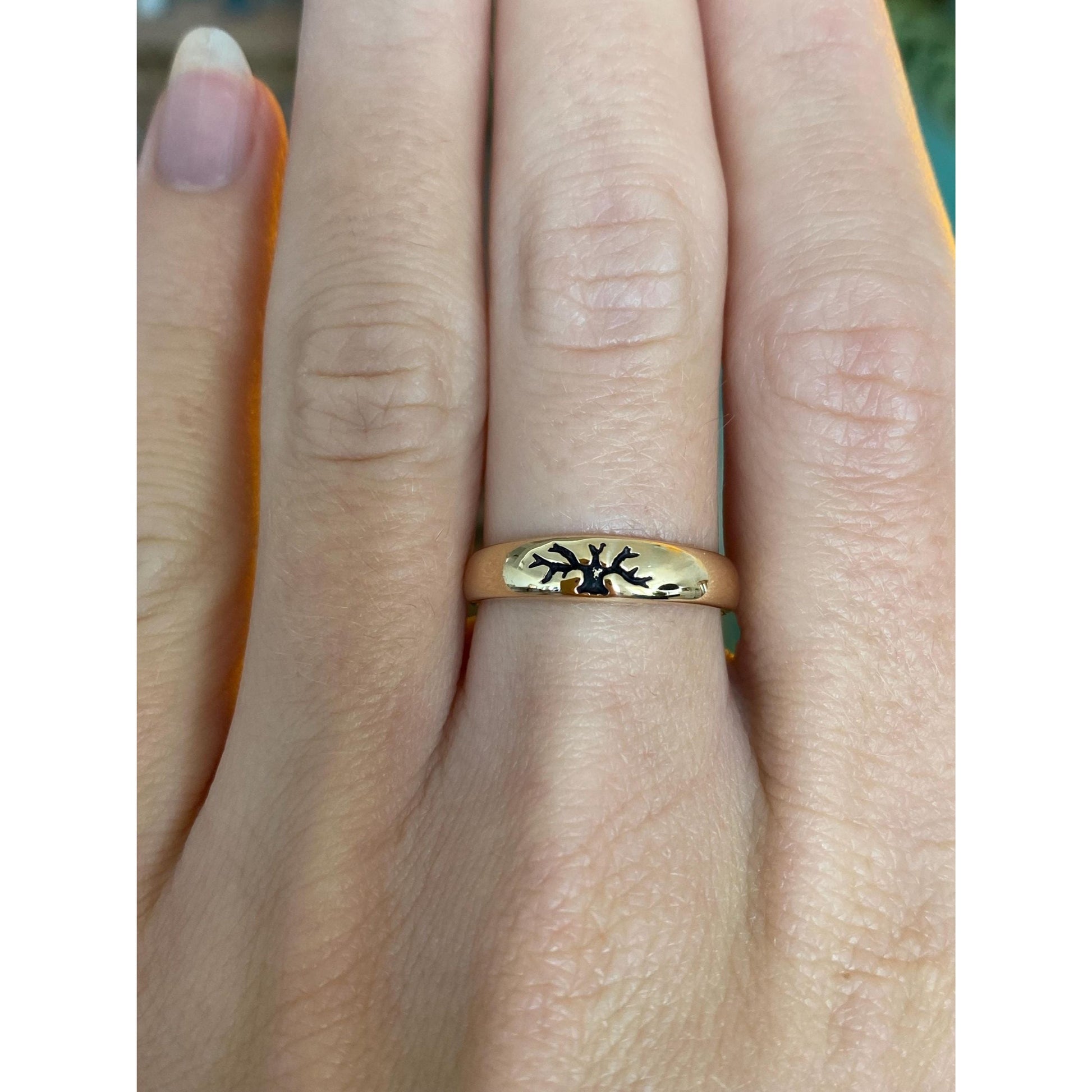 Vintage Solid 14k Yellow Gold Enamel Tree of Life Ring Band - Size 6.75