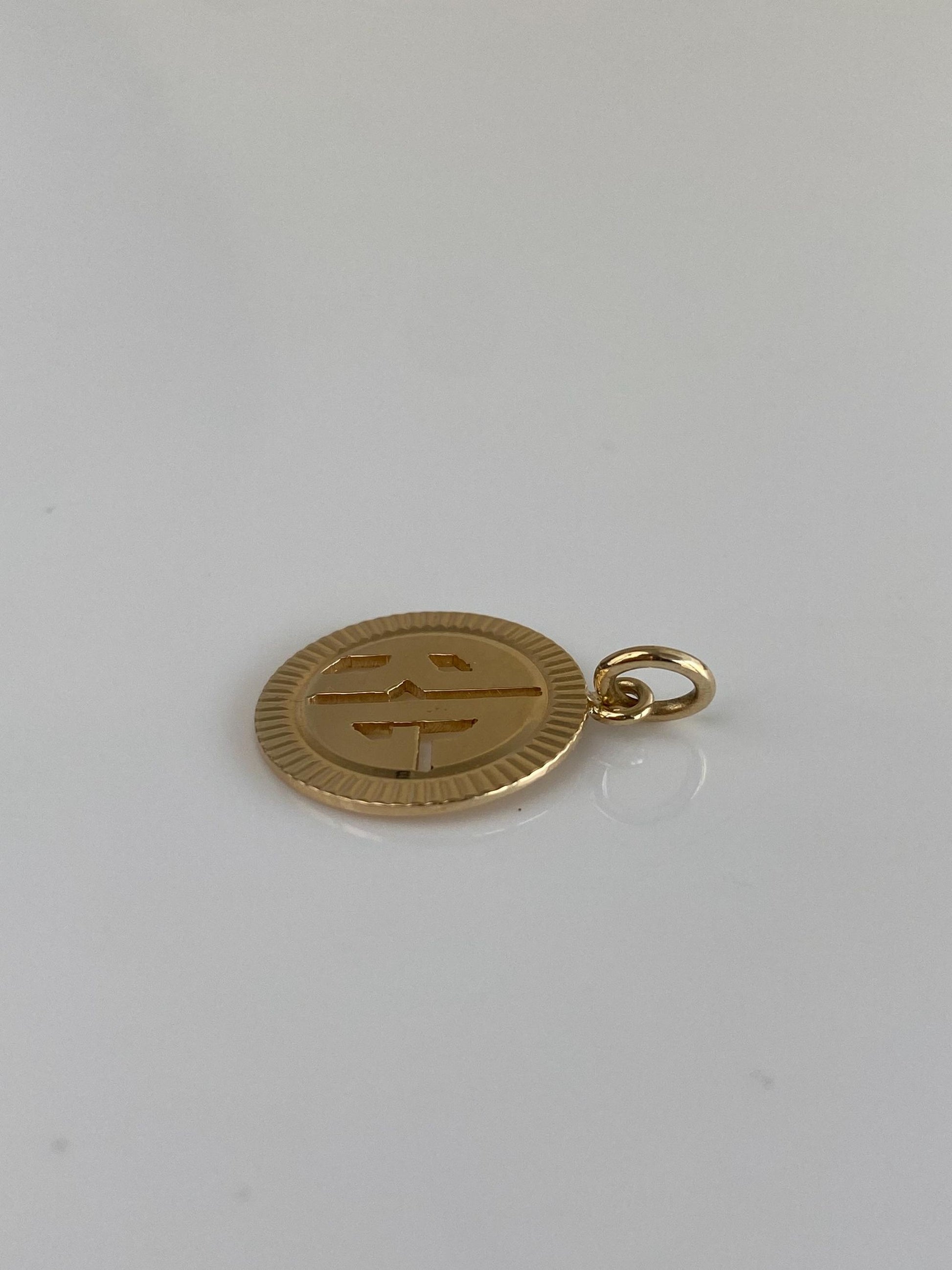 Vintage Solid 14k Yellow Gold Engine Turned RG Charm