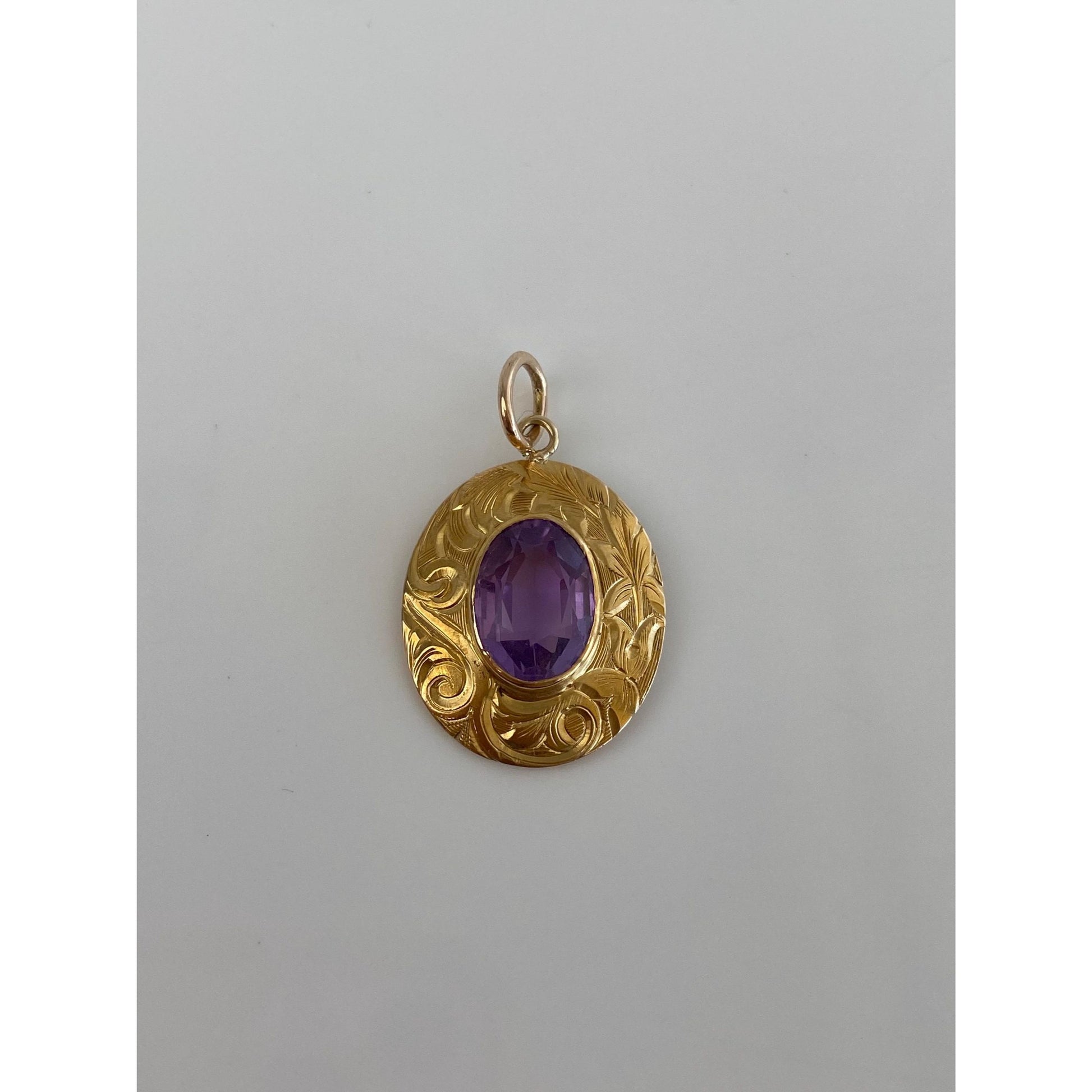 Vintage Solid 14k Yellow Gold Engraved Amethyst Pin Conversion Charm