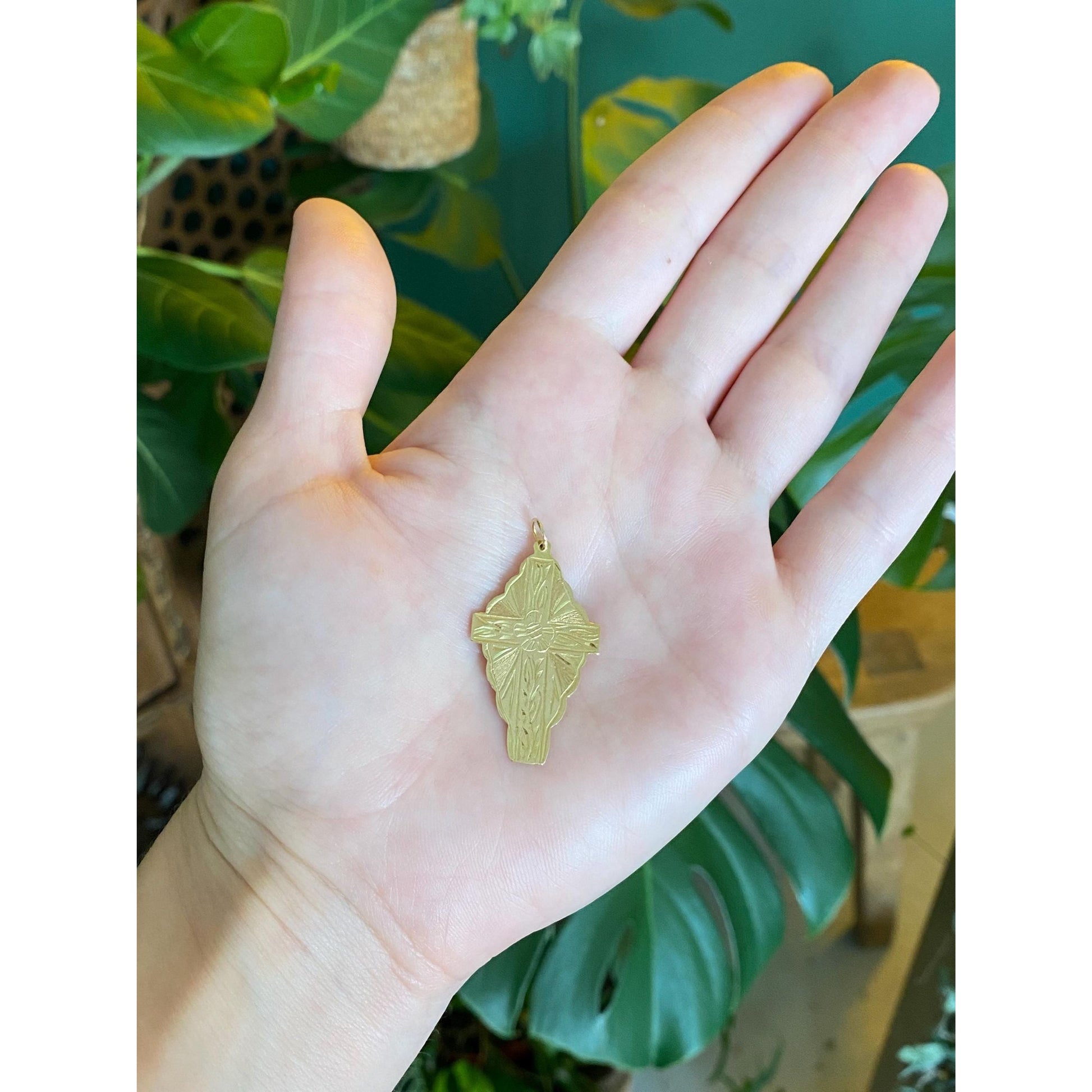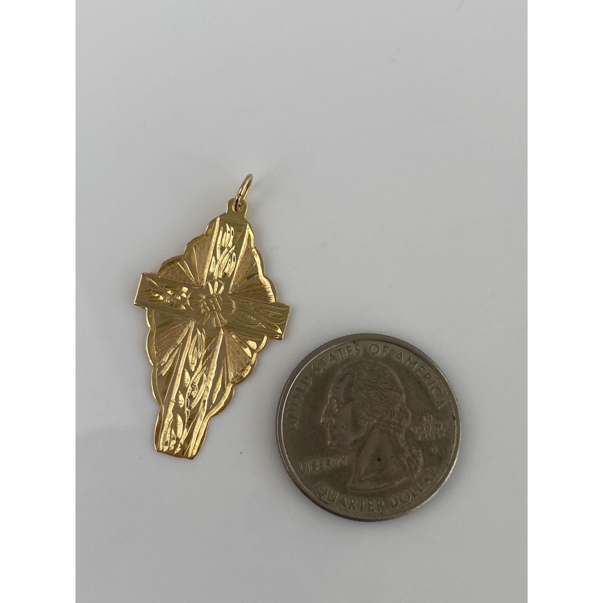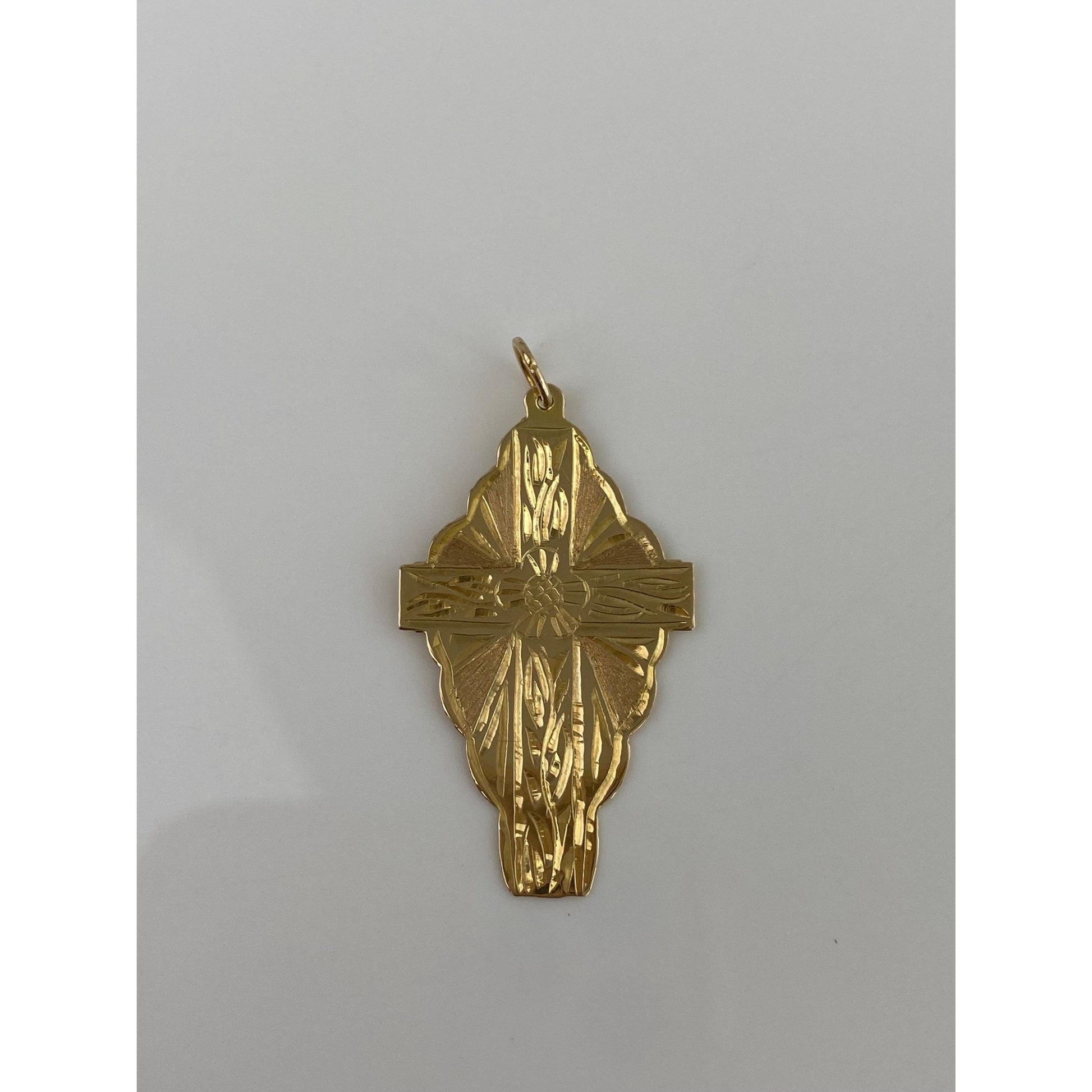 Vintage Solid 14k Yellow Gold Engraved Floral Cross Charm