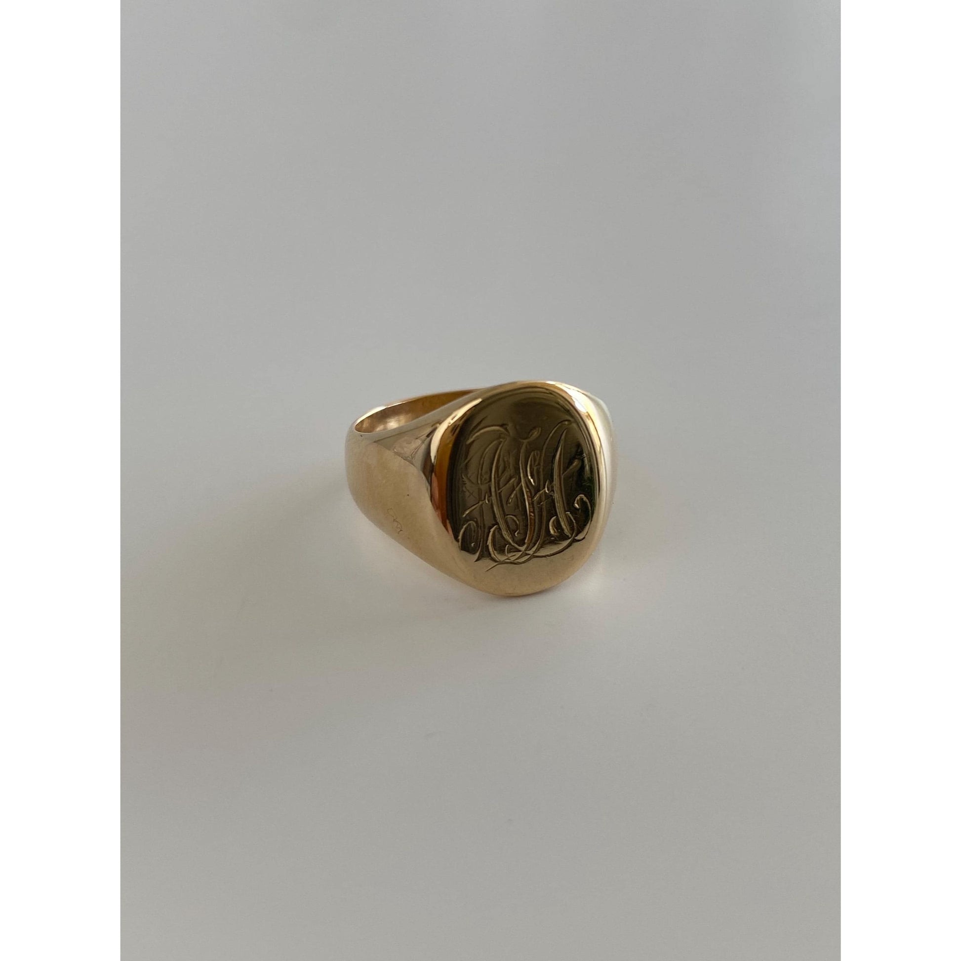 Vintage Solid 14k Yellow Gold Engraved Signet Ring - Size 6