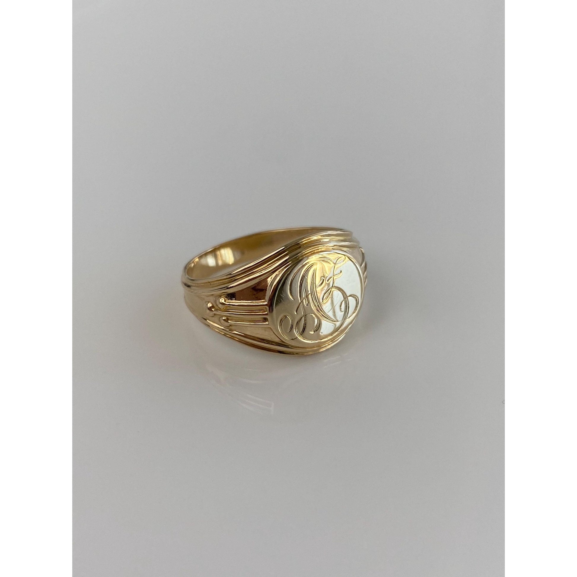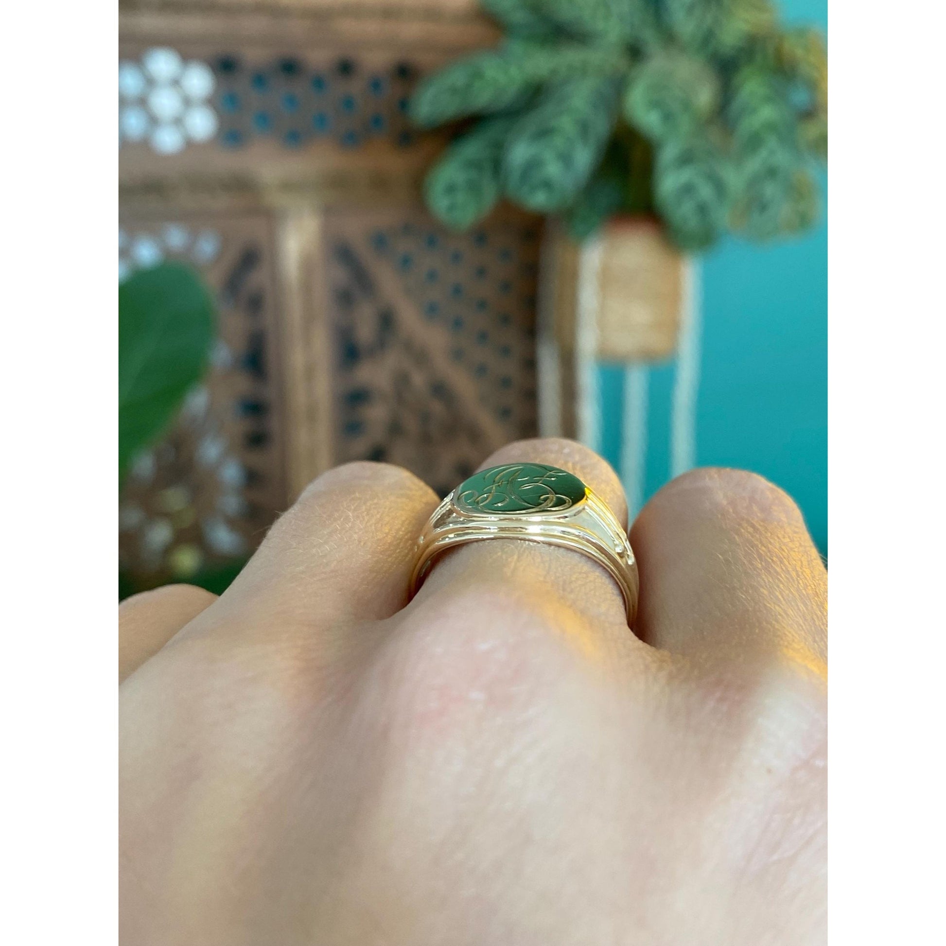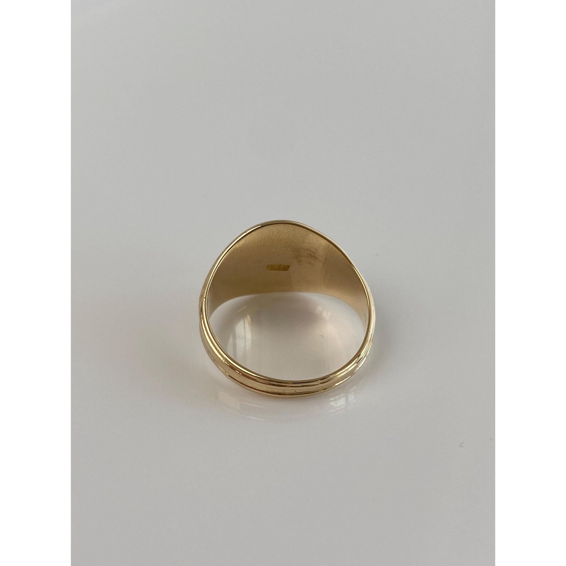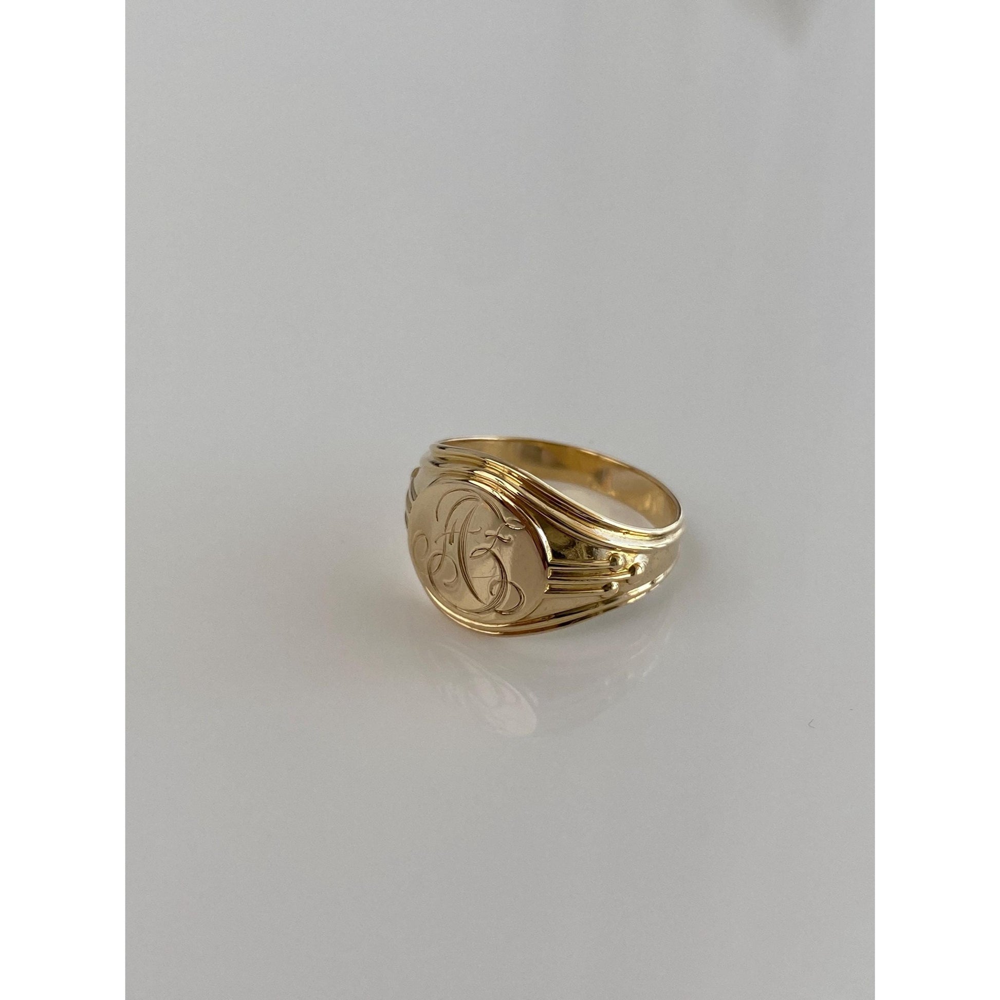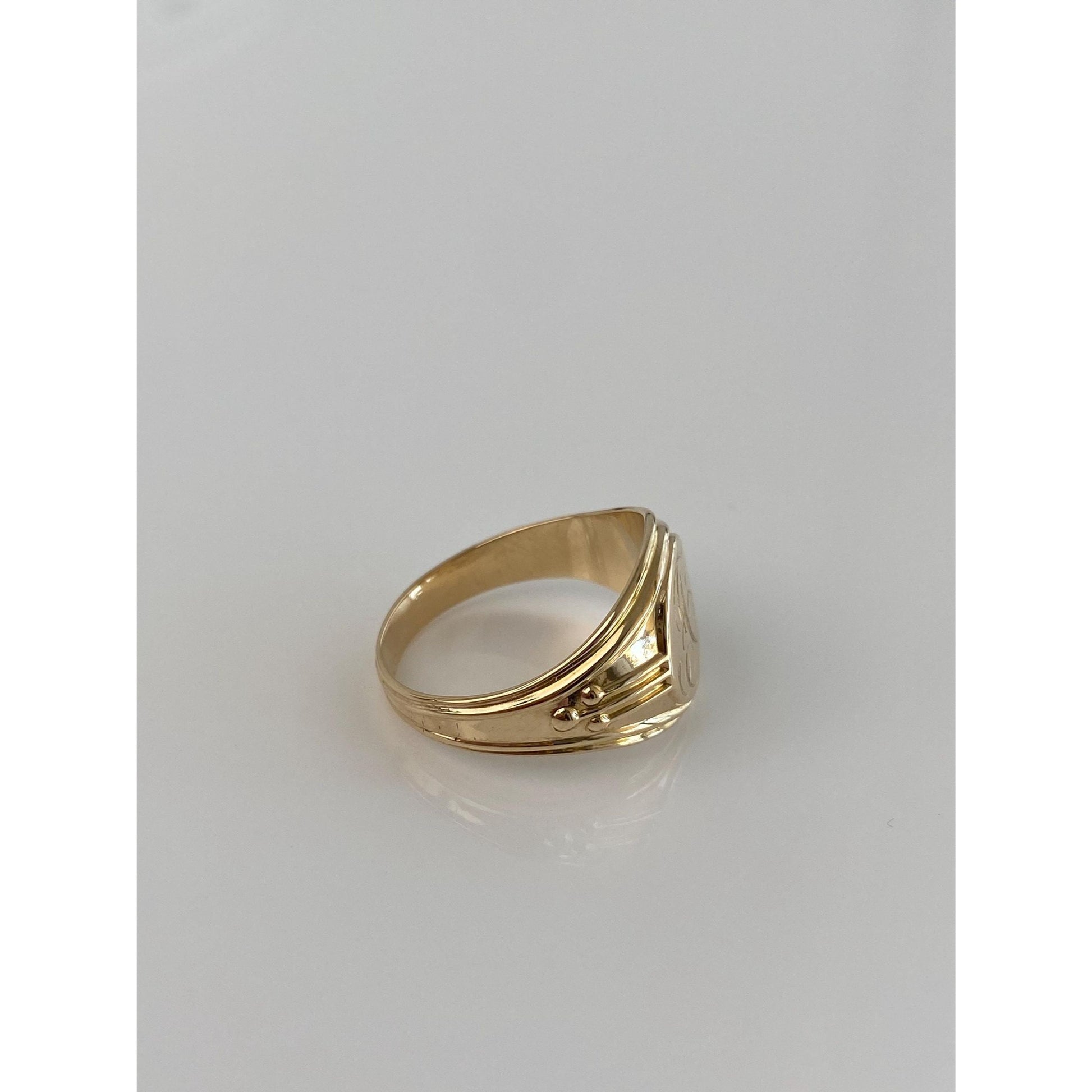 Vintage Solid 14k Yellow Gold Engraved Signet Ring - Size 7.75