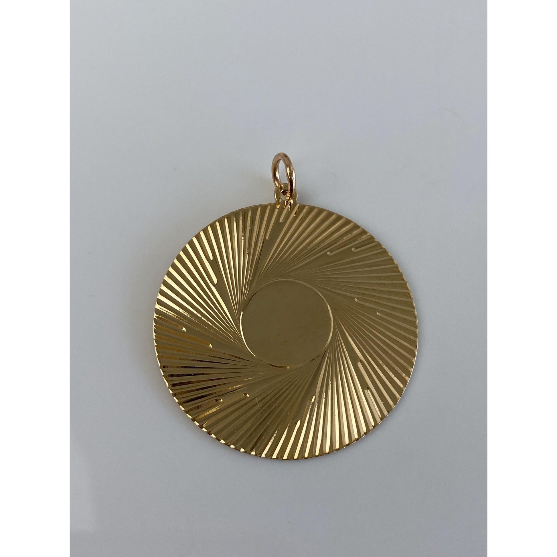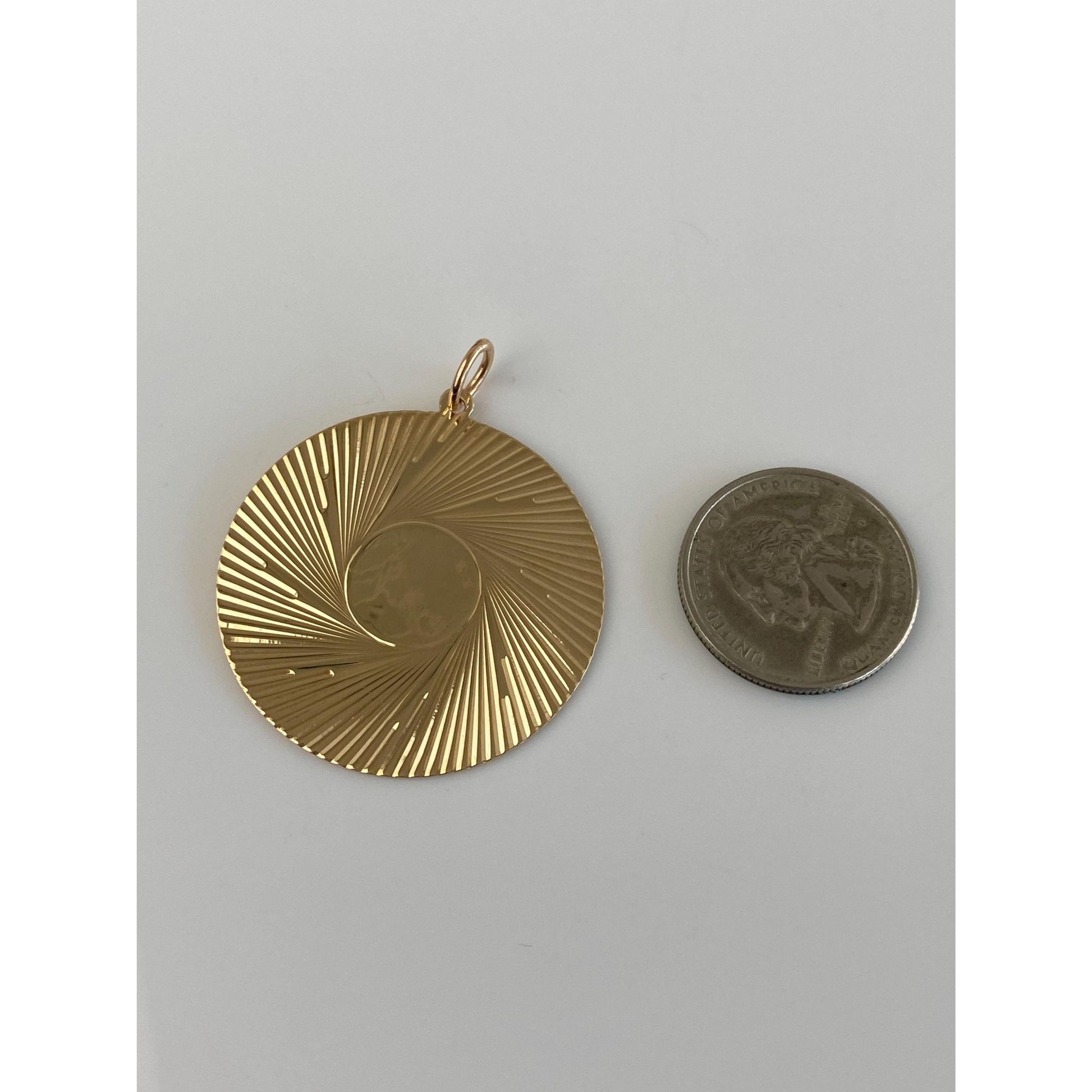 Vintage Solid 14k Yellow Gold Extra Large Engine Turned Charm