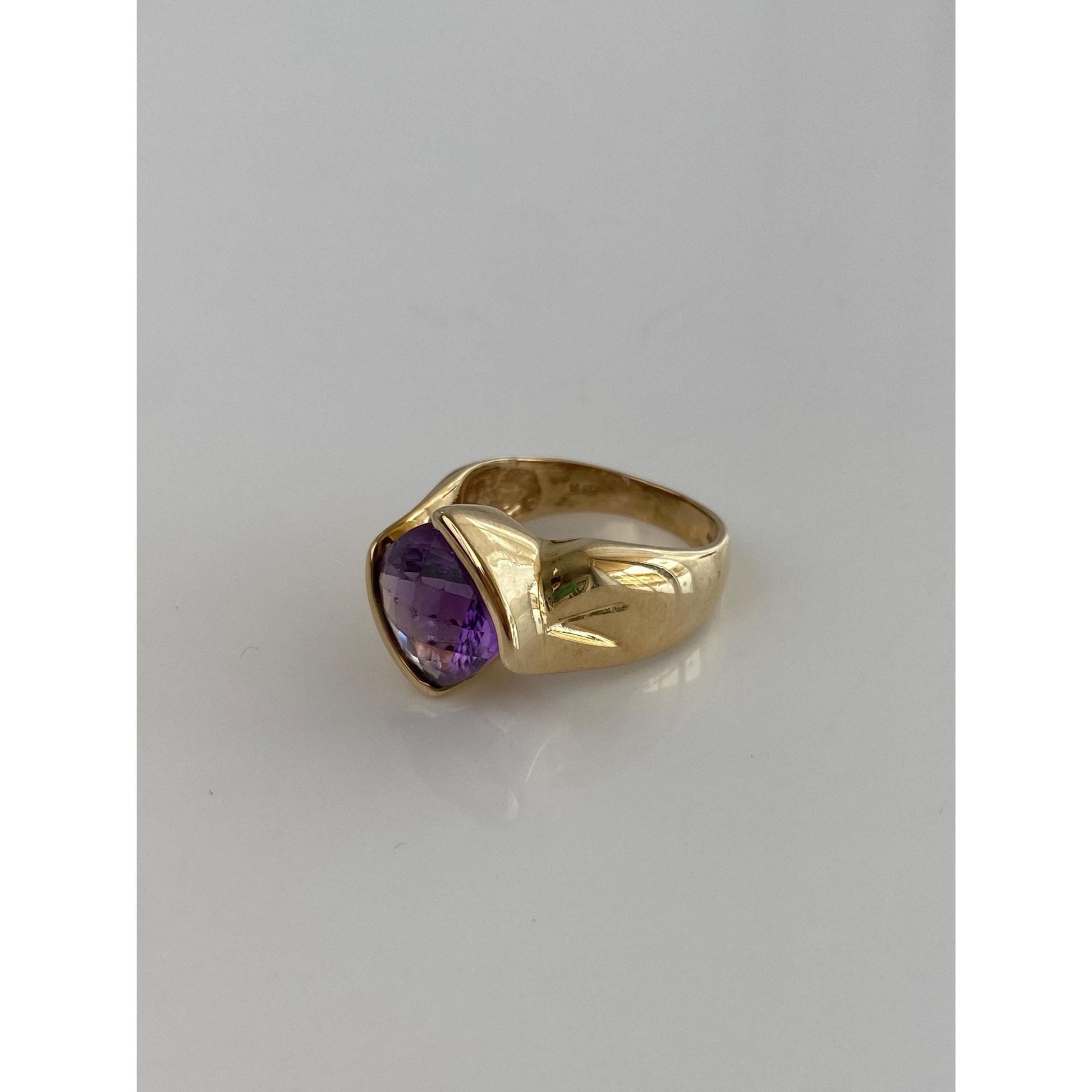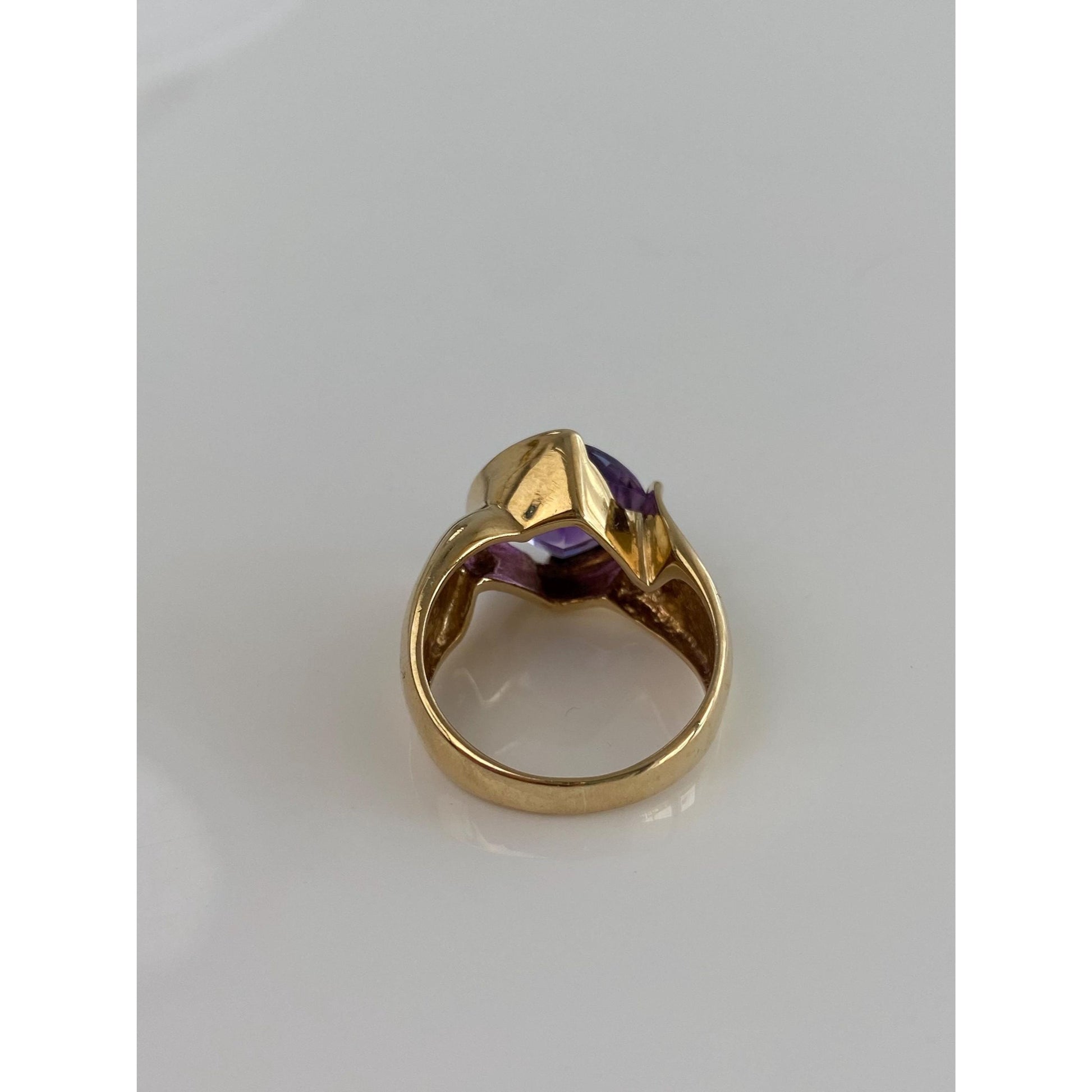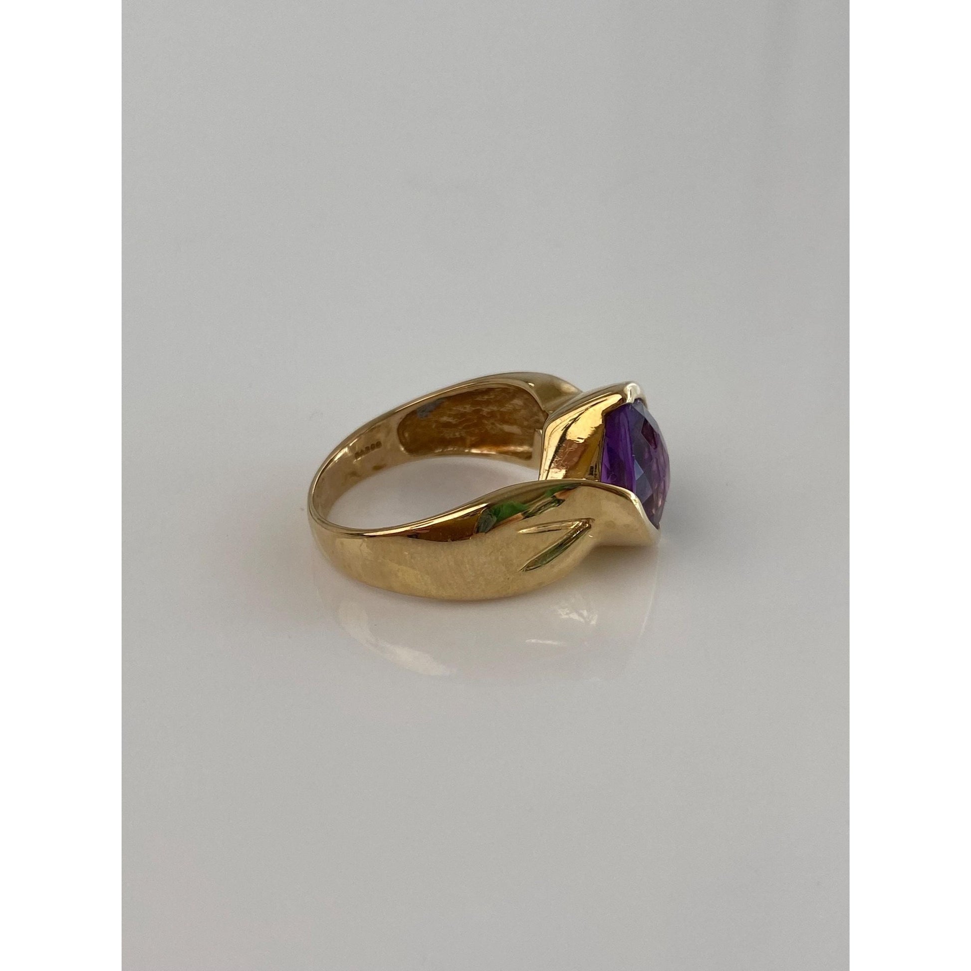 Vintage Solid 14k Yellow Gold Fancy Cut Amethyst Ring - Size 7